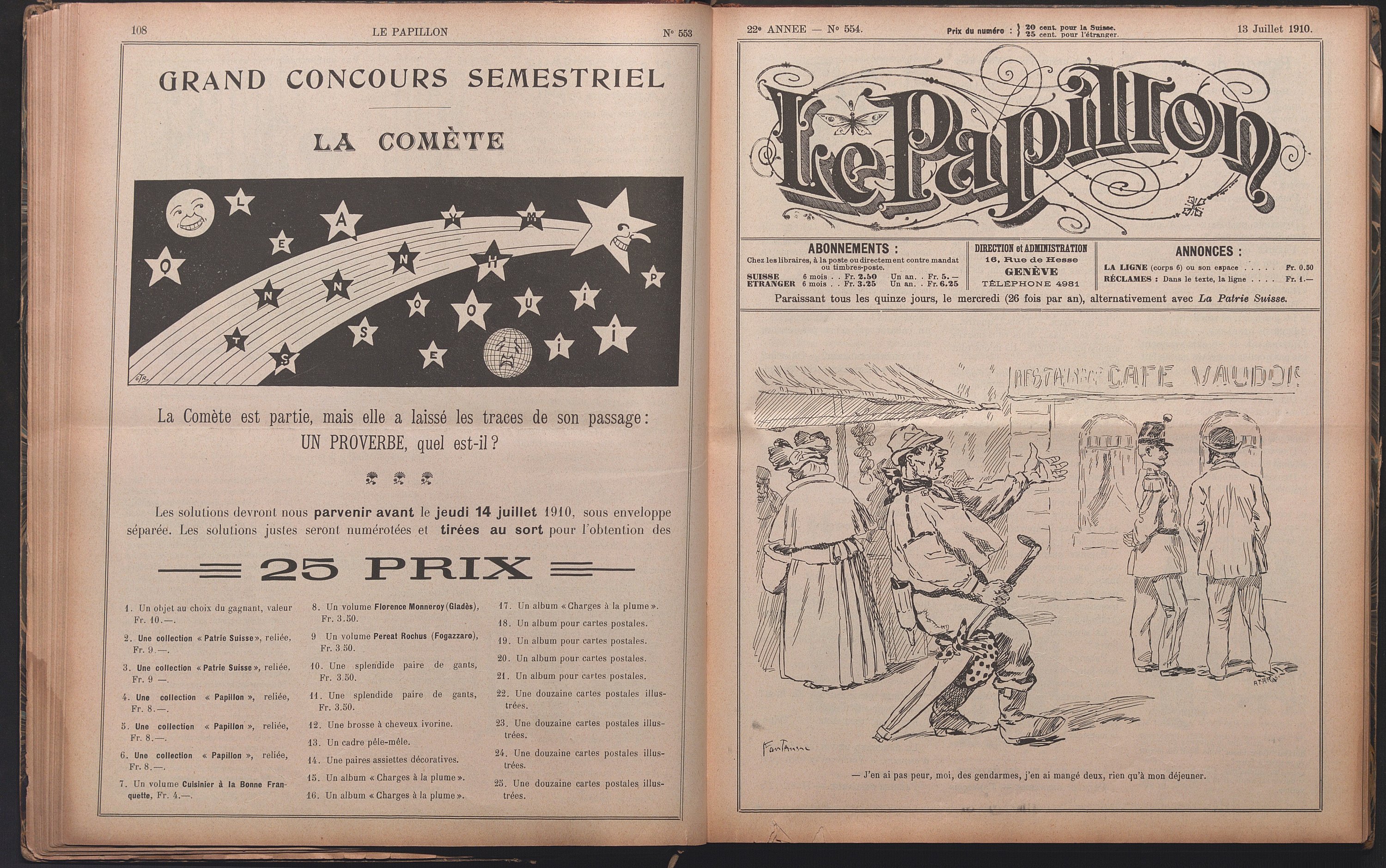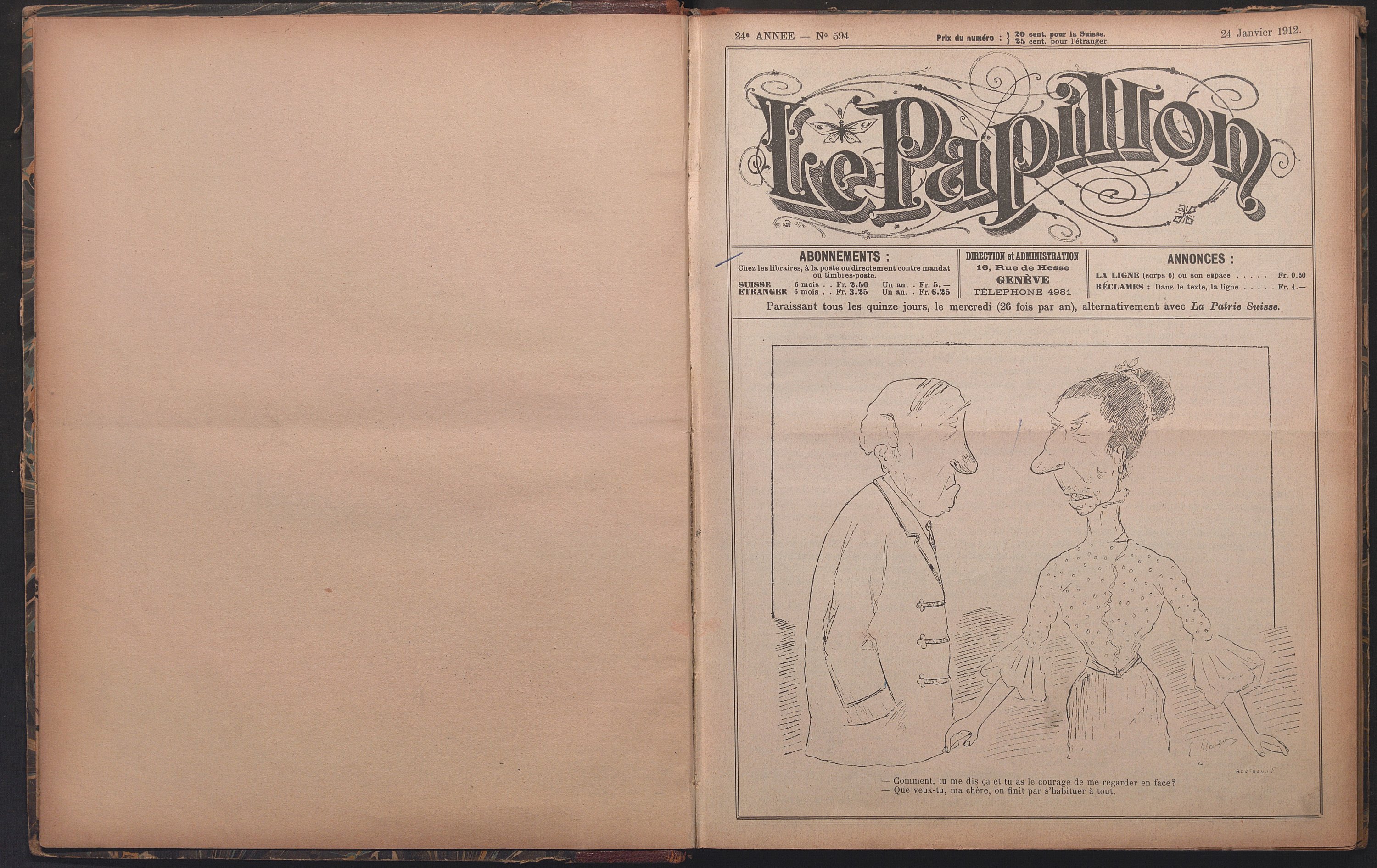 LE PAPILLON, JOURNAL BIMENSUEL HUMORISTIQUE, EDITE EN FRANCAIS A GENEVE (SUISSE), 1906-1913