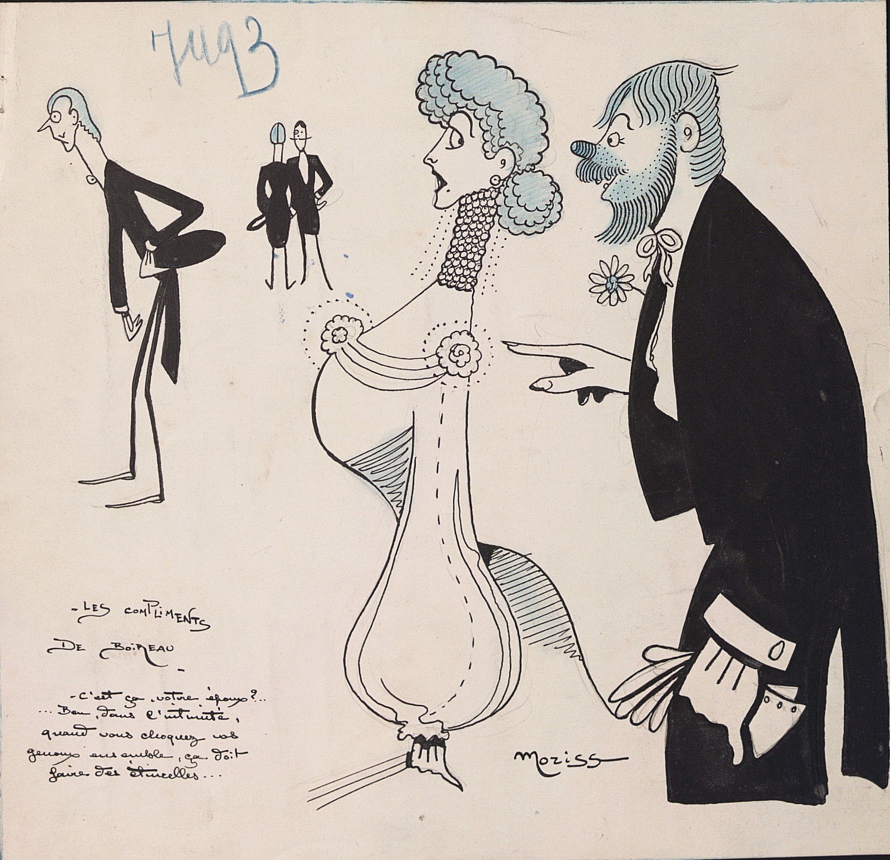 Les compliments de Boireau « C’est ça votre époux ?... Ben dans l’intimité quand vous choquez vos genoux ensemble, ça doit faire des étincelles », 24,5 x 25,5 cm ;