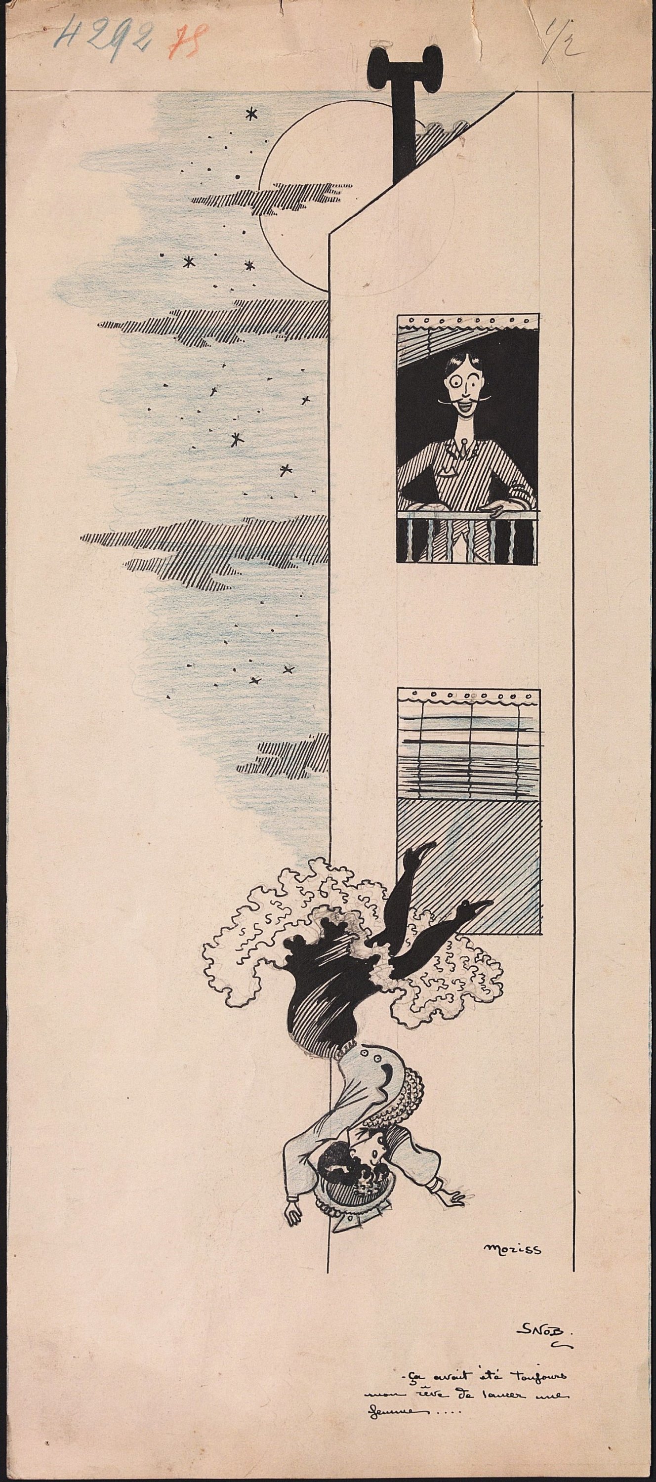 Sans titre « Toens ! Gaston qui passe Avoue que tu fus sa maîtresse - Oh !... jamais en titre - Sa sous-maîtresse alors ! », 30 x 39,5 cm.