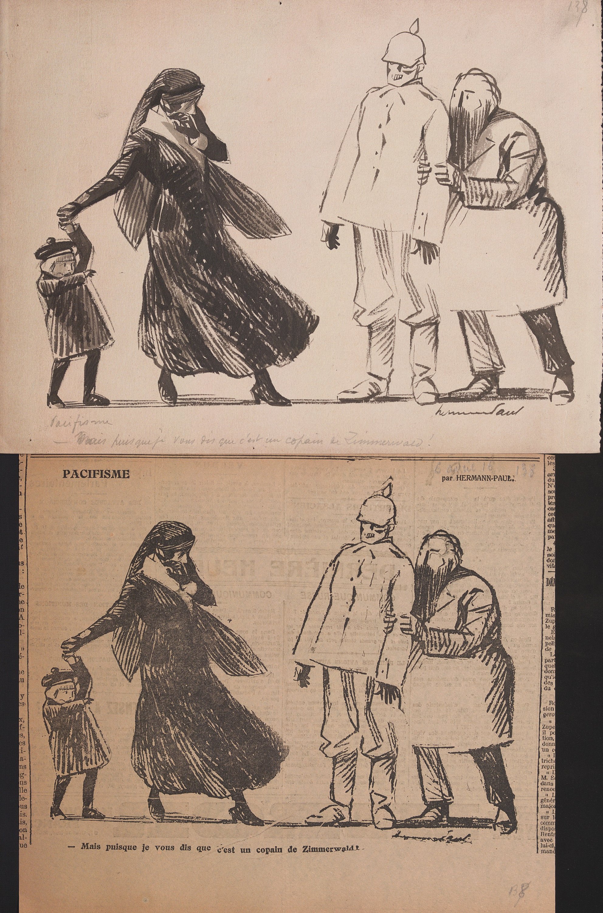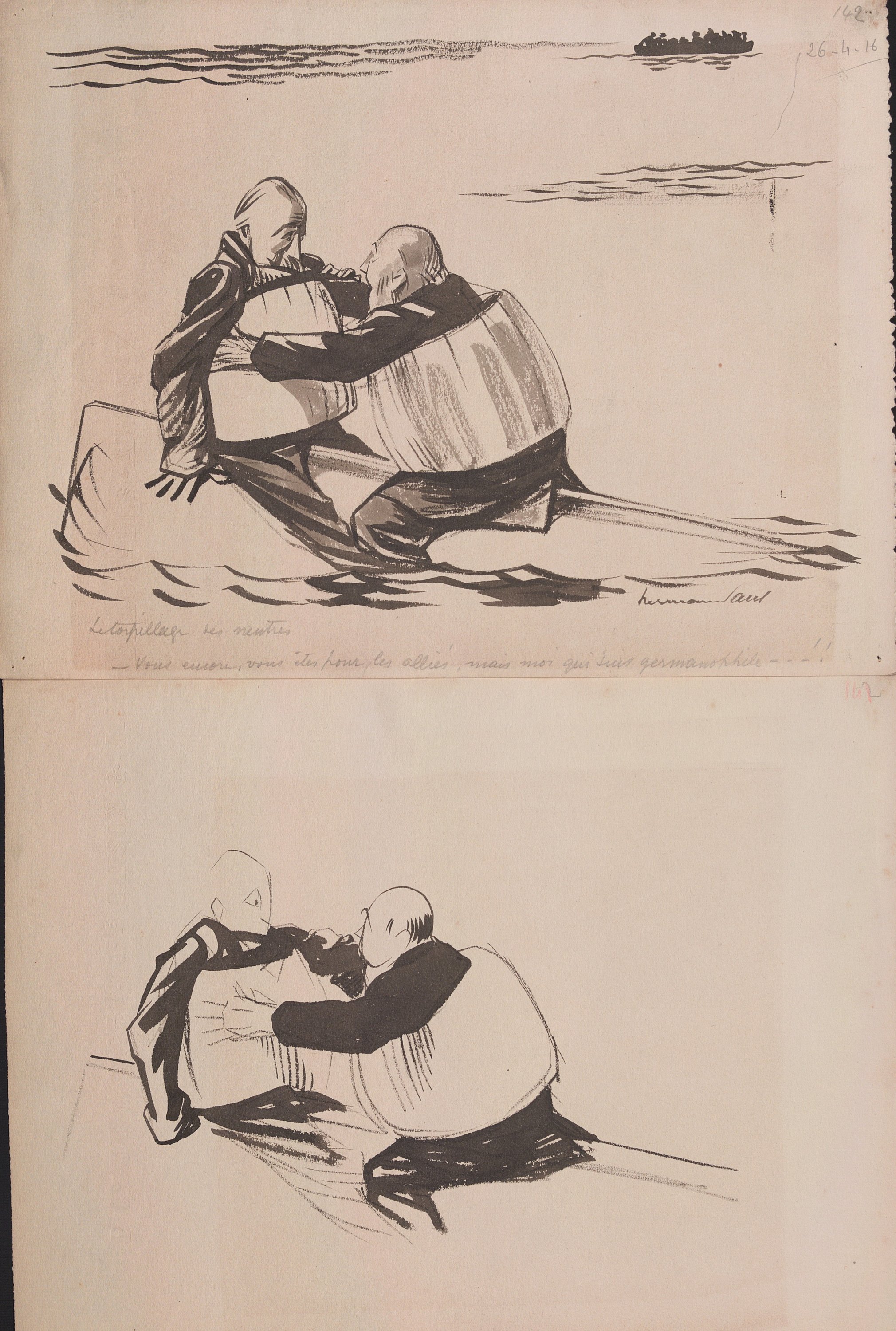 Avril 1916 : « La guerre sous-marine » 2 pl. (2 avril 1916) ; « Pacifisme » 3 pl. (6 avr.) ; « Et la lutte de classes » 2 pl. (10 avr.) ; « Devant Verdun » 3 pl. (13 avr.) ; « Le torpillage des neutres » 2 pl. (26 avr.) ; En Amérique 3 pl. (27 avr.) ; « A Dublin » 2 pl. (30 avr.).