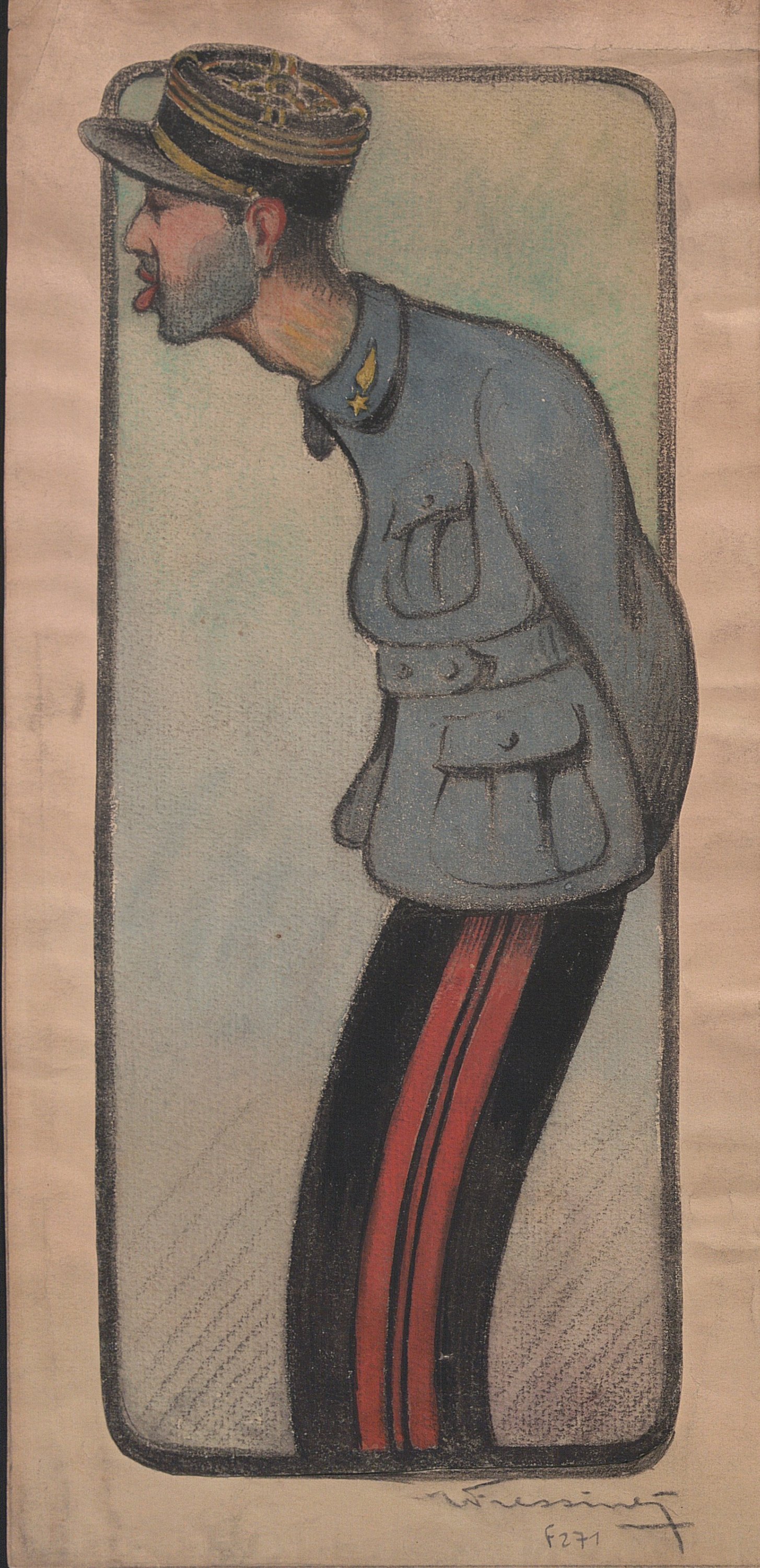 Jean Fressinet (1889-1972), fusain et aquarelle, signé, 29 x 14 cm ;