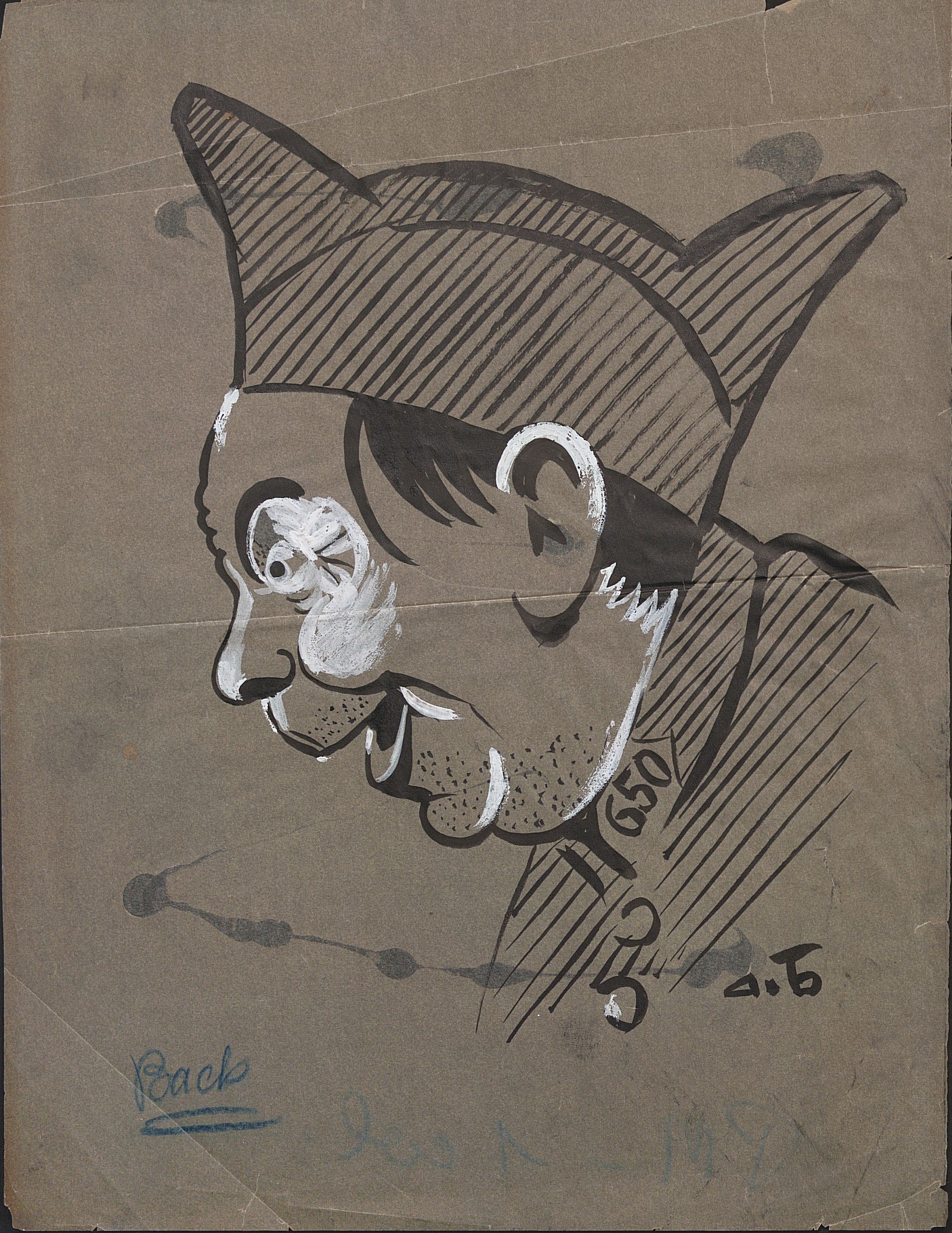 Réunion d’env. 50 dessins de presse originaux et caricatures, sur papier, formats divers, en vue de publication dans Paris-Midi, Paris-Soir, Le Petit Méridional, L’Oeuvre, Le Figaro, etc, dont :