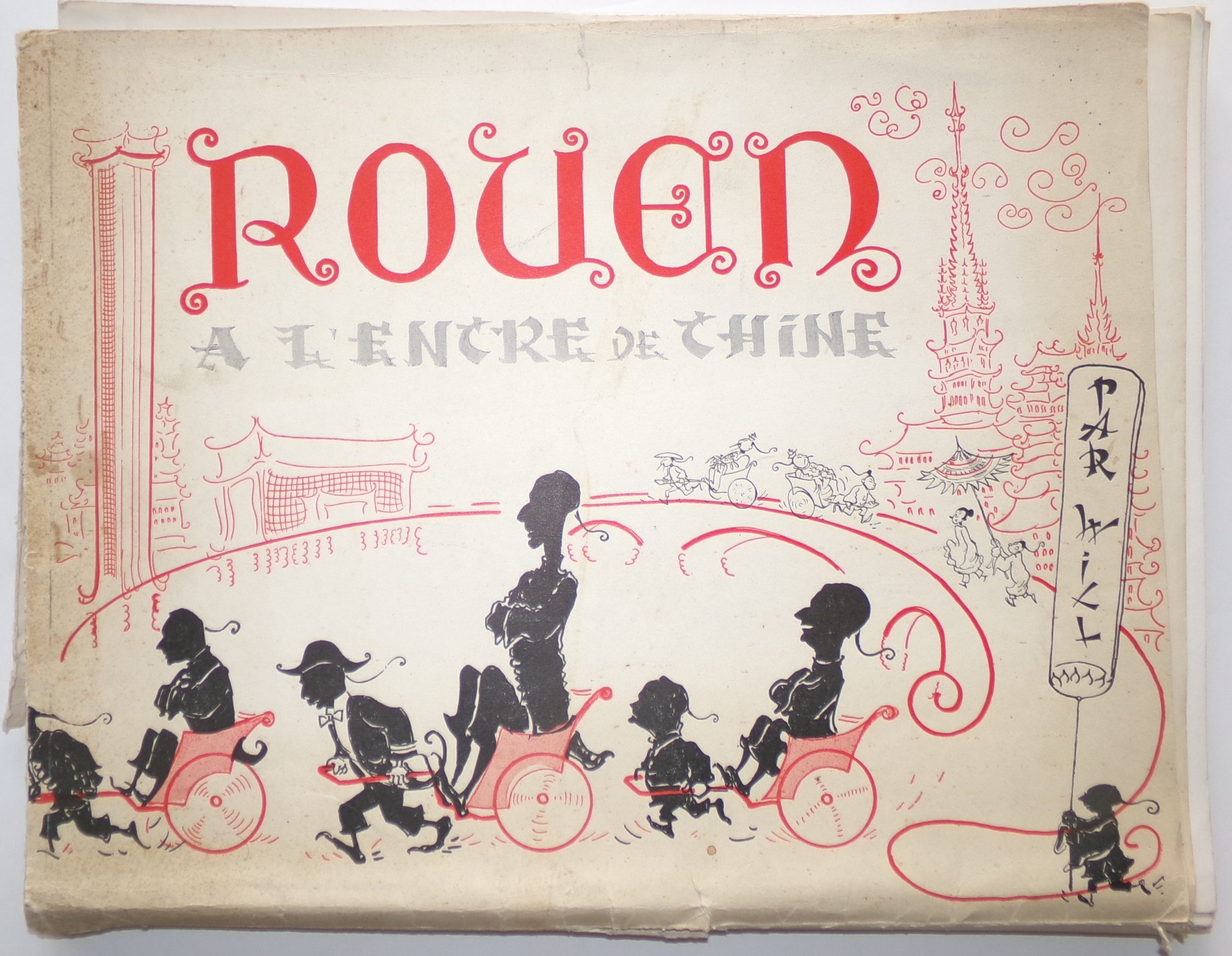 Will, Rouen à l’encre de Chine. Rouen, Liberté Dimanche, 1966. Album à l'italienne en feuilles, portefeuille à rabat en papier fort (en l’état) Portraits à charge de personnalités rouennaises sur papier orange avec encadrement blanc.