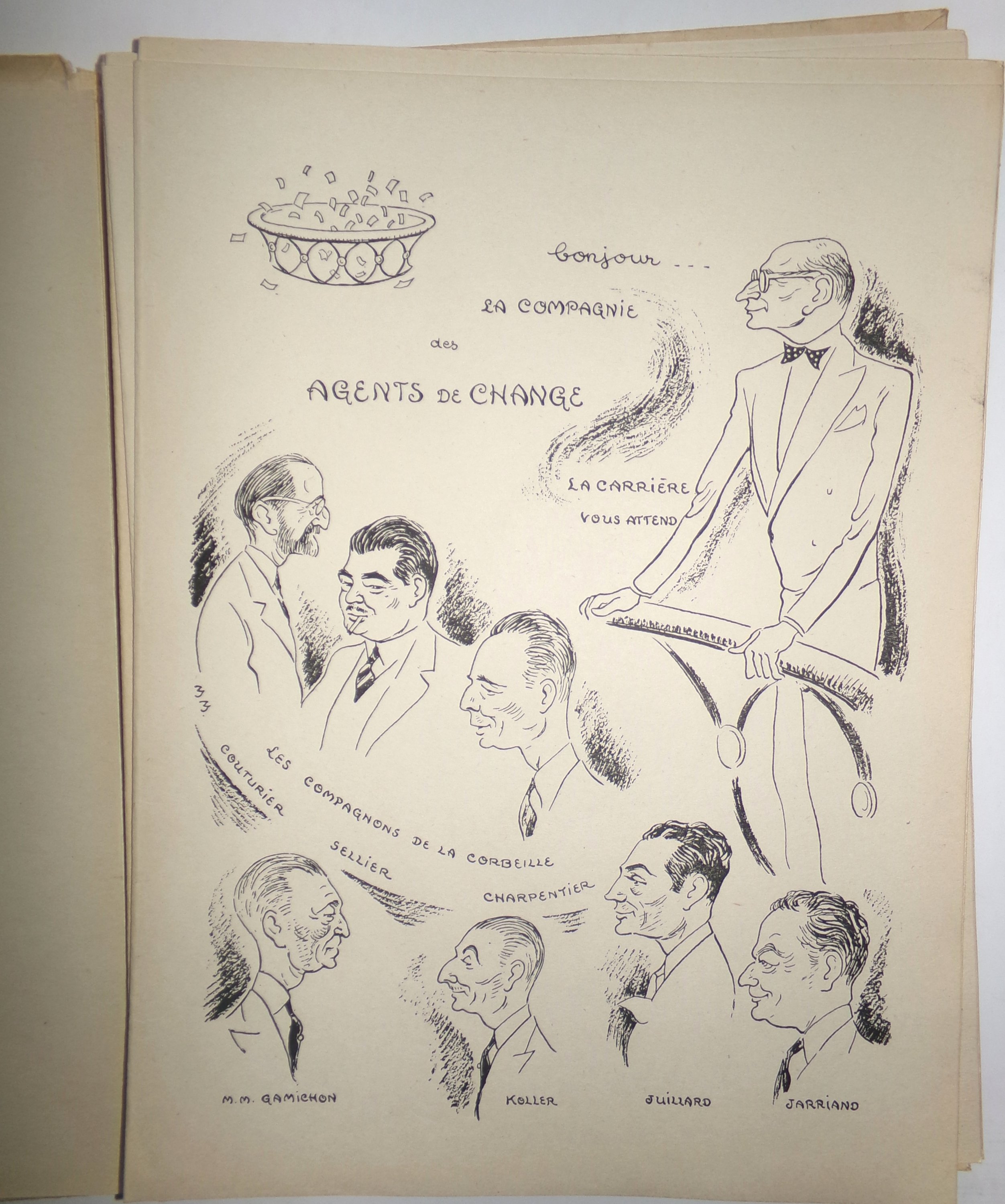 Société générale - Banque de l’Union Parisienne, page de titre et 15 planches in-fol. de caricatures du personnel et clients de la banque durant l’entre-deux-guerres ;
