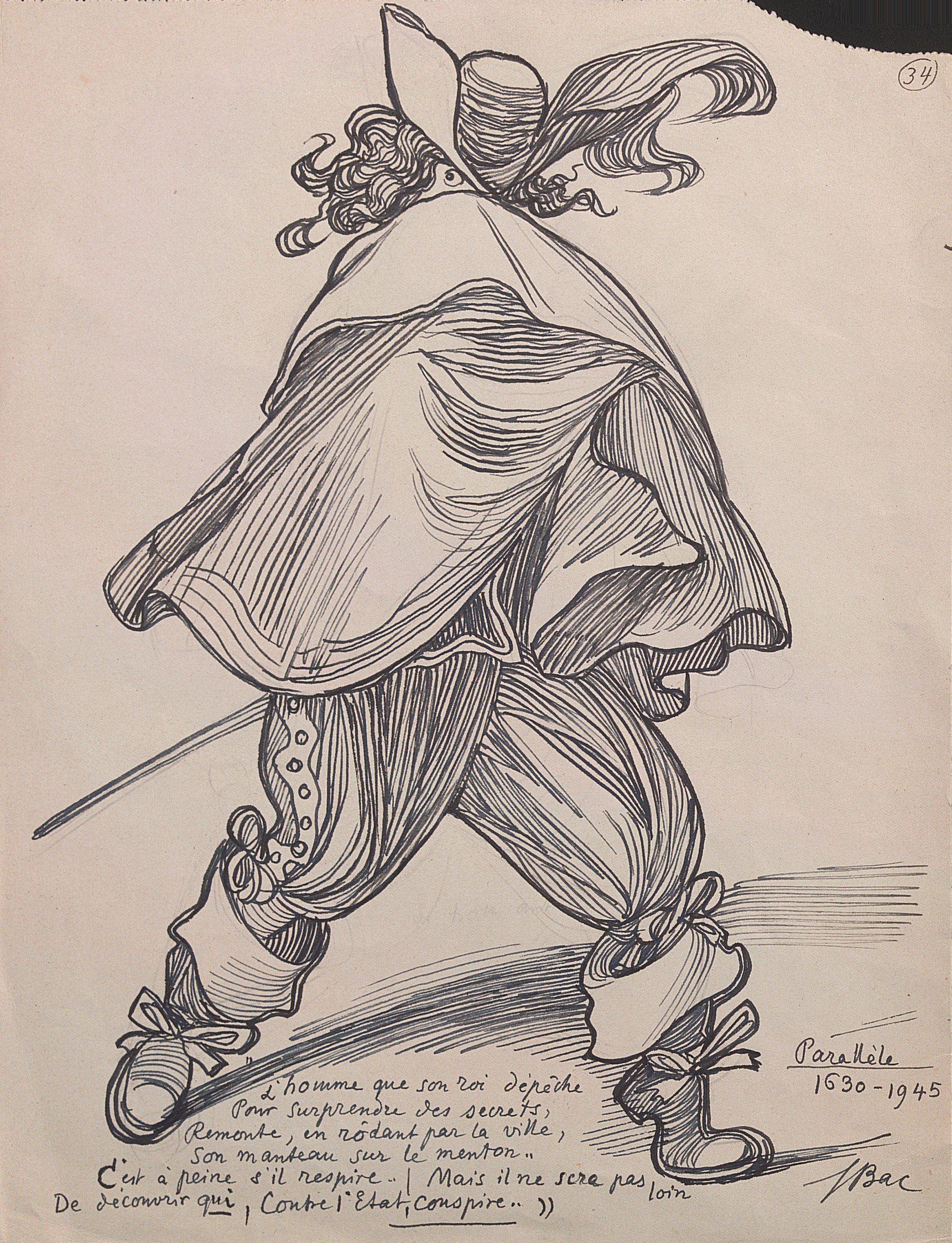 Parallèle 1630-1945, encre, sur papier, signé en bas à droite, légendé, 31 x 24 cm ;