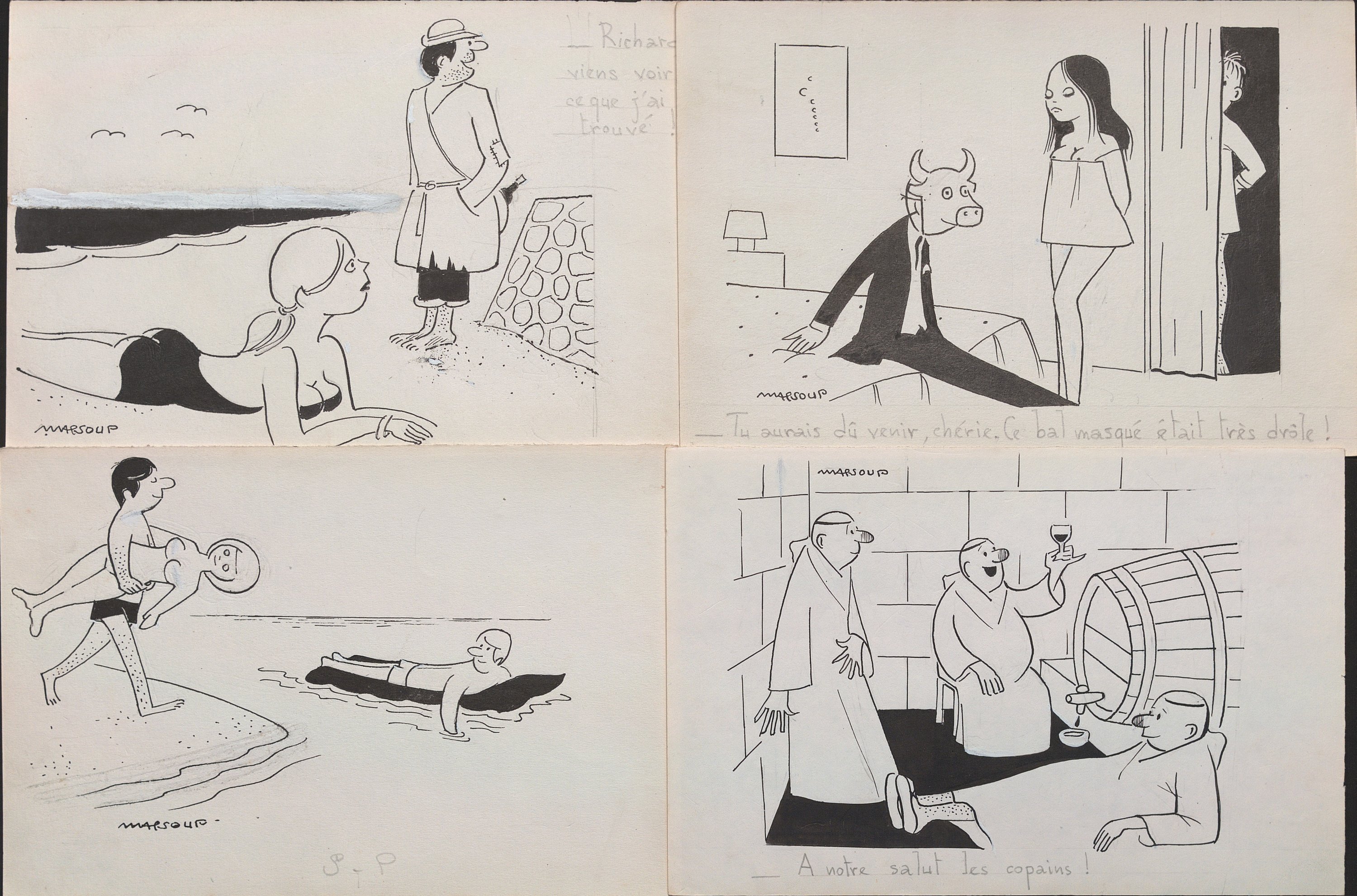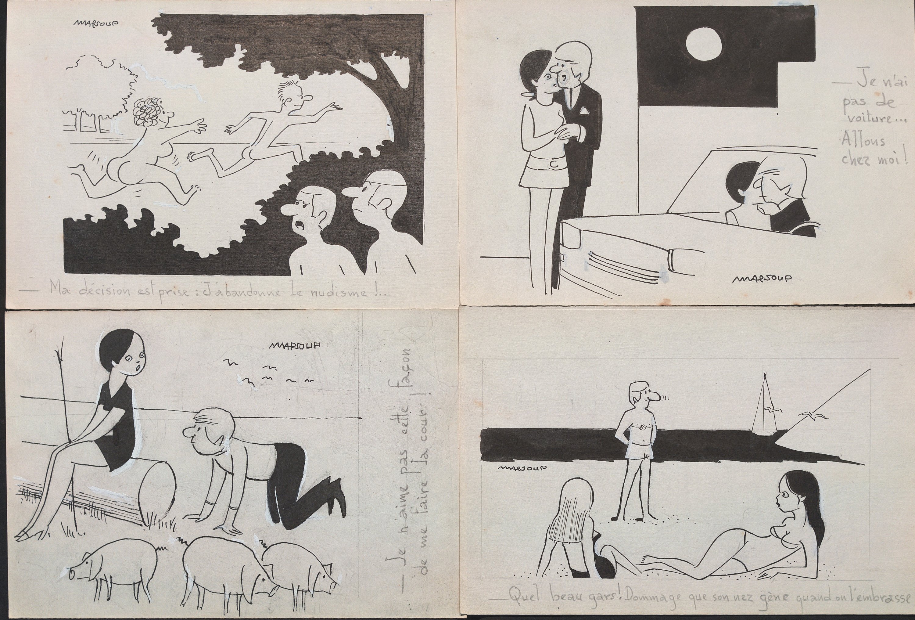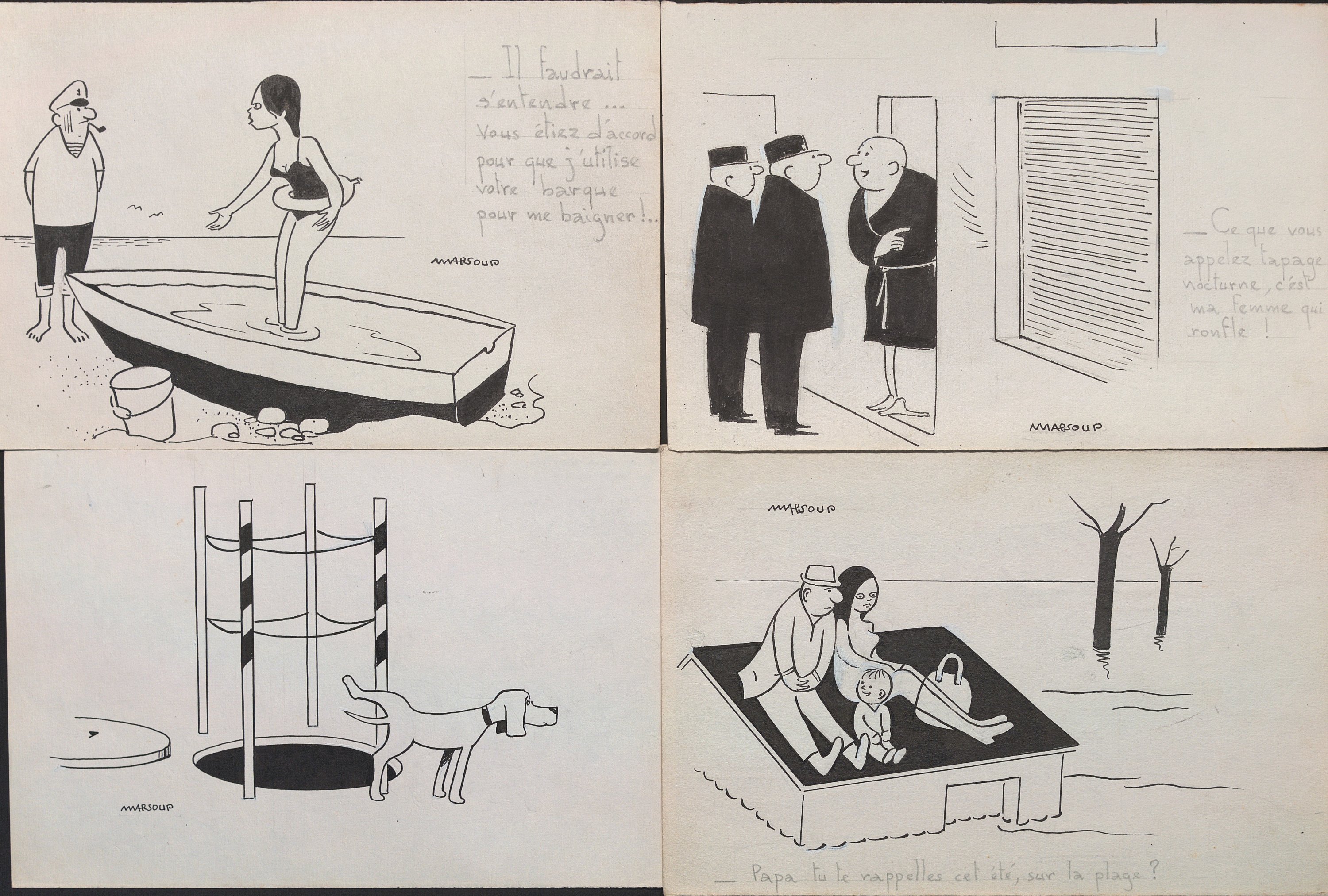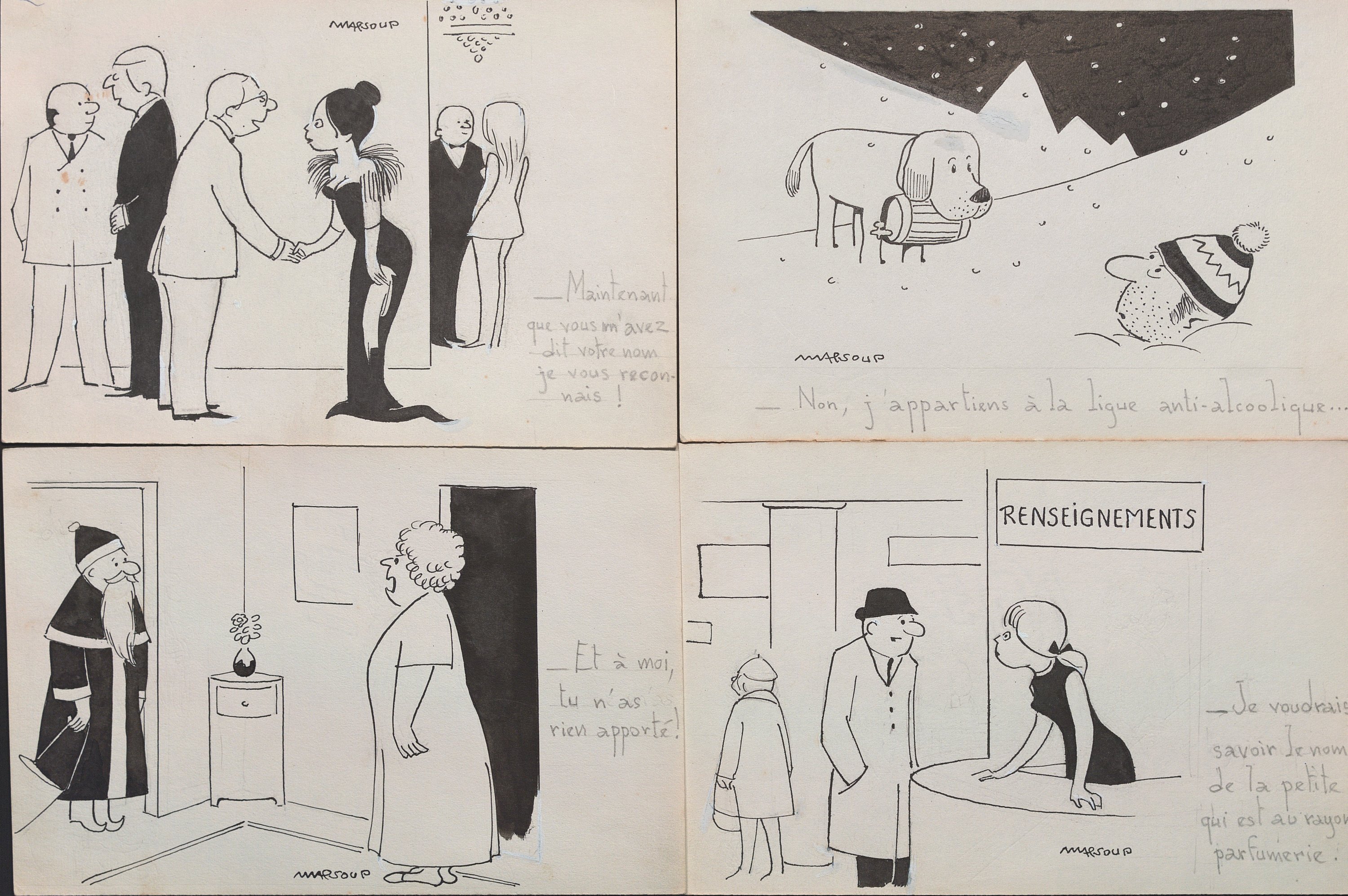 Signés, légendés au crayon bois et portant le tampon « M. Jean-Claude Marcireau dit Marsoup, dessinateur »