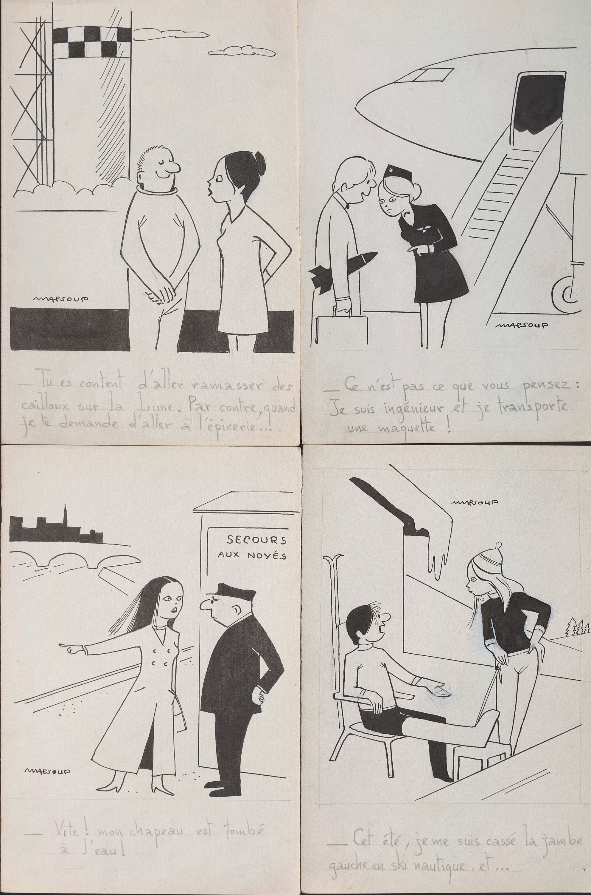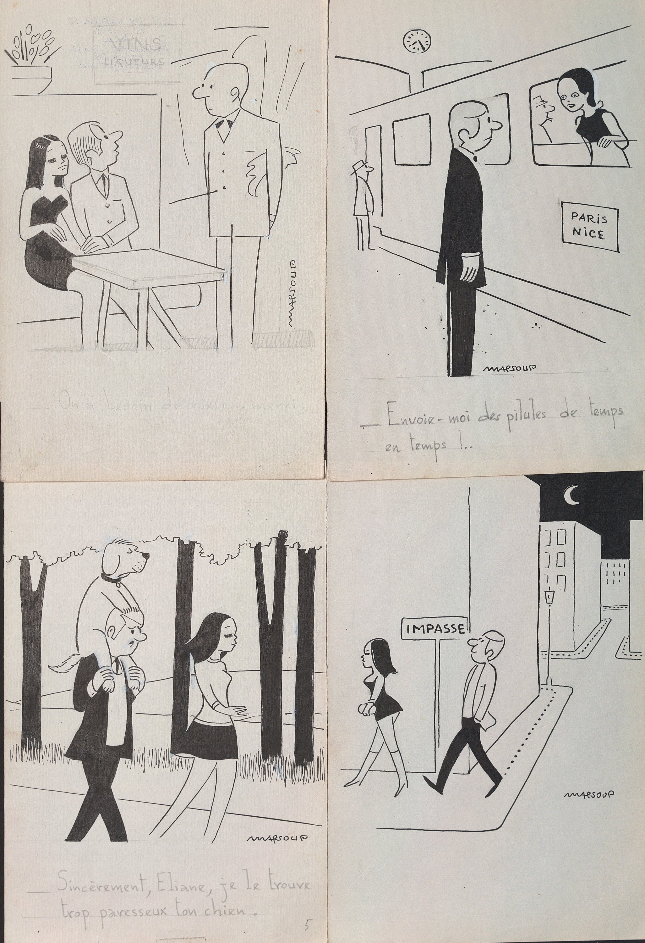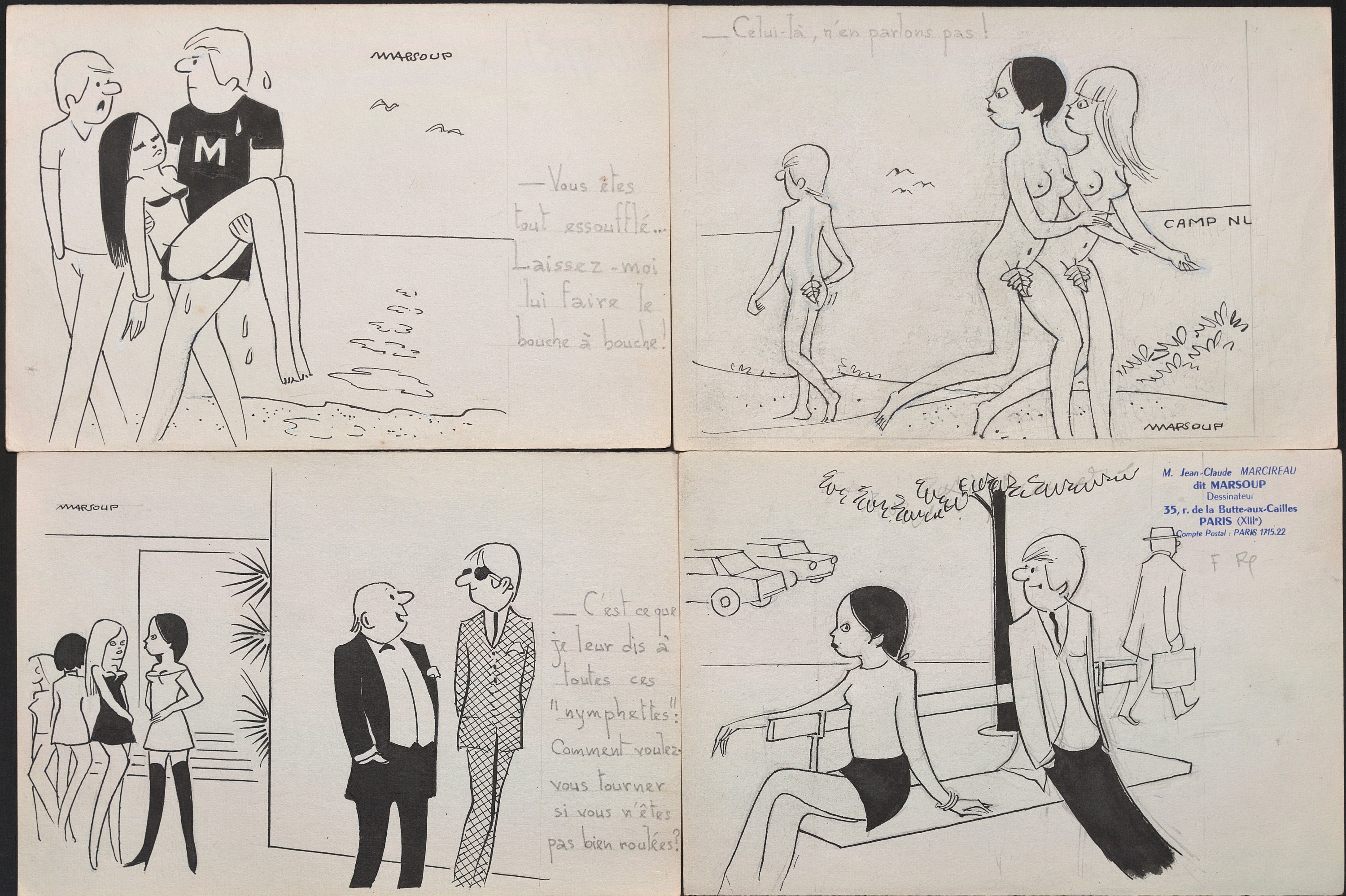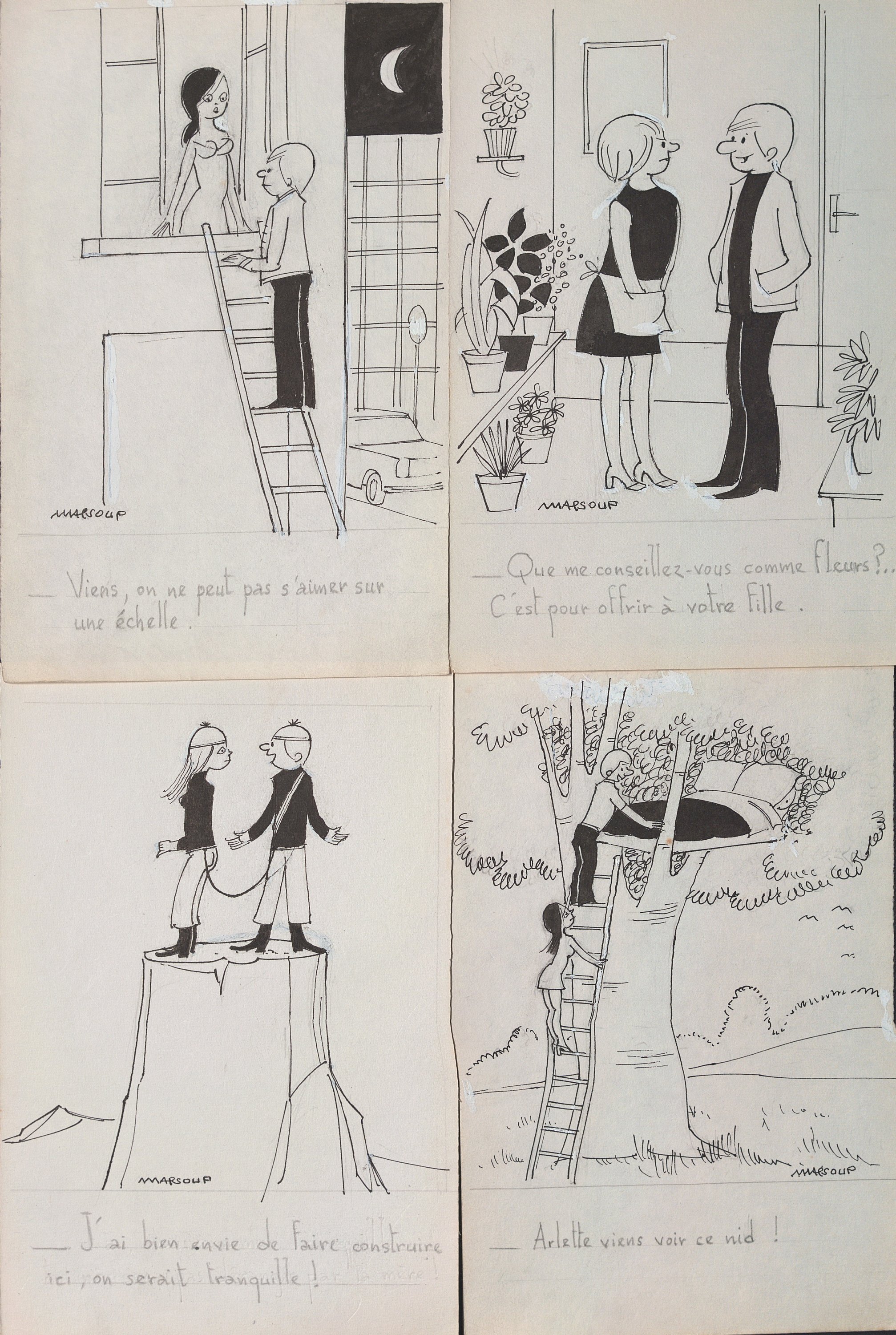 Signés, légendés au crayon bois et portant le tampon « M. Jean-Claude Marcireau dit Marsoup, dessinateur »