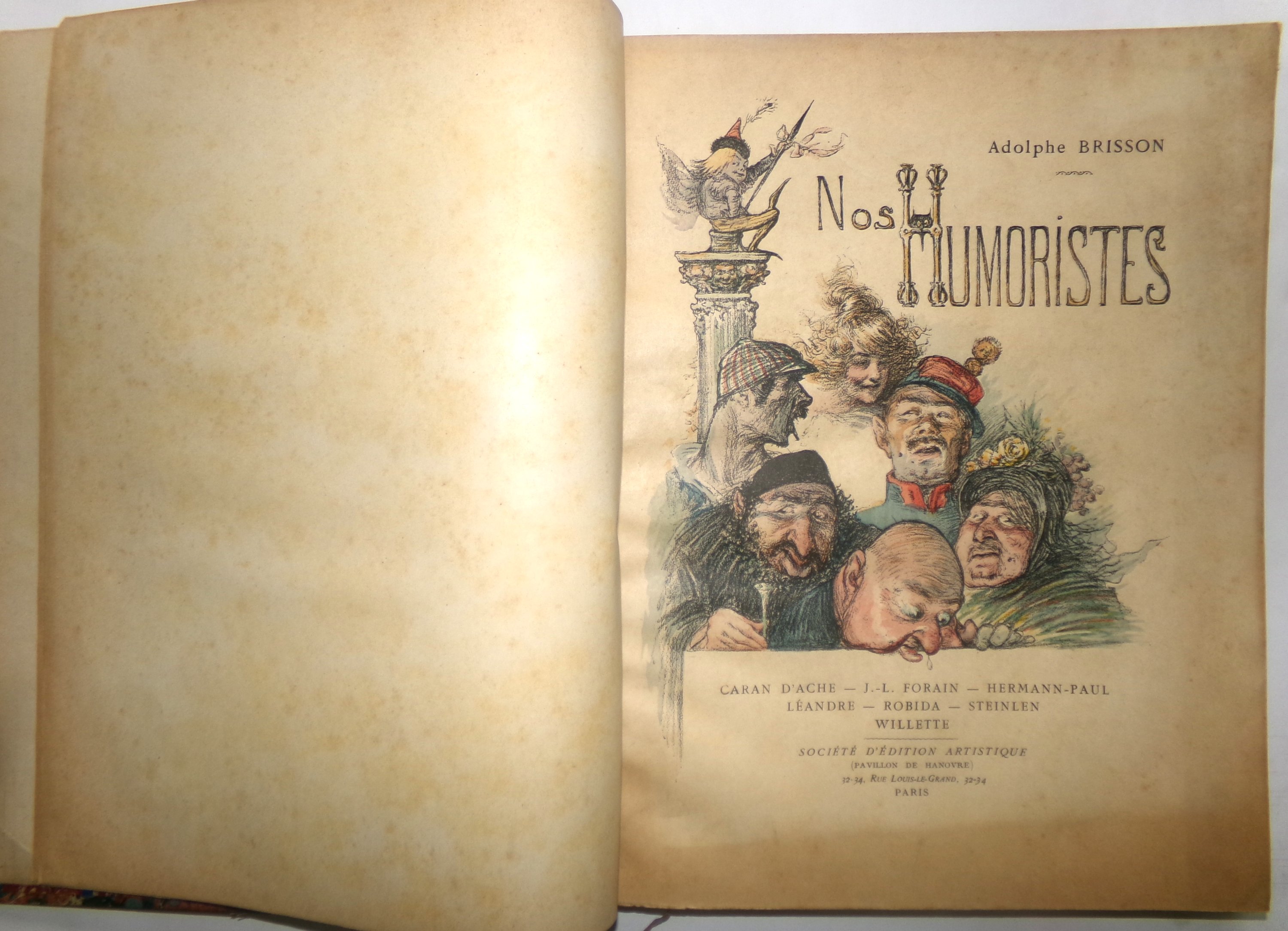 Adolphe Brisson, ?Nos Humoristes - Caran d'Ache, Jean-Louis Forain, Hermann-Paul, Léandre, Robida, Steinlen, Willette. ?Paris, Société d’Edition Artistique, 1900. In-4 rel. ½ basane rouge, 158 pp. Avec couv. ill. conservée ;