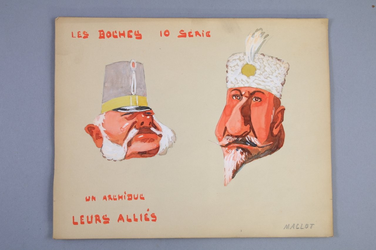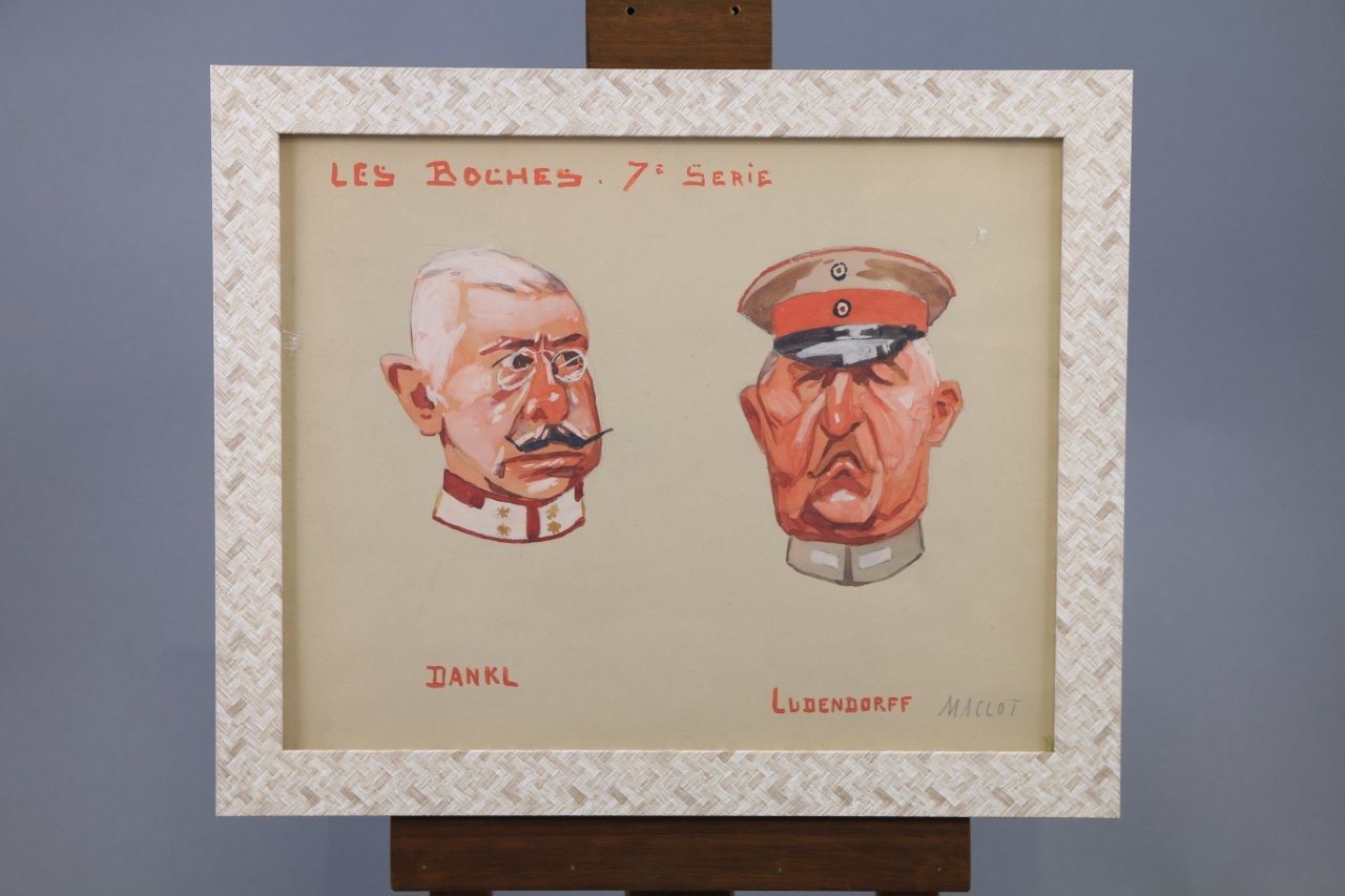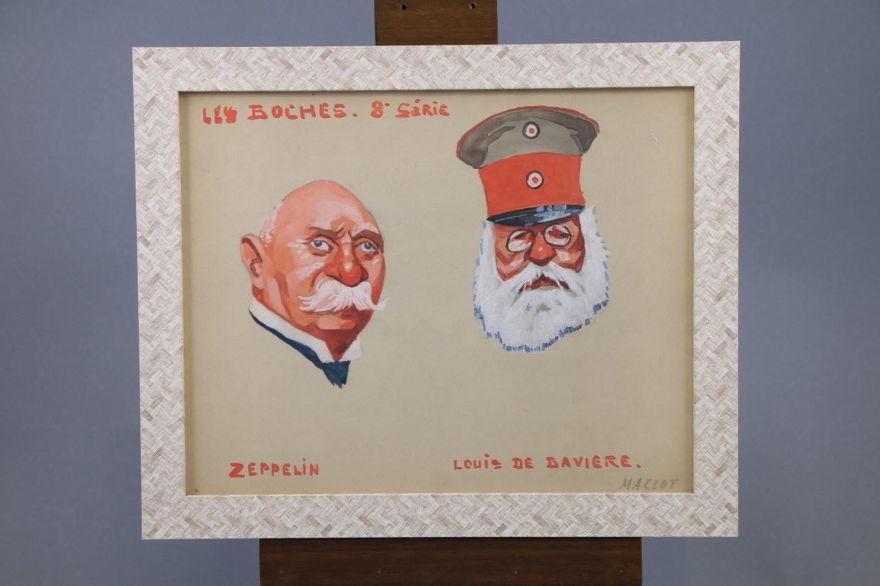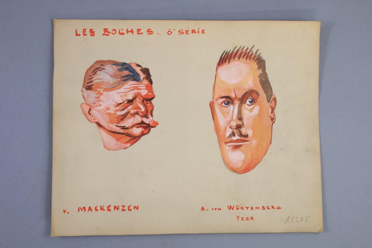 14 portraits aquarellés et gouachés sur papier, légendés dont Hindenburg, Louis de Bavière, Zeppelin, Ludendorf, etc.