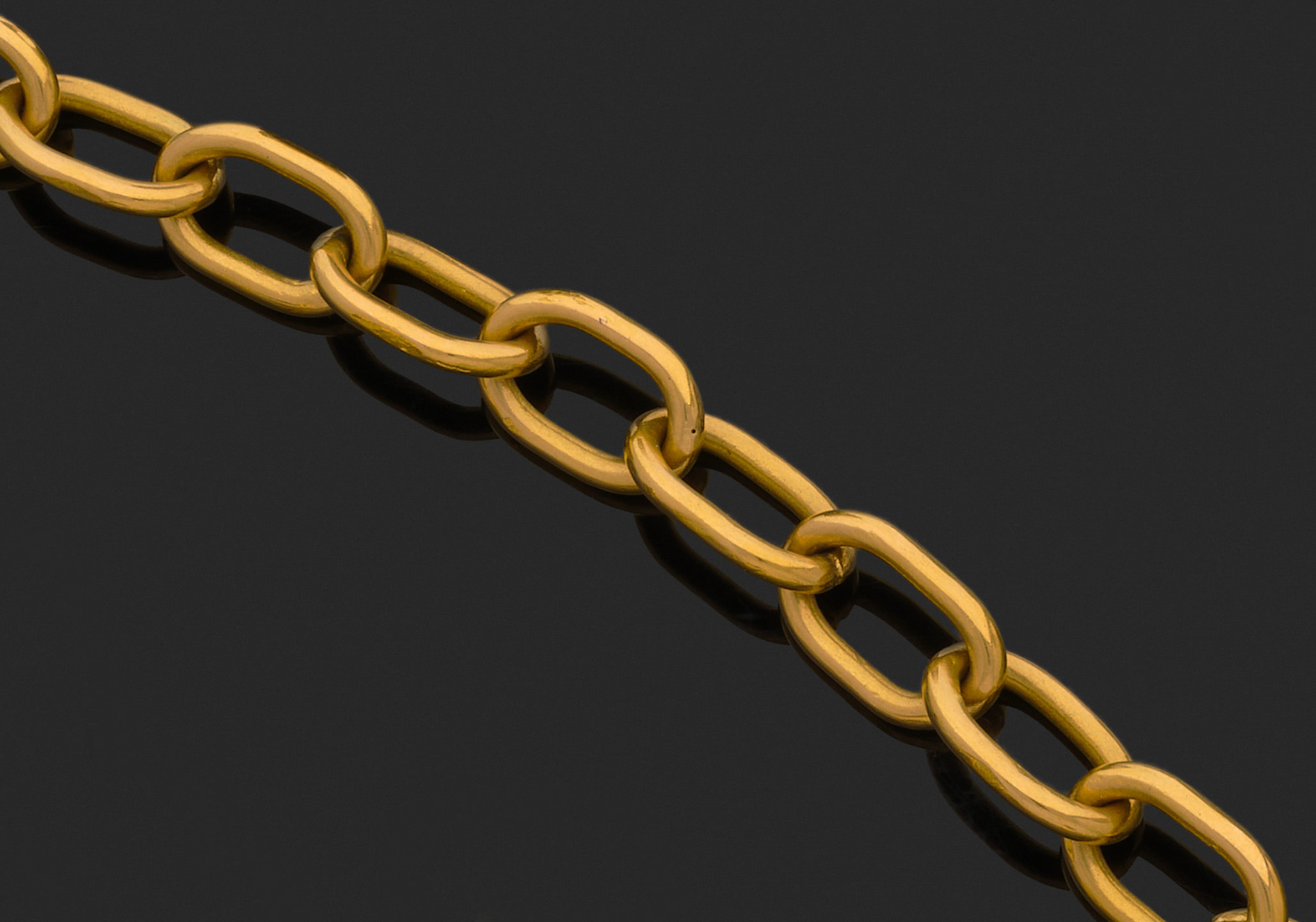 Or jaune 750 millièmes, les maillons chaîne de forme ovale ajourés.