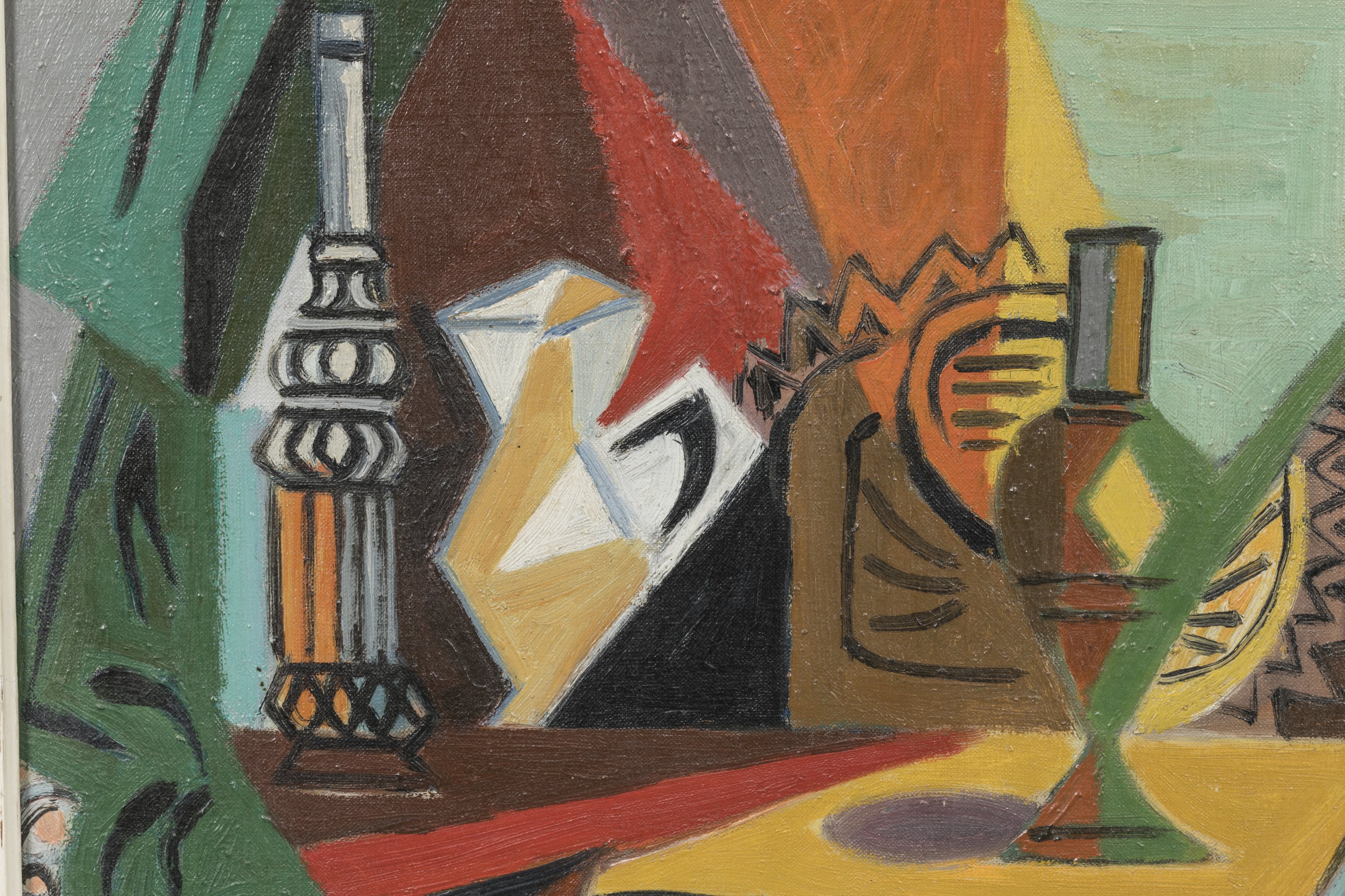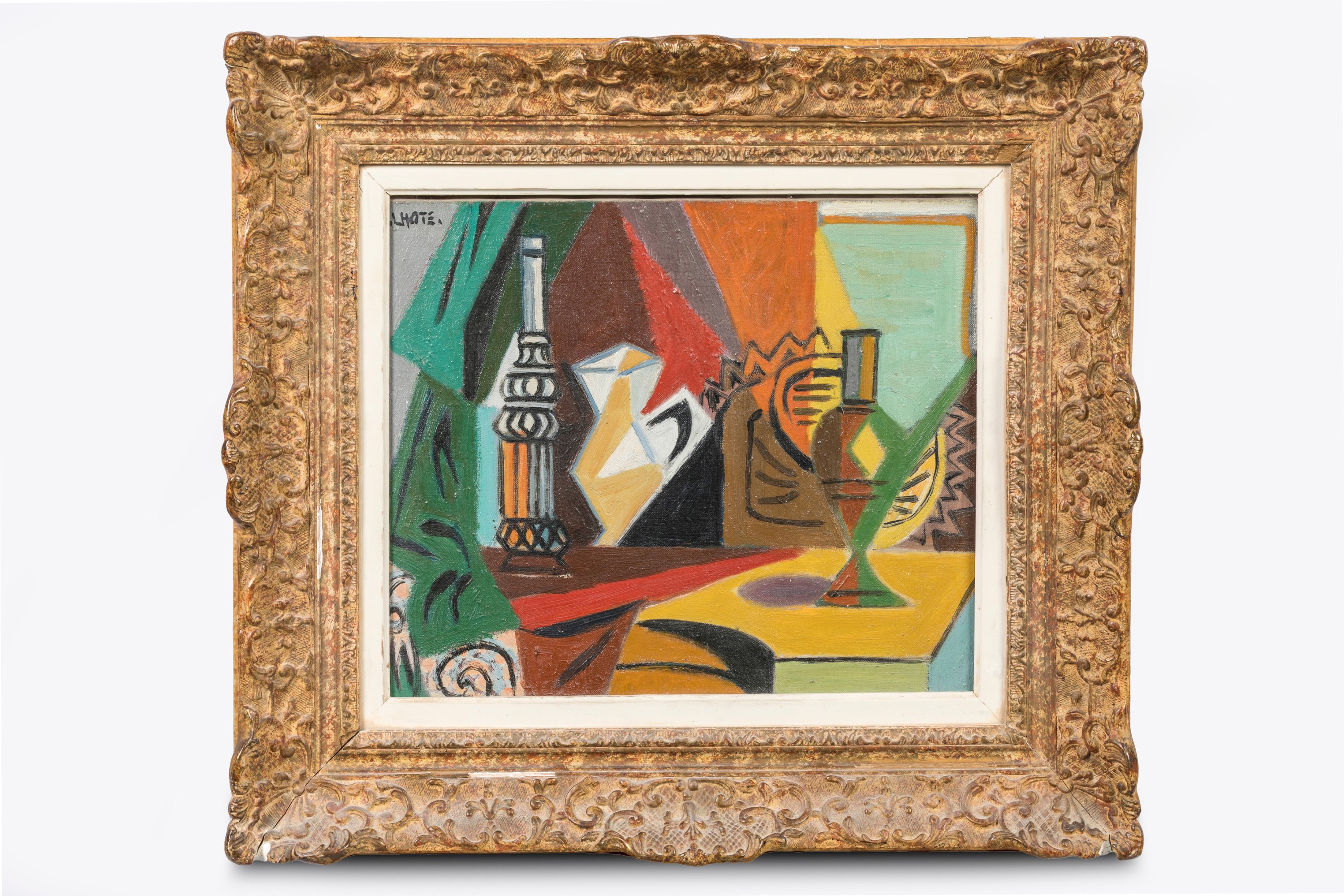 André Lhote. A ca. 1949 still-life painting featuring a mutlicolored jug. Oil on canvas. Signed.