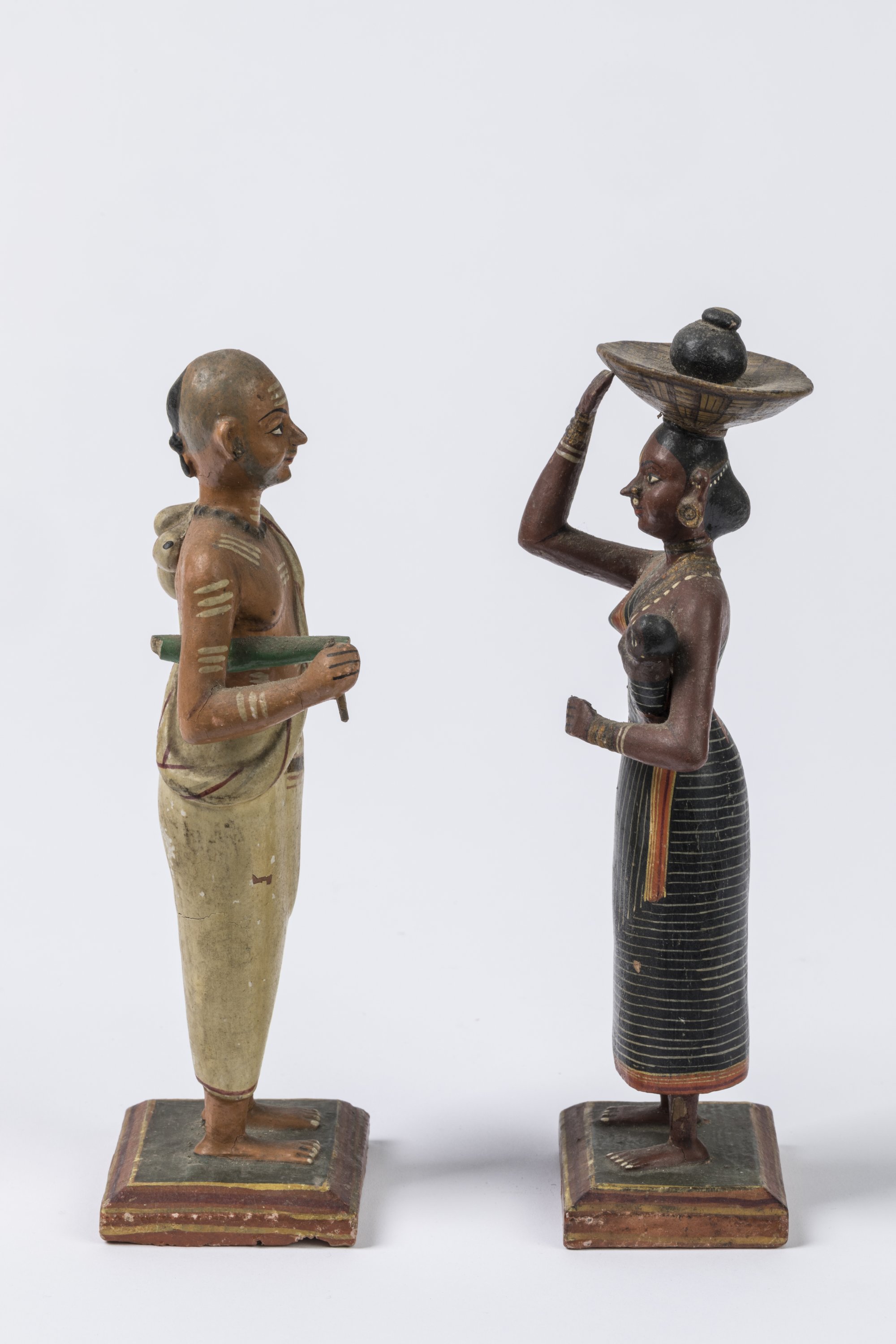 A pair of so-called "Javanese" carved polychrome wooden dolls. According to family lore, they were brought back to France by a lady-in-waiting to French Empress Eugenie upon her return from the opening ceremony of the Suez Canal.