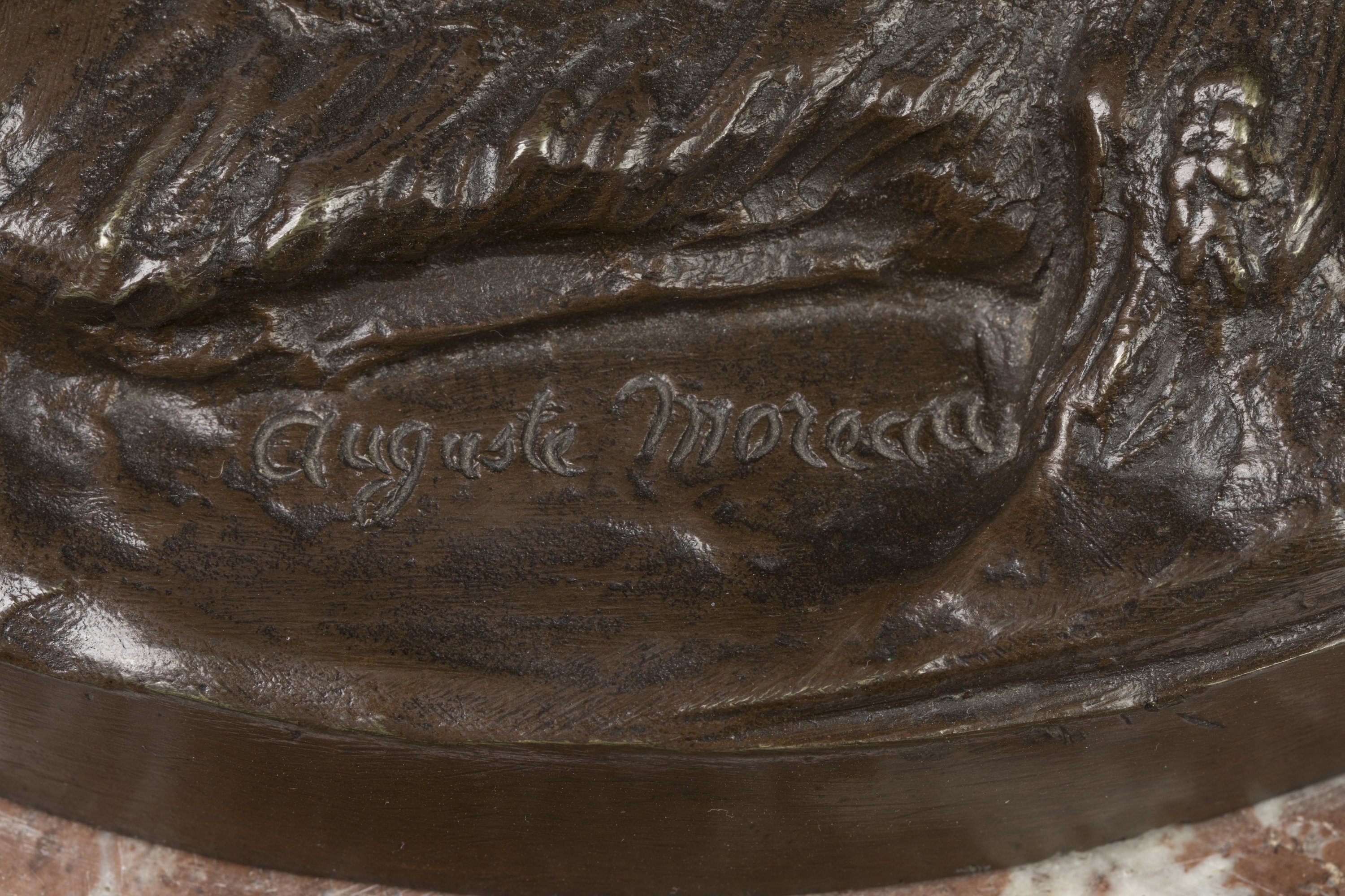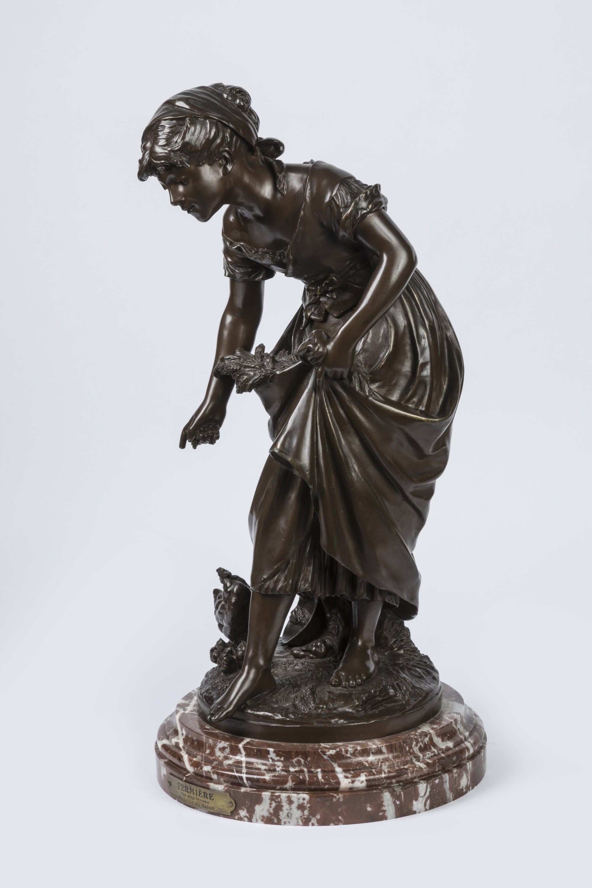 Sur un socle en marbre rouge avec un cartouche en cuivre "Fermière / par Aug. Moreau / Médaillé au Salon". Haut. totale 67 cm.