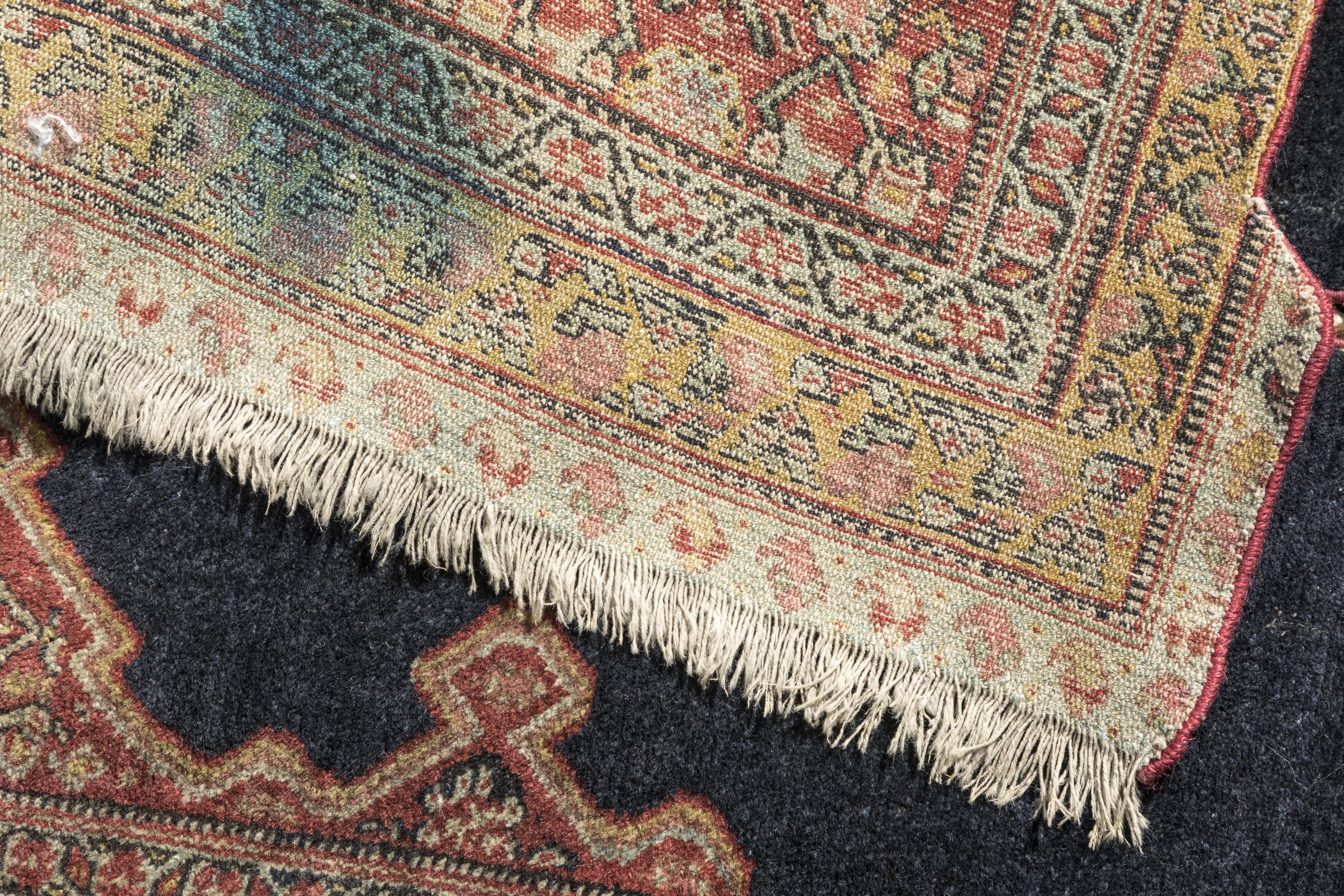 A Senneh (?) camel saddle blanket featuring a floral pattern on a black background.