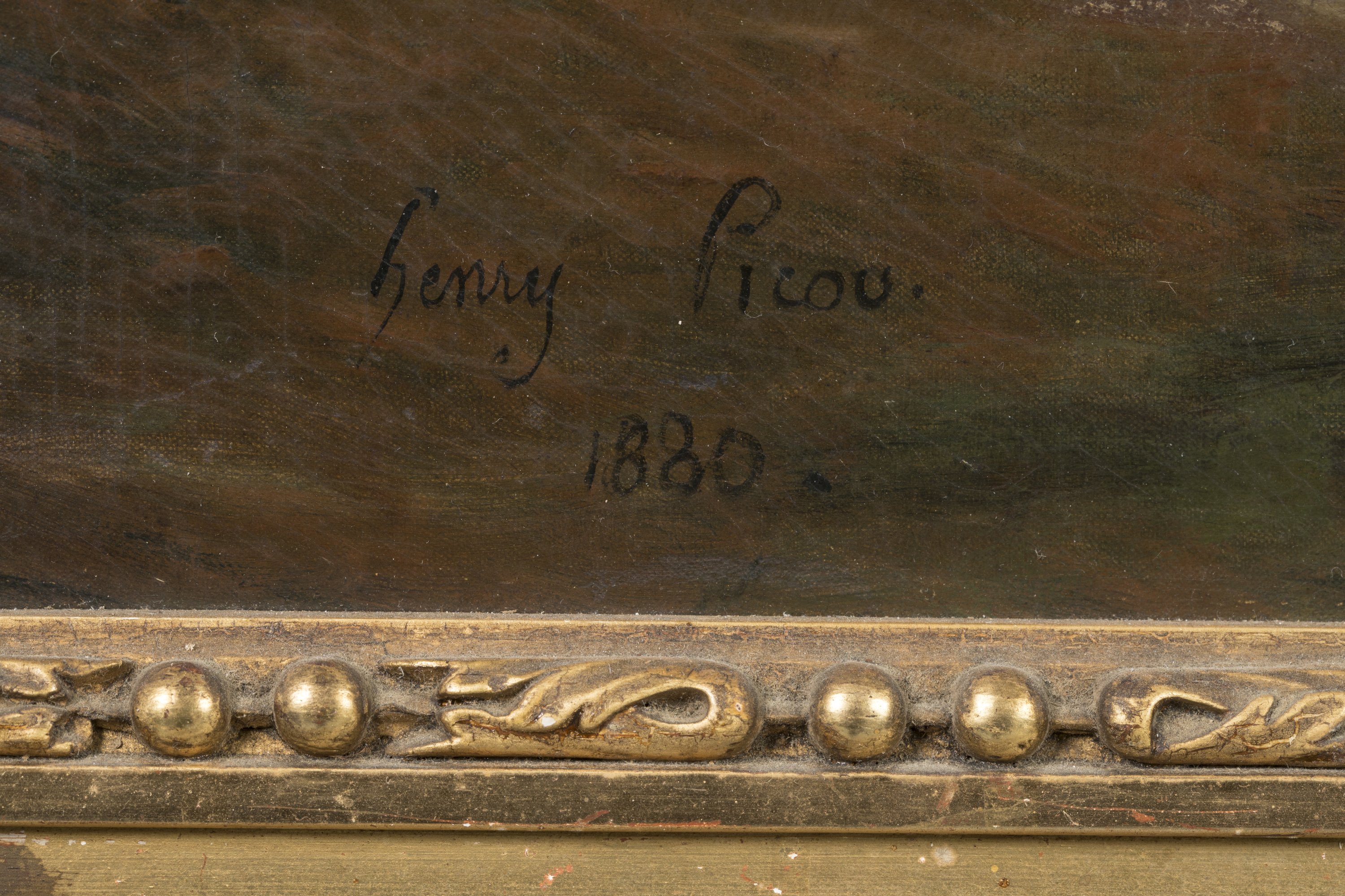 Henri Pierre Picou. An 1880 painting depicting Cupid's education. Oil on canvas in a carved wood frame. Signed and dated.