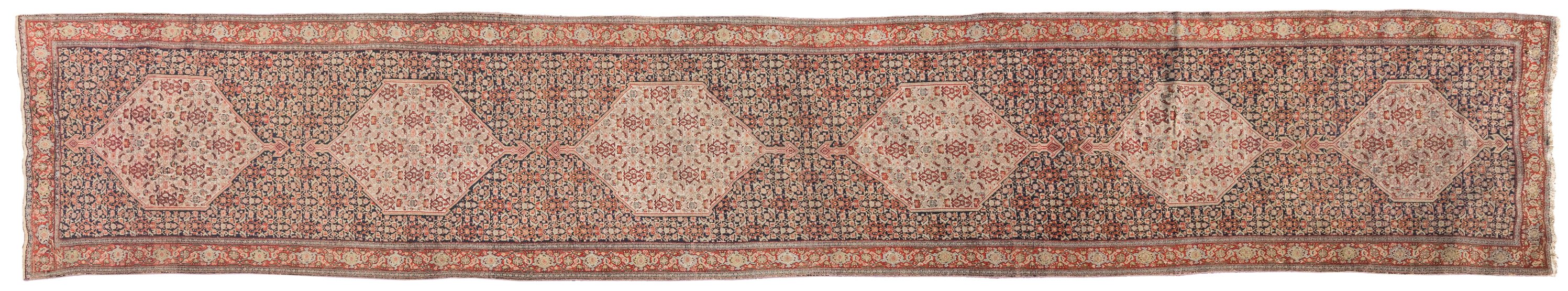 Dense décor herati de fleurs et palmes orné de six médaillons rhomboïdaux crème à décor herati.