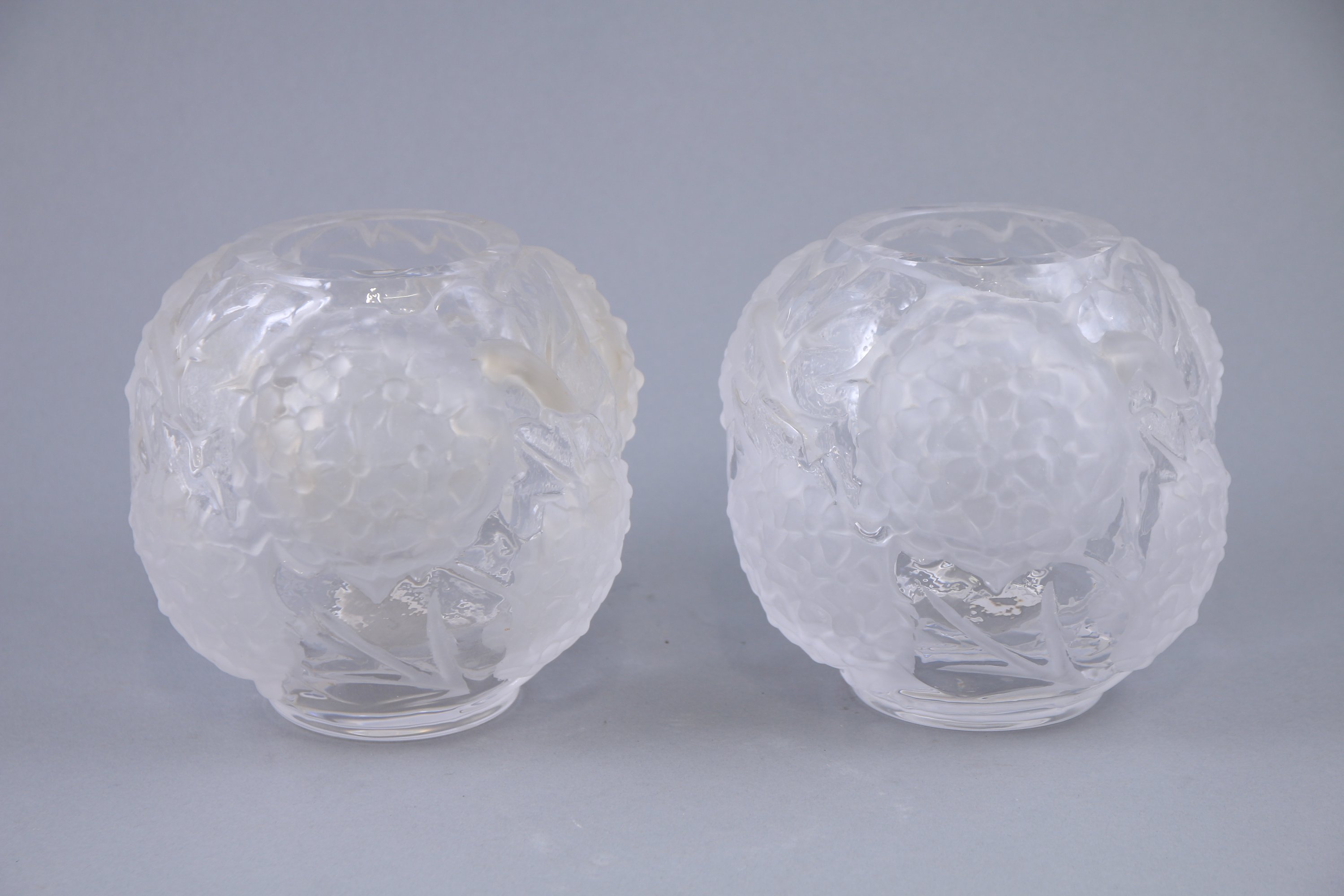 Verre moulé-pressé à décor de fleurs d'hortensia.