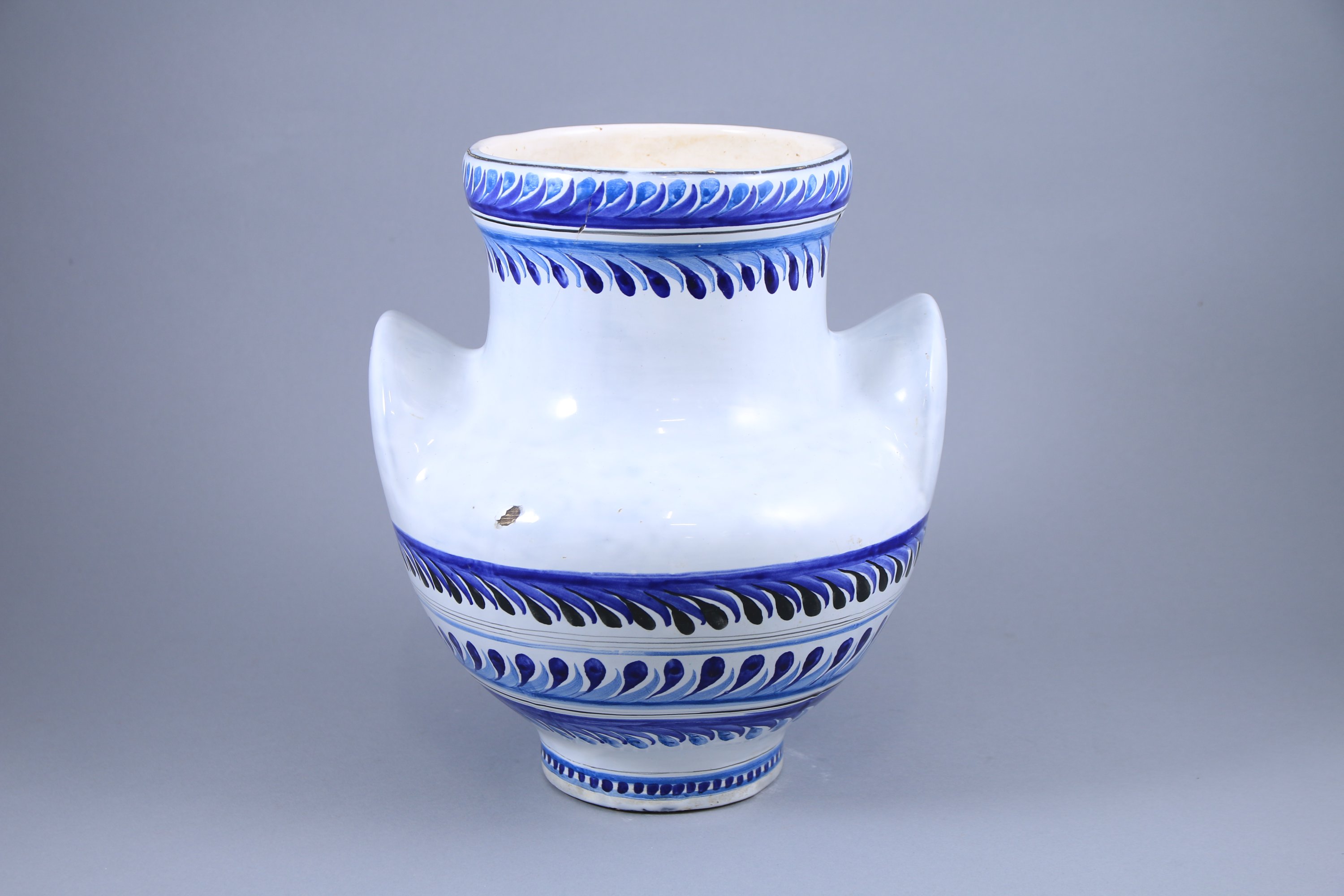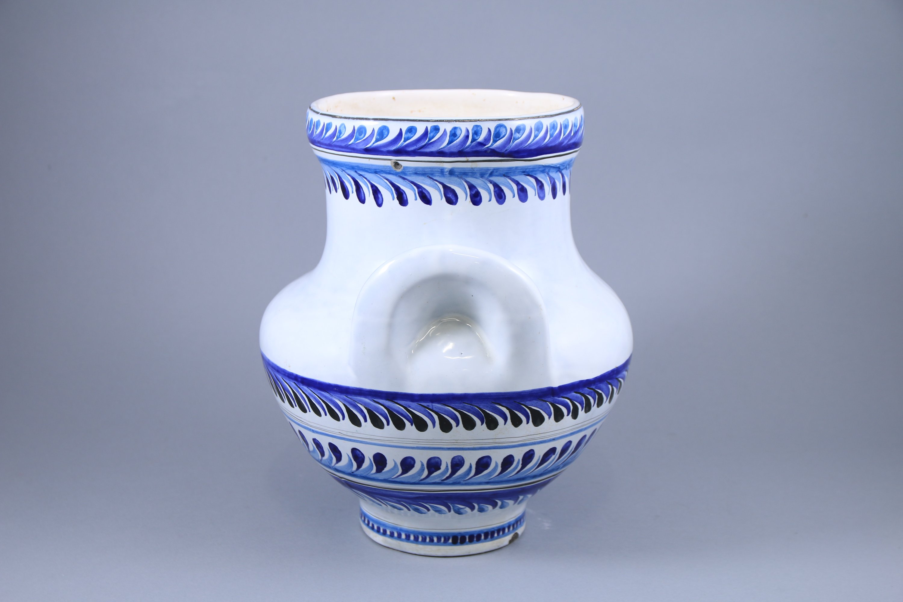 Céramique à décor de guirlandes bleues et blanches à la façon des productions à la bougie du XVIIe siècle.