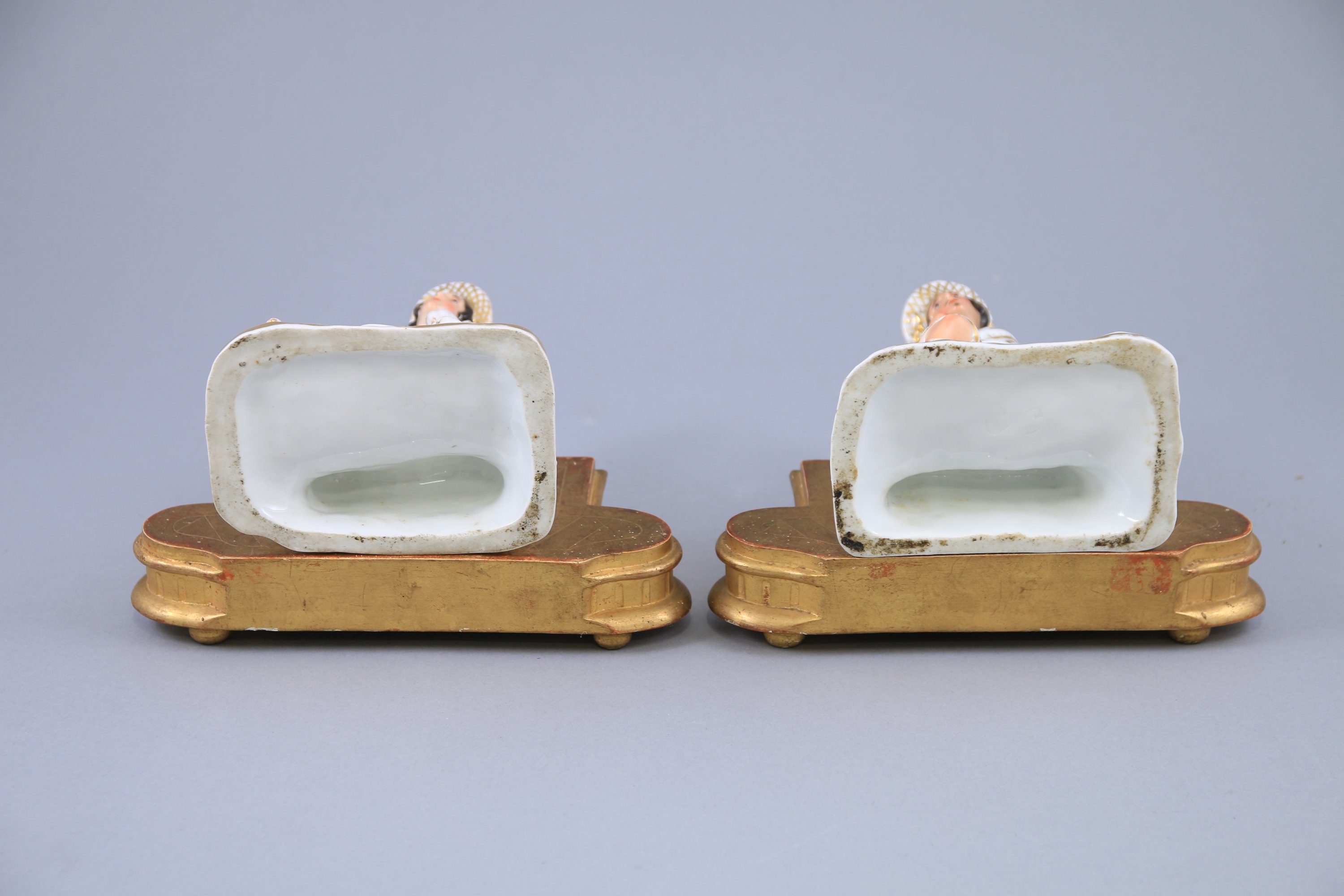Socles en bois doré associés. Haut. totale 21 cm.