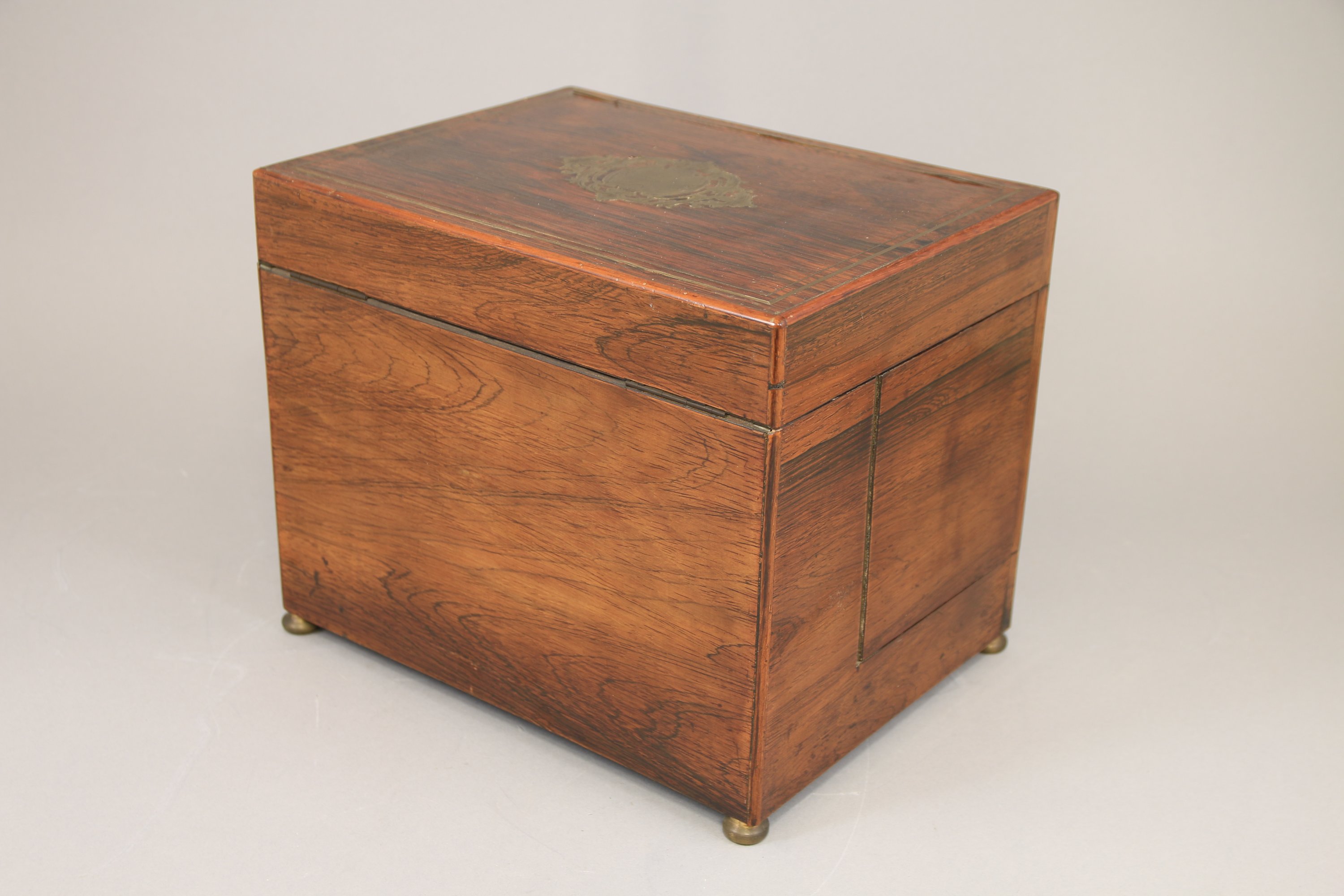 Le couvercle décoré de deux cartouches en laiton à motif de rinceaux cernés d'un double filet. L'intérieur formé d'un plateau à une prise centrale présente seize compartiments à verres et quatre emplacements pour les carafons. Elle repose sur quatre pieds patins.