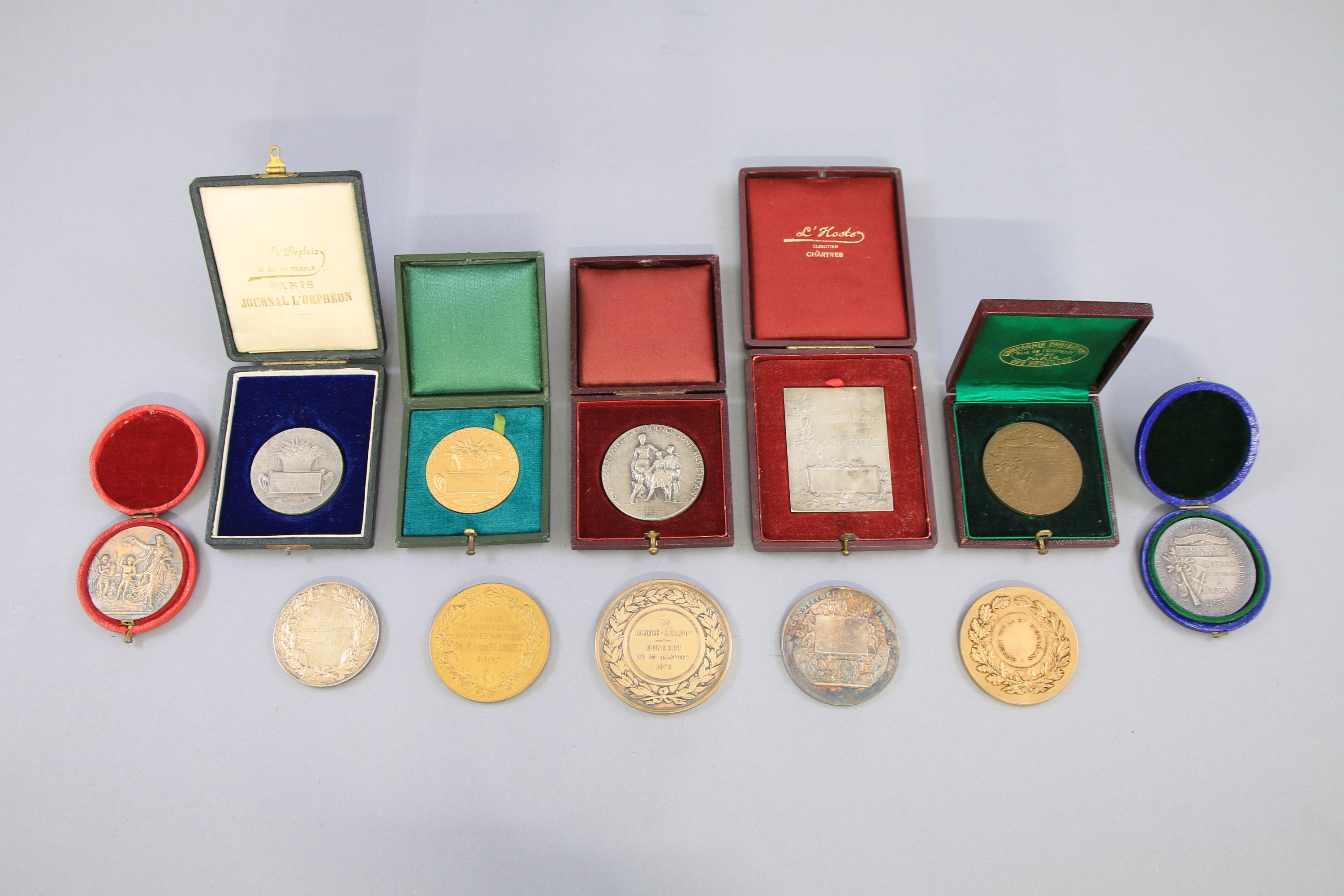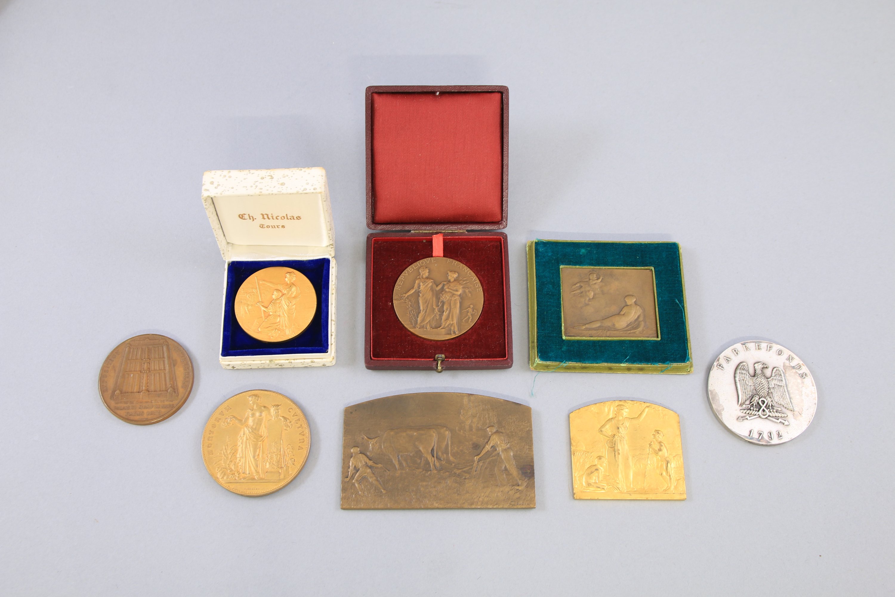 Joint : collection de médailles en bronze de membre du jury du Concours Général Agricole, médaille du 8ème régiment de hussards, médaille de la Société française pour l'amélioration des races canines, médaille du comice agricole de l'arrondissement de Blois et médaille de l'Exposition universelle de Paris de 1878.