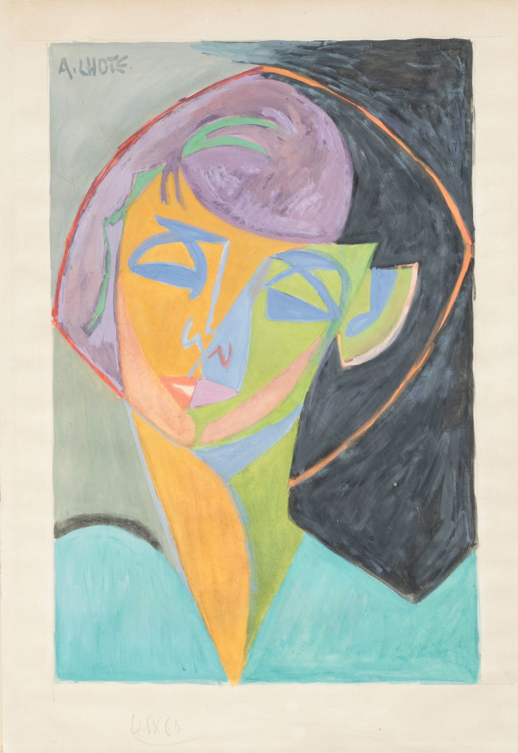 Cette tête de la seconde épouse de l'artiste, Simone Camin (1898-1978), est une étude pour le portrait de "Simone au fauteuil" conservé au Musée d'art et d'archéologie de Valence qui servit pour l'affiche imprimée par Mourlot à l'occasion de la rétrospective Lhote au Musée national d'art moderne à Paris en 1958.
