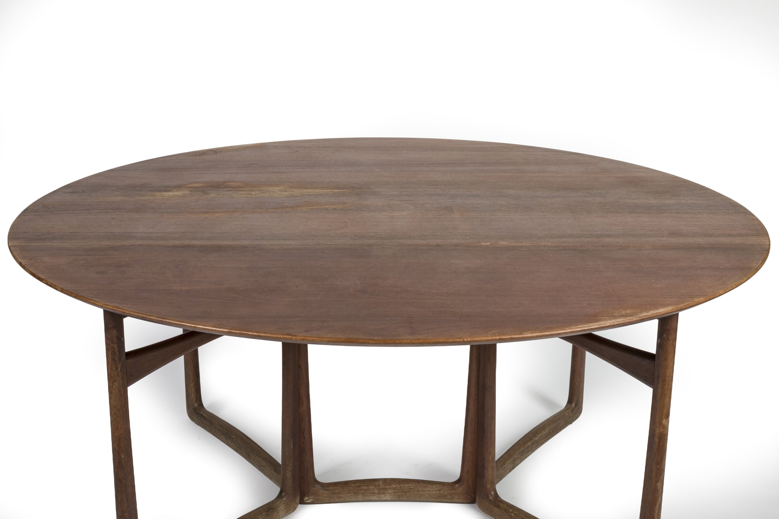 Le plateau de forme ovale à deux volets reposant sur un piétement Gateleg.