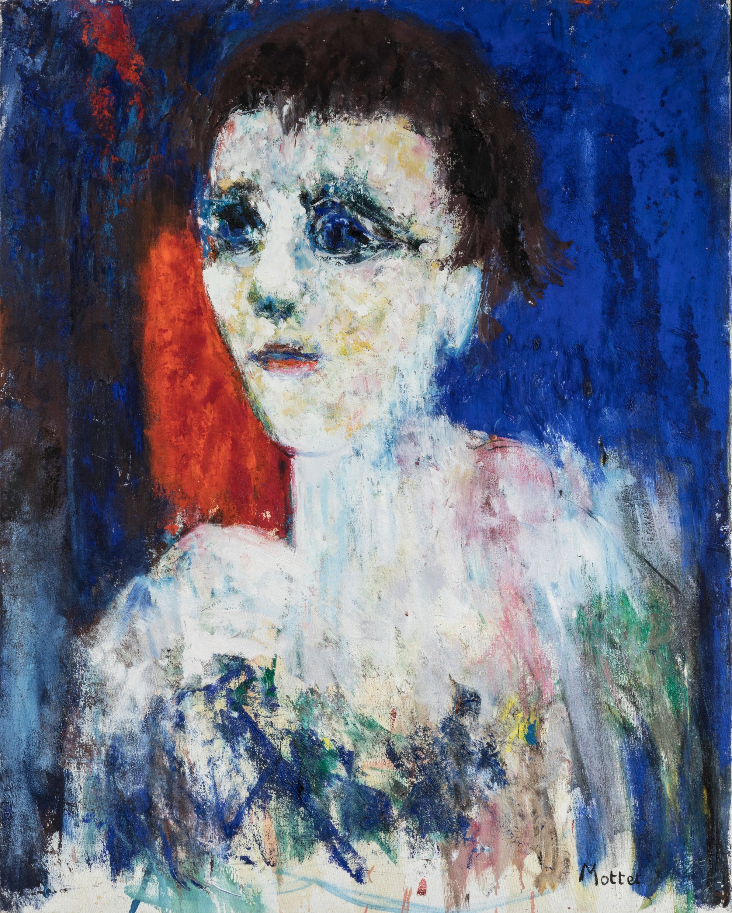 Portrait au fond bleu et rouge...