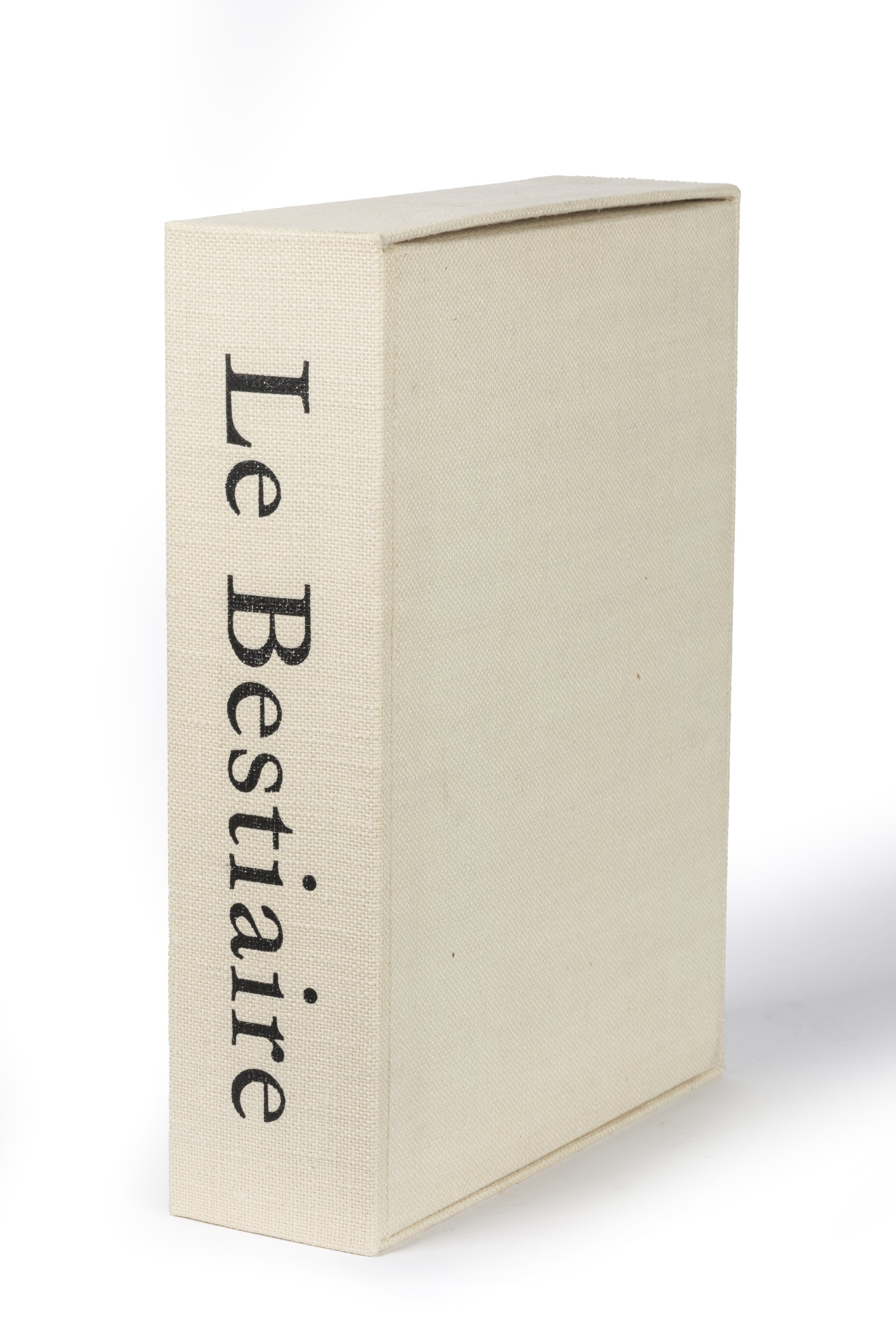 In-folio (390 x 288 mm). En feuilles. Couvertures jaunes, imprimées et rempliées. Emboîtage de l'éditeur en toile blanche. Tirage à 230 exemplaires seulement, tous sur papier d'Auvergne. Couvertures et 33 bois originaux en couleur pleine page, dont 4 sur double page. Exemplaire n°39, avec une suite des 33 bois en couleurs dont quatre sur double page et la décomposition des couleurs d'une planche sur pur chiffon Guano.