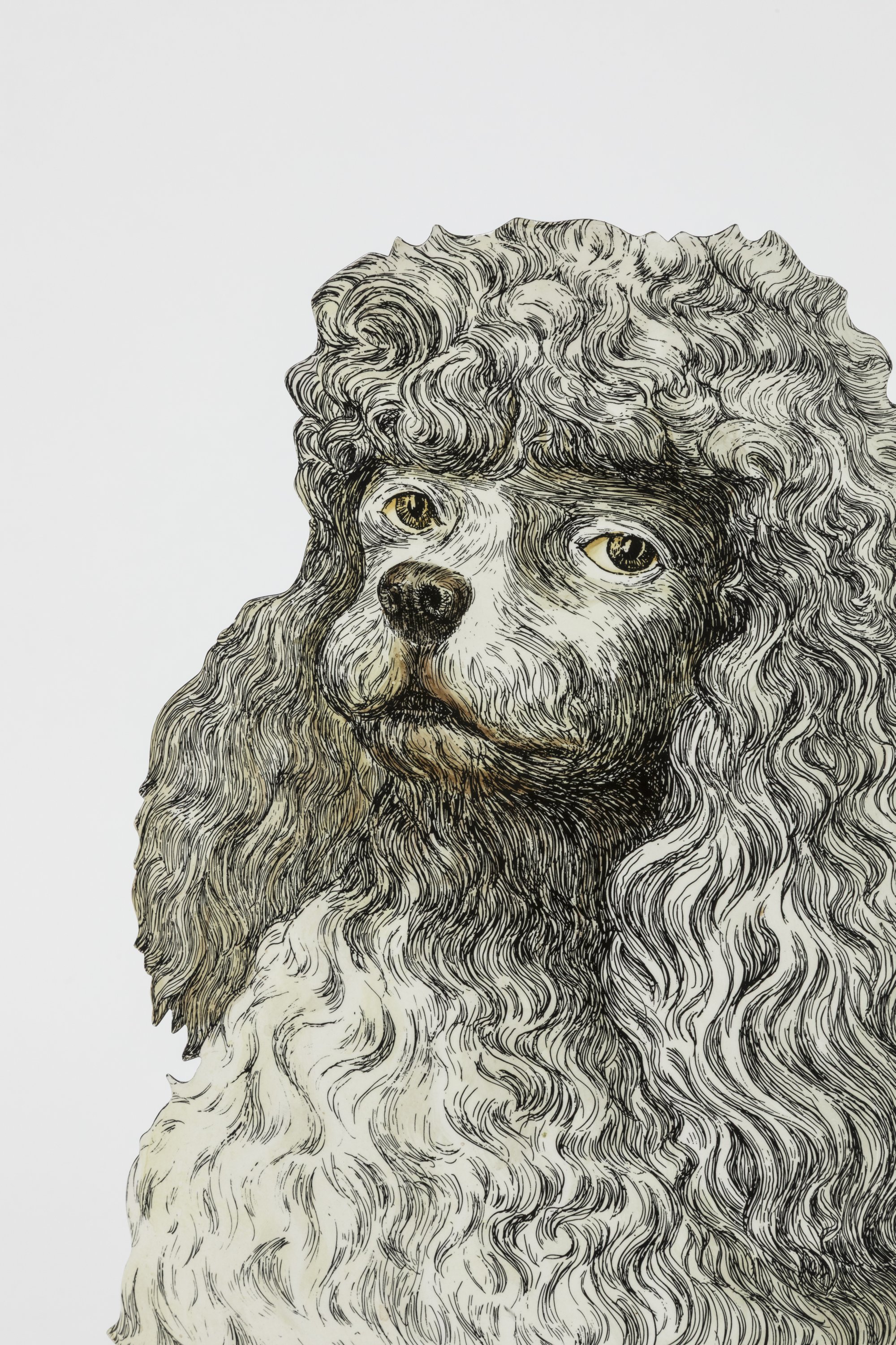 Bibliographie : Barnaba Fornasetti, Mariuccia Casadio, Andrea Branzi, « Fornasetti. II. La bottega fantastica », Milan, Electa, 2009, pour une carte reprenant le même chien p. 474.