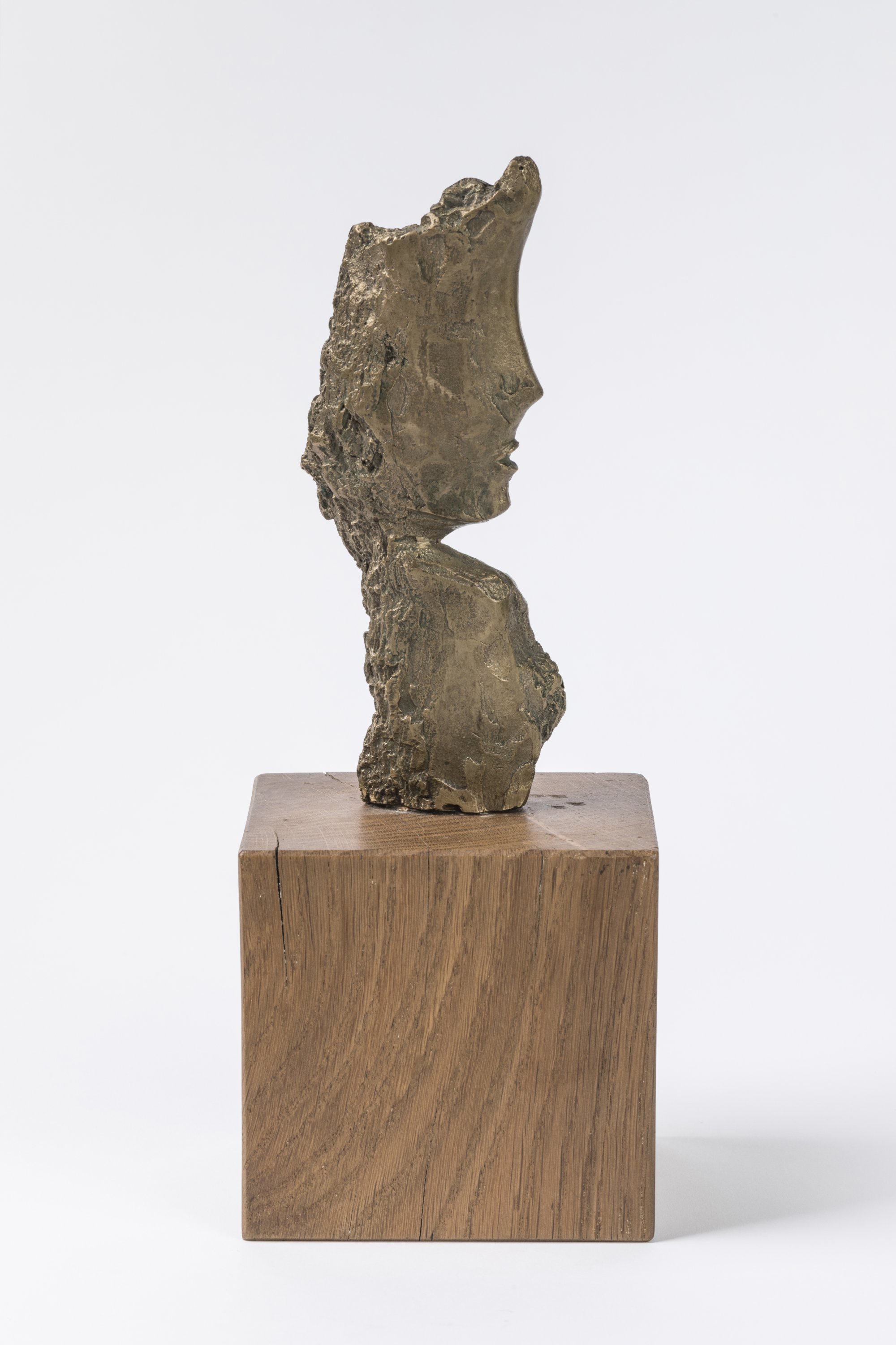 Socle cubique en bois brut. Haut. totale 29 cm.