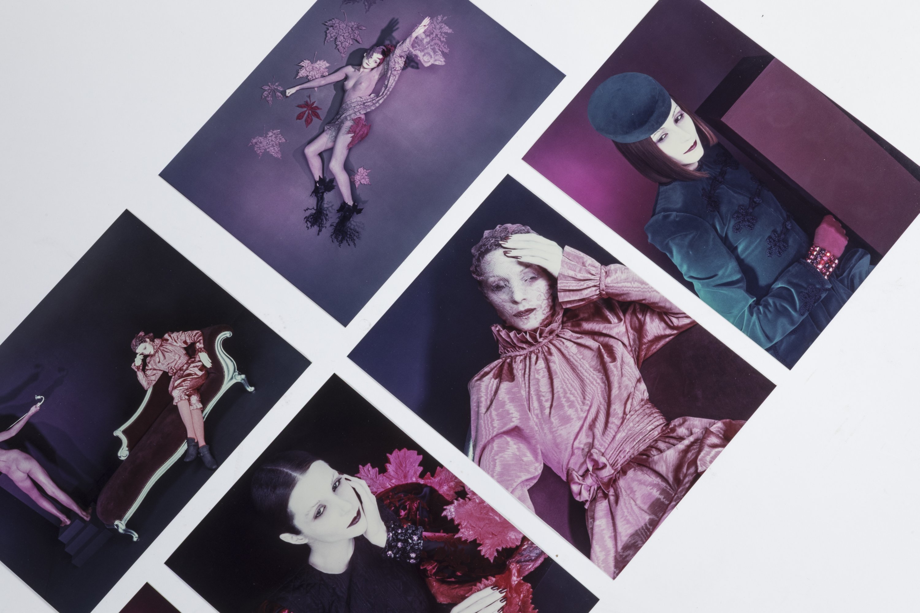 Monsieur Lutens nous demande de préciser que ces tirages reproduits en série constituent des documents de travail de l’époque qui ont été réalisés pour la promotion de produits cosmétiques. Ils ne correspondent pas à la vision de Serge Lutens de son œuvre photographique.