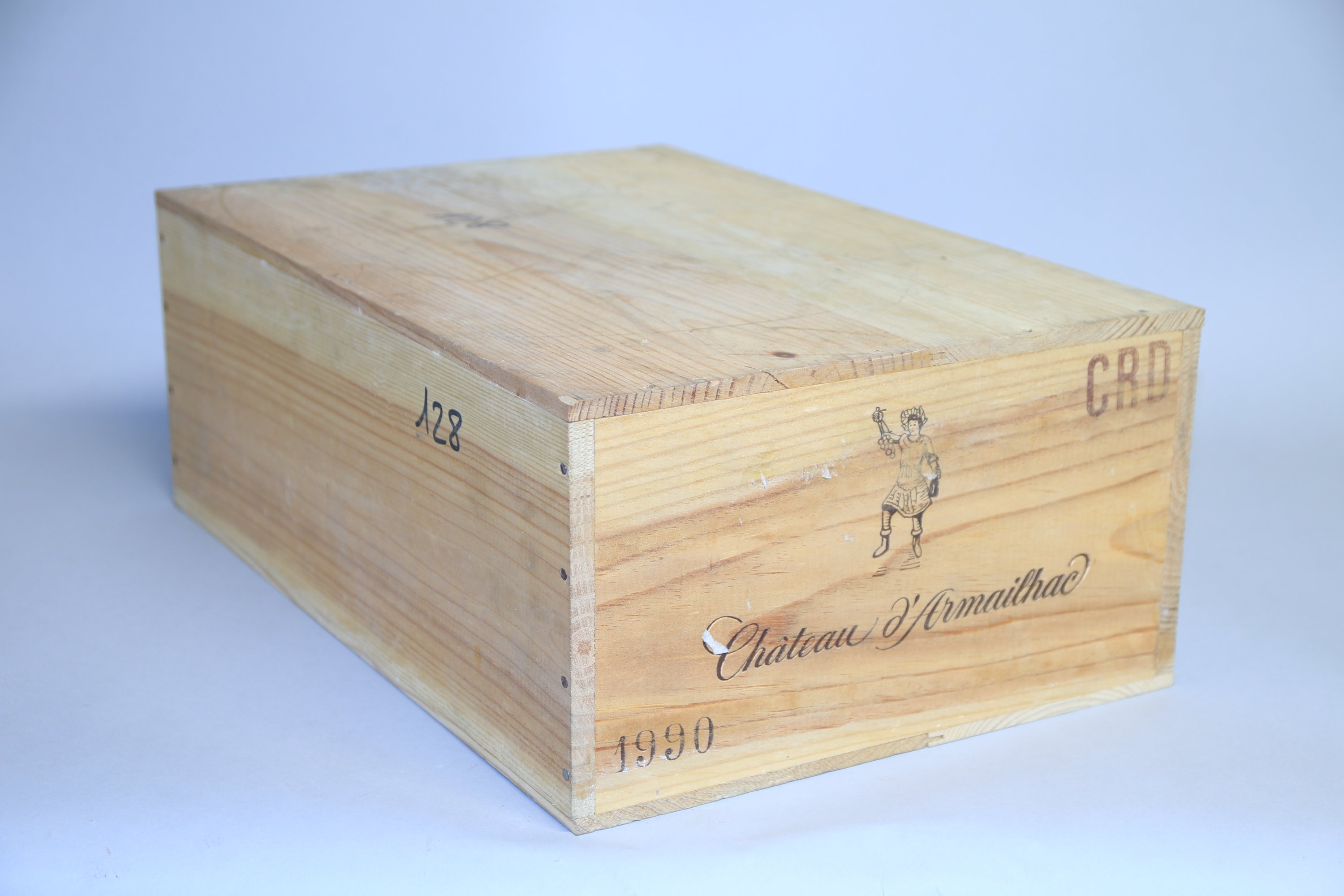 Pauillac, Château d'Armailhac, 5ème Grand Cru classé, 1990, 12 bouteilles. Caisse en bois d'origine (numérotation au feutre).