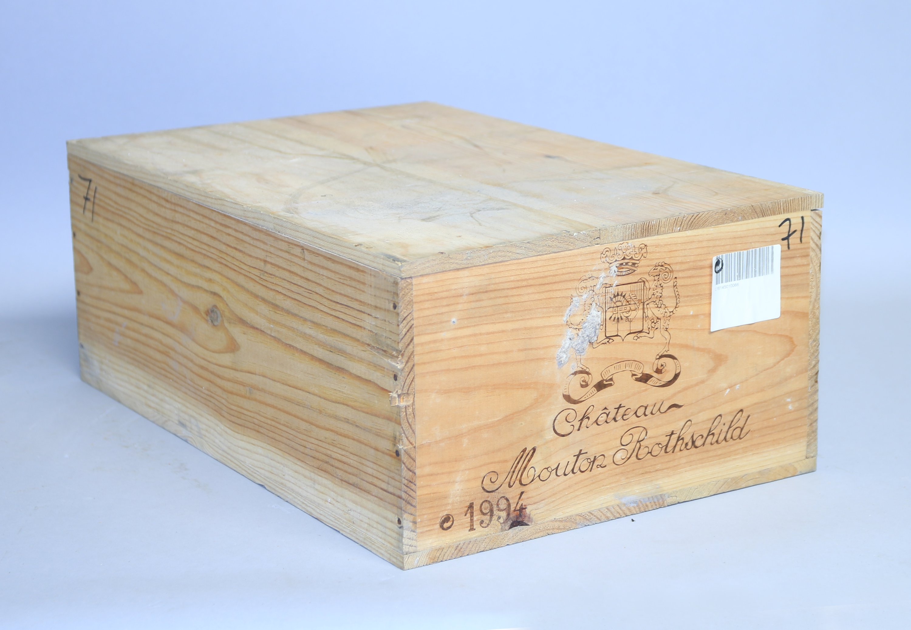 Pauillac, Château Mouton Rothschild, 1er Grand Cru classé, 1994, 12 bouteilles. Caisse en bois d'origine (numérotation au feutre).
