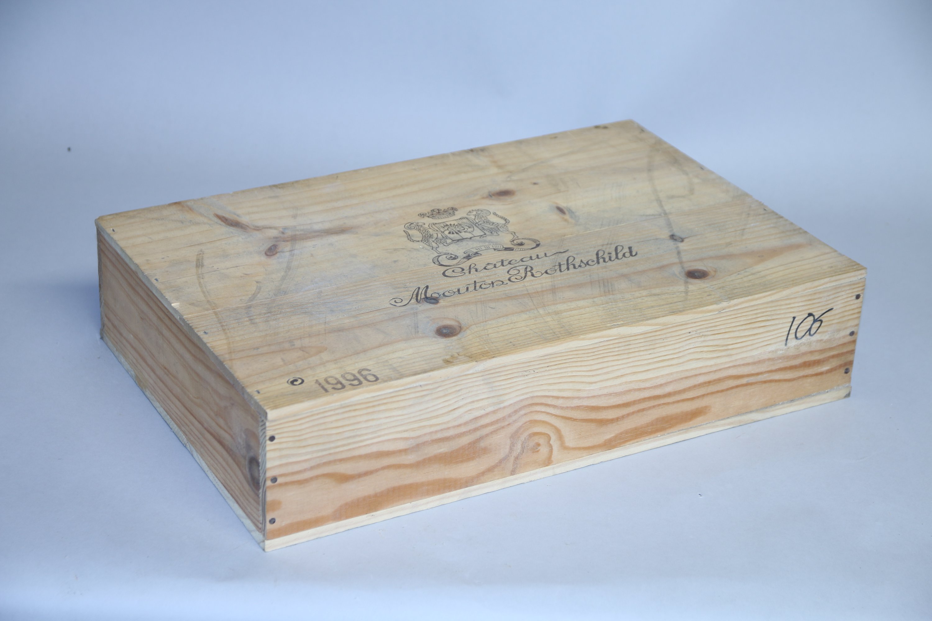 Pauillac, Château Mouton Rothschild, 1er Grand Cru classé, 1996, 6 bouteilles. Caisse en bois d'origine (numérotation au feutre).