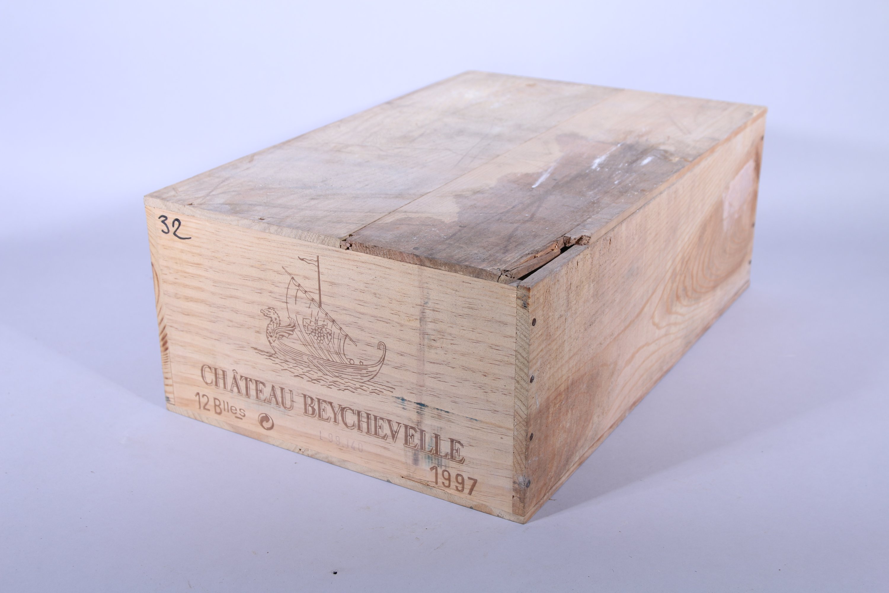 Saint-Julien, Château Beychevelle, 4ème Grand Cru classé, 1997, 12 bouteilles. Caisse en bois d'origine (numérotation au feutre).