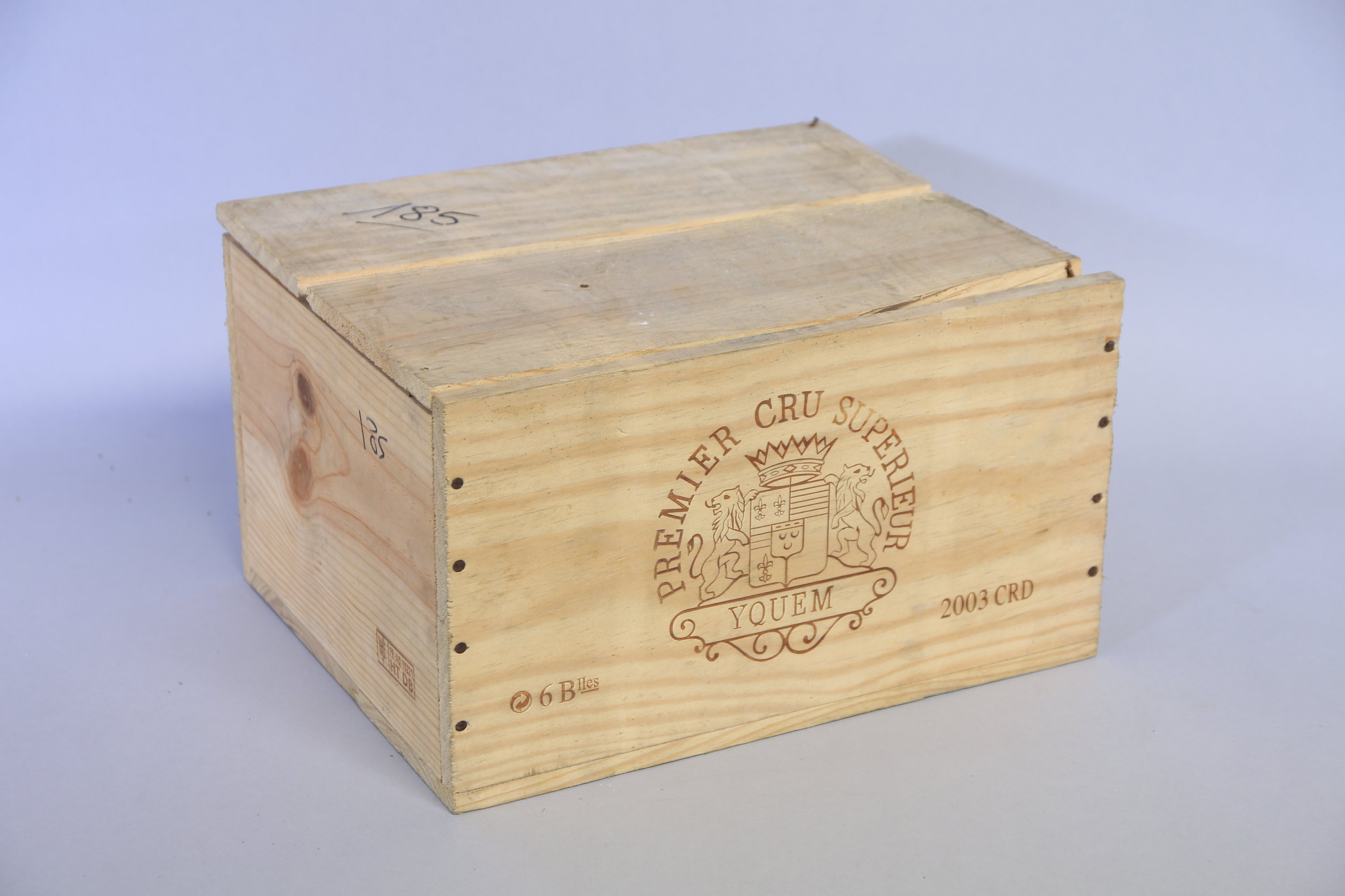 Sauternes, Château D'Yquem, 2003, 3 bouteilles. Caisse de 6 ouverte et abimée (numérotation au feutre).