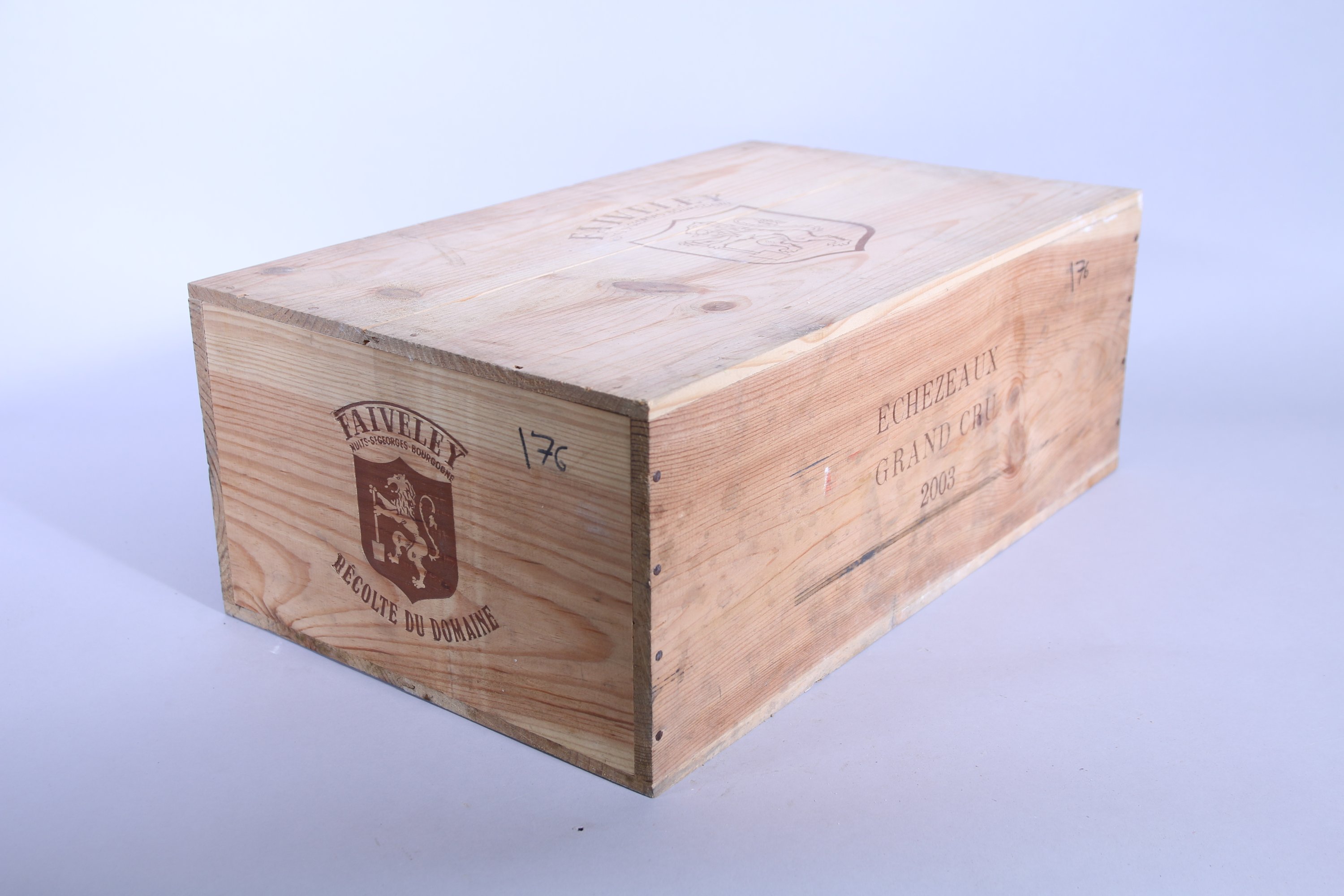 Echezeaux, Domaine Faiveley, Grand Cru, 2003, 12 bouteilles. Caisse en bois d'origine (numérotation au feutre).