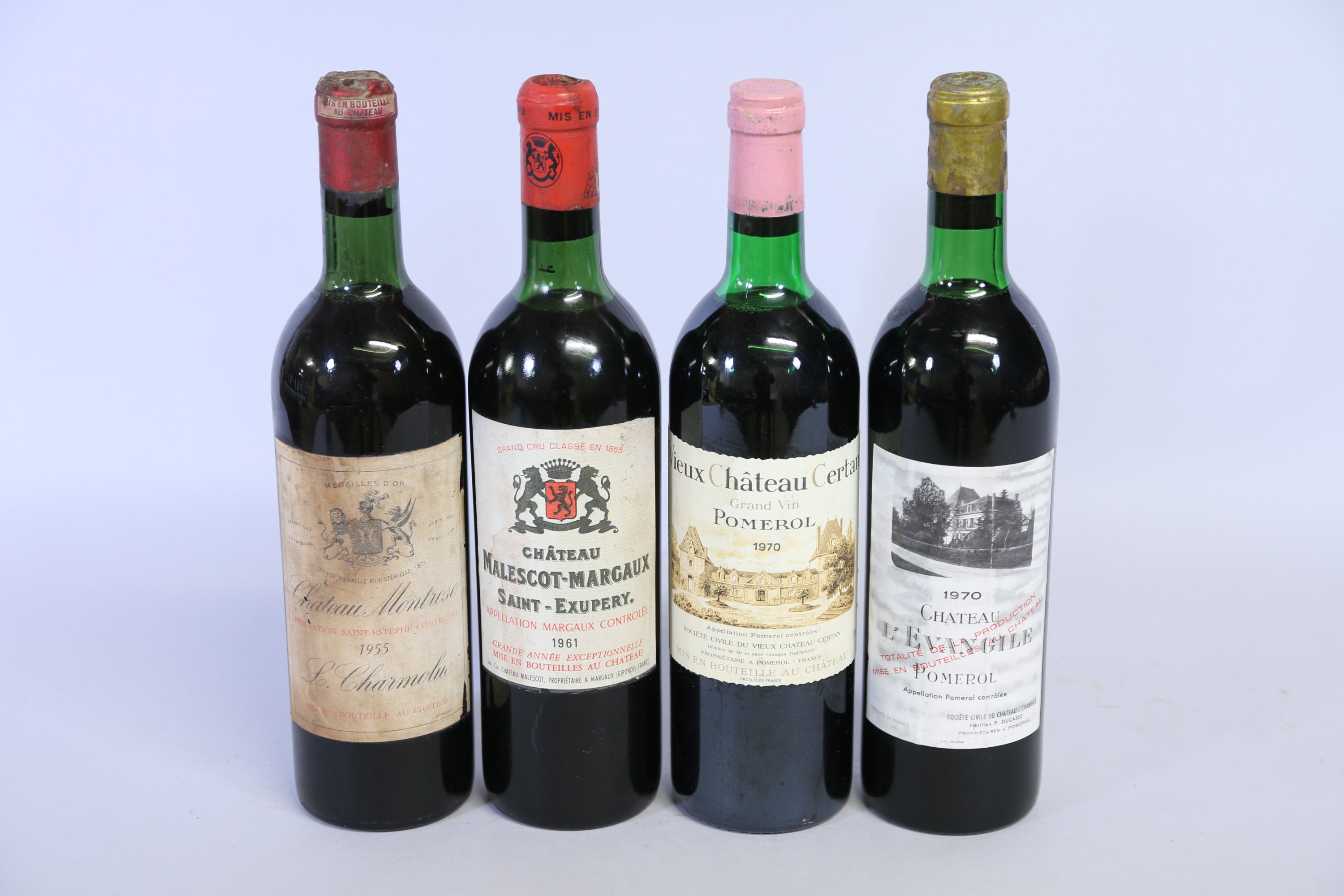 - Saint-Exupéry, Château Malescot-Margaux, 1961, 1 bouteille. Niveau : haute épaule. Etiquette : tâchée. Capsule : déchirée et concave.