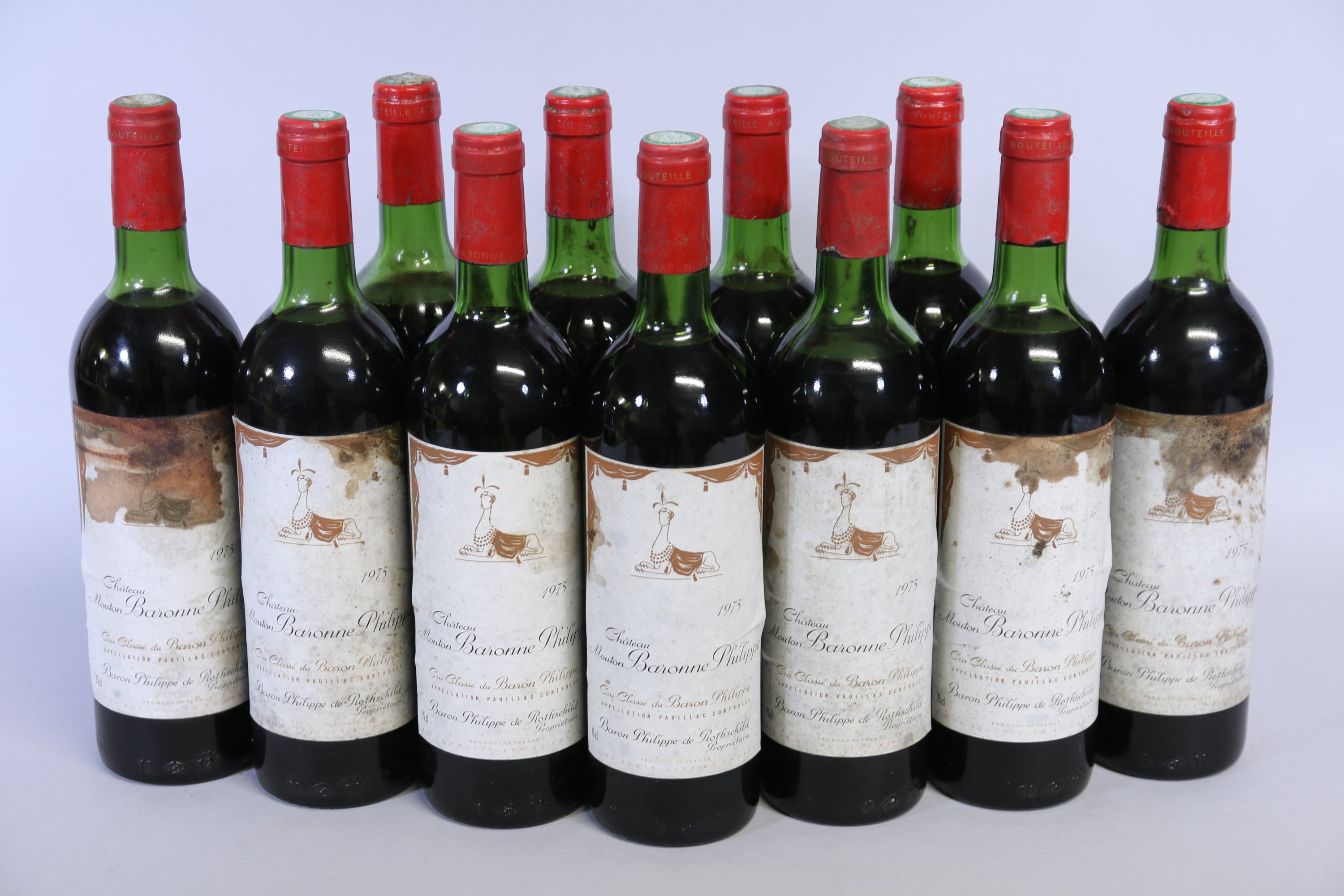 Pauillac, Château Mouton Baronne Philippe de Rothschild, 1975, 11 bouteilles.