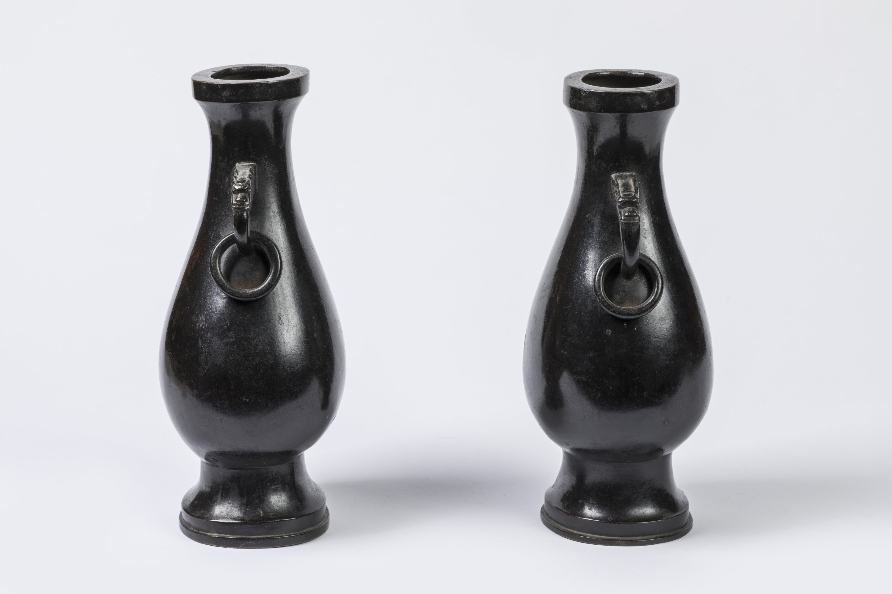 A Chinese pair of bronze baluster vases. Ming Dynasty, 17th century.