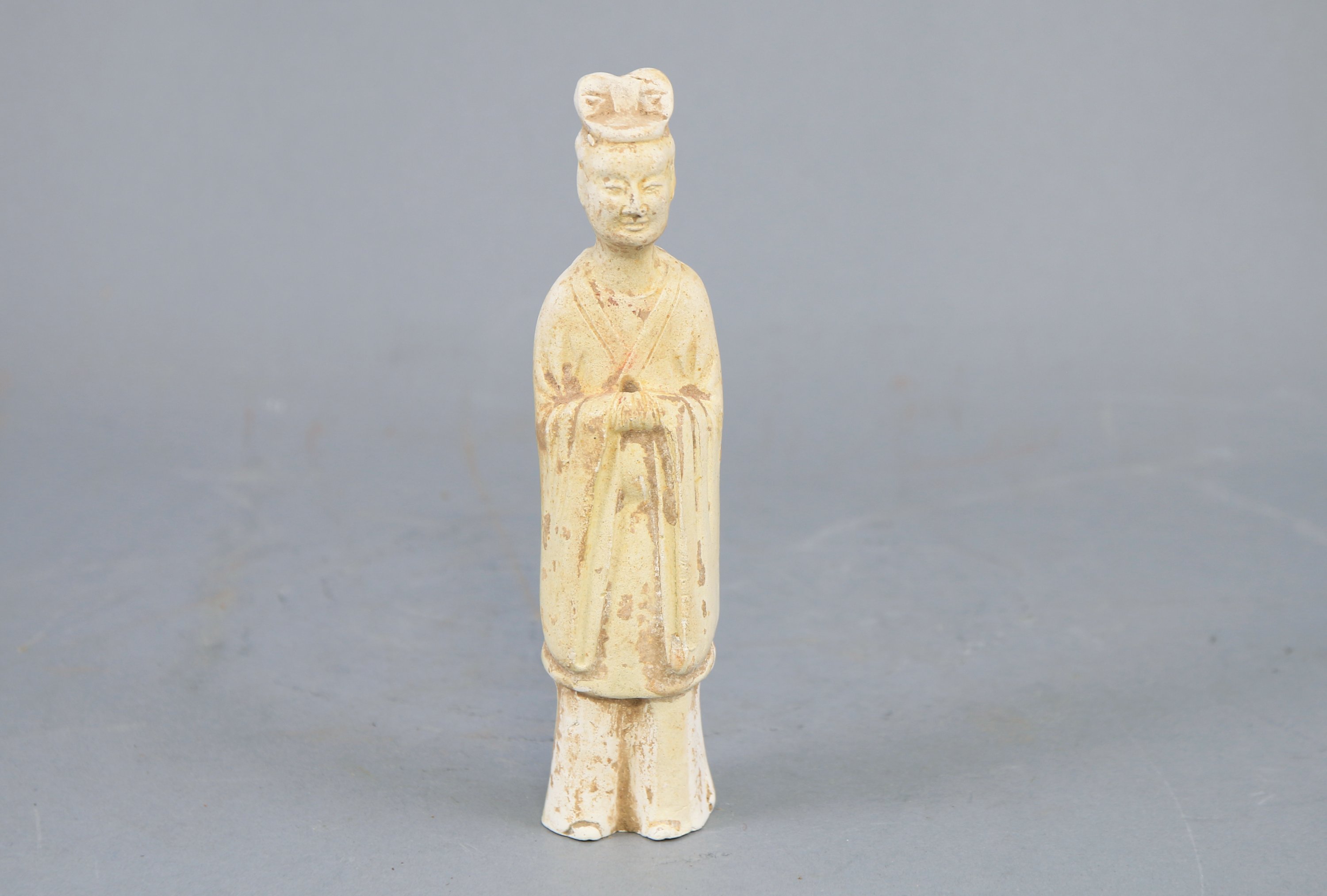 Figurant un dignitaire debout, les mains jointes dans ses larges manches.