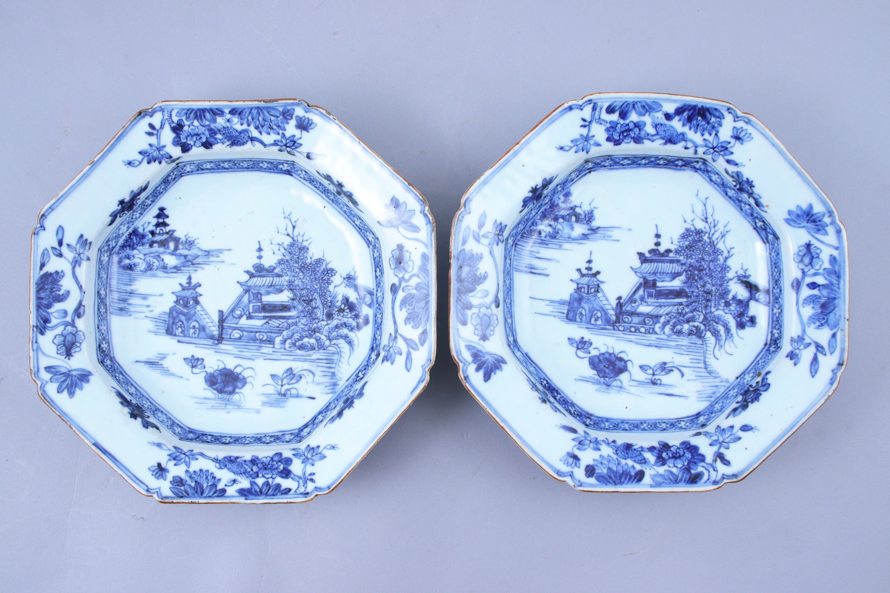 Paire d'assiettes creuses de forme octogonale