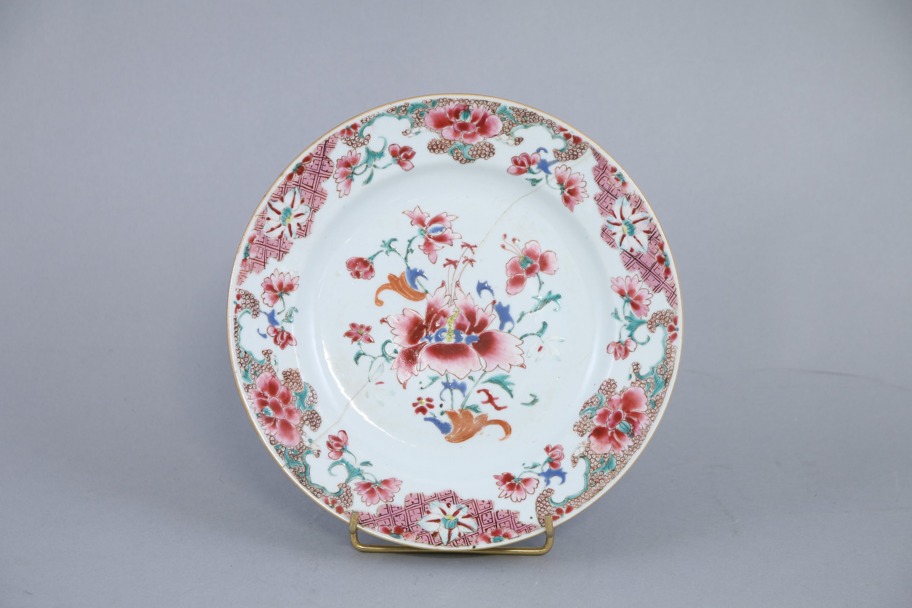Joint : Assiette en porcelaine de Chine à décor de pivoines Diam. 22,5 cm (fêle).
