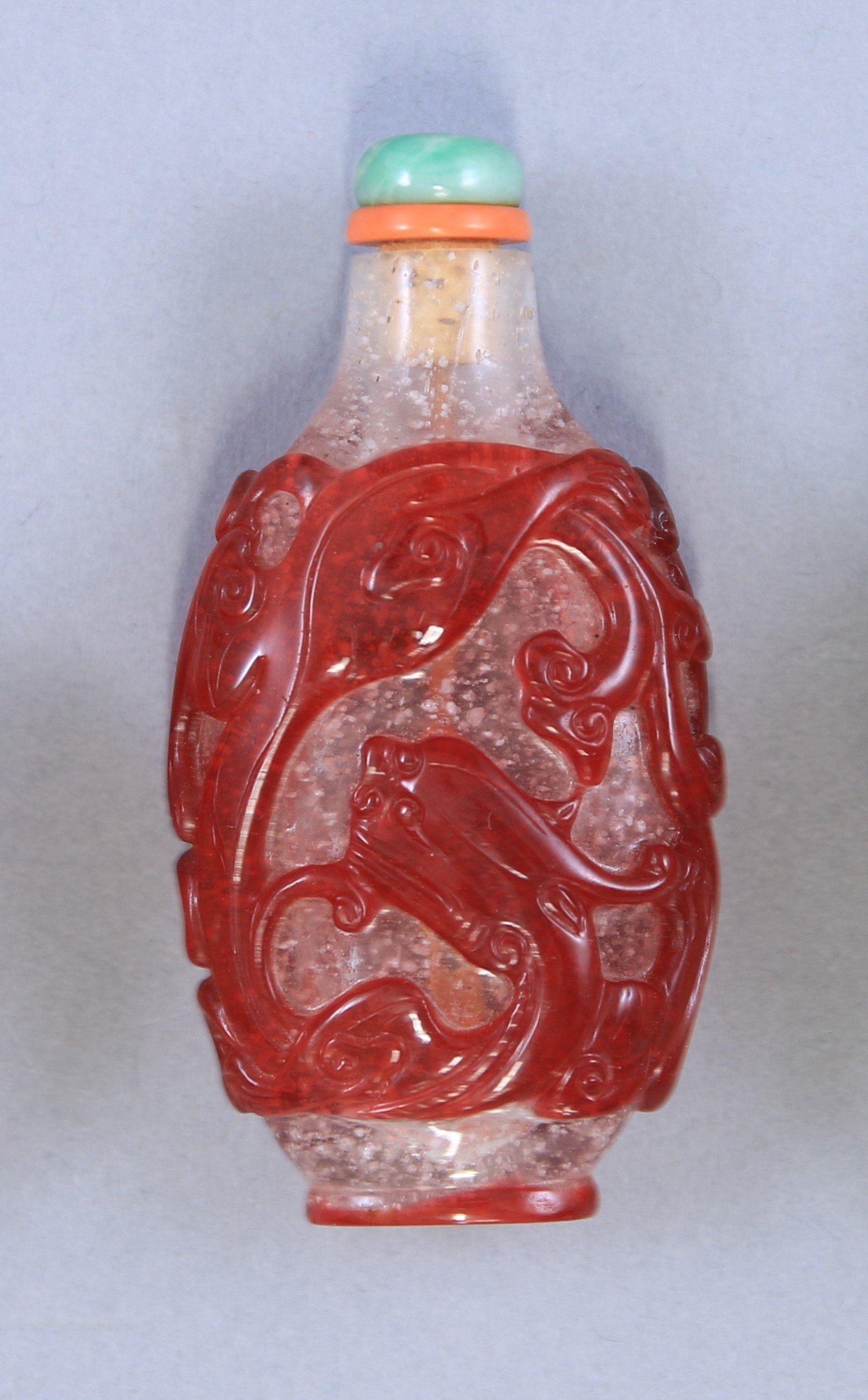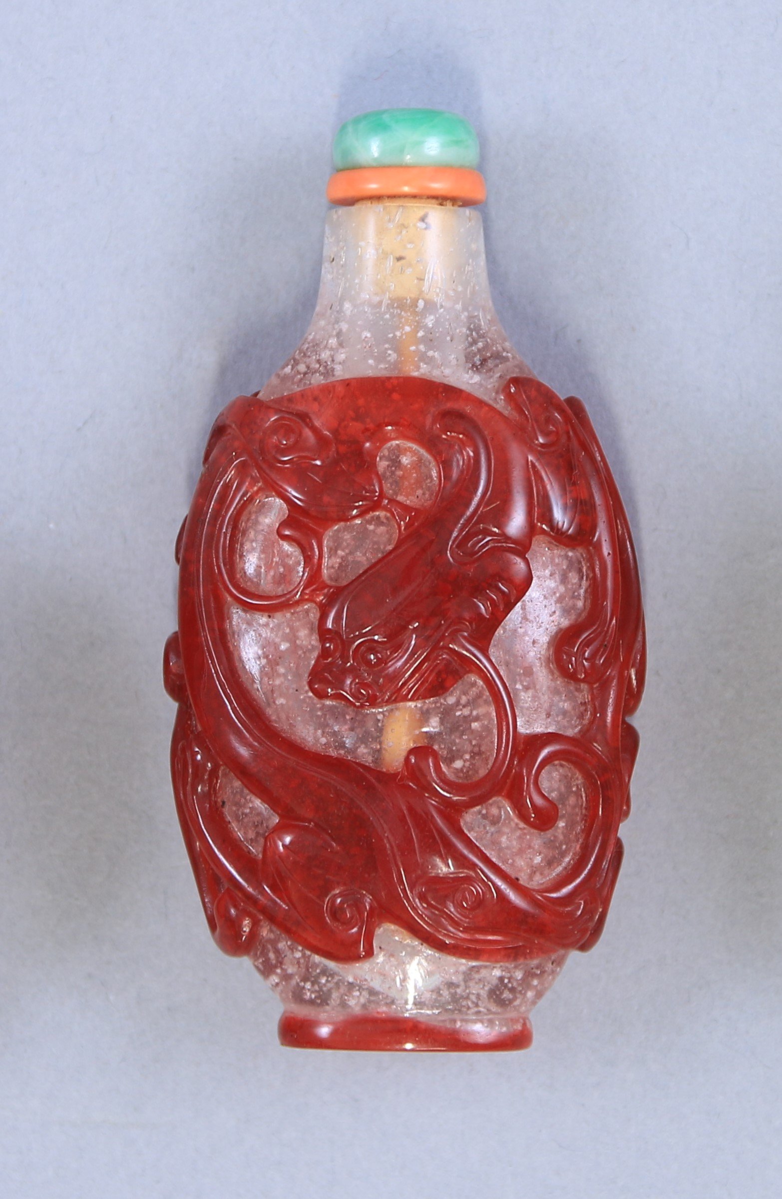 Bouchon en jadéite et corail (corallium rubrum).