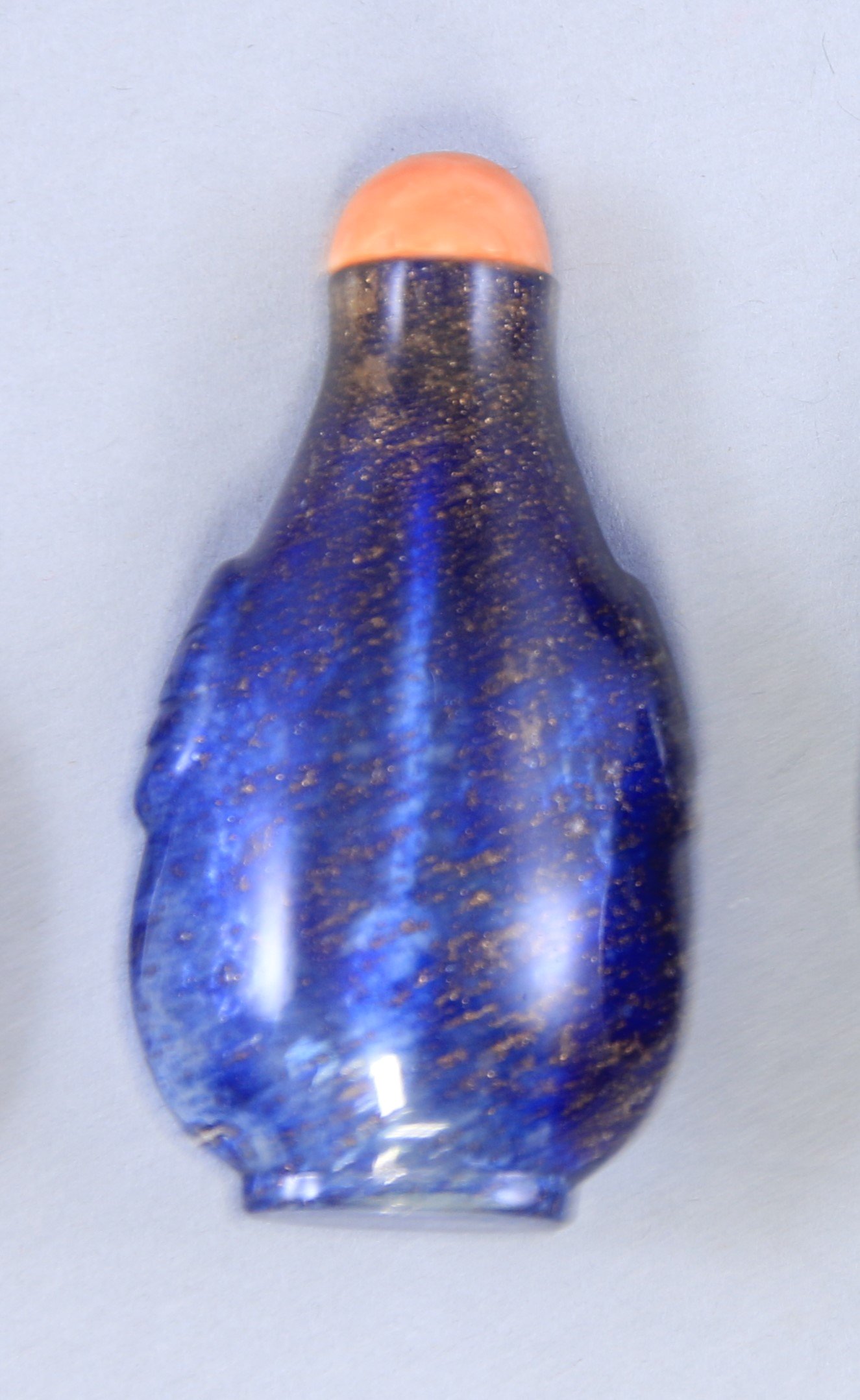 Verre aventuriné bleu moucheté or flanqué de deux anses stylisées.