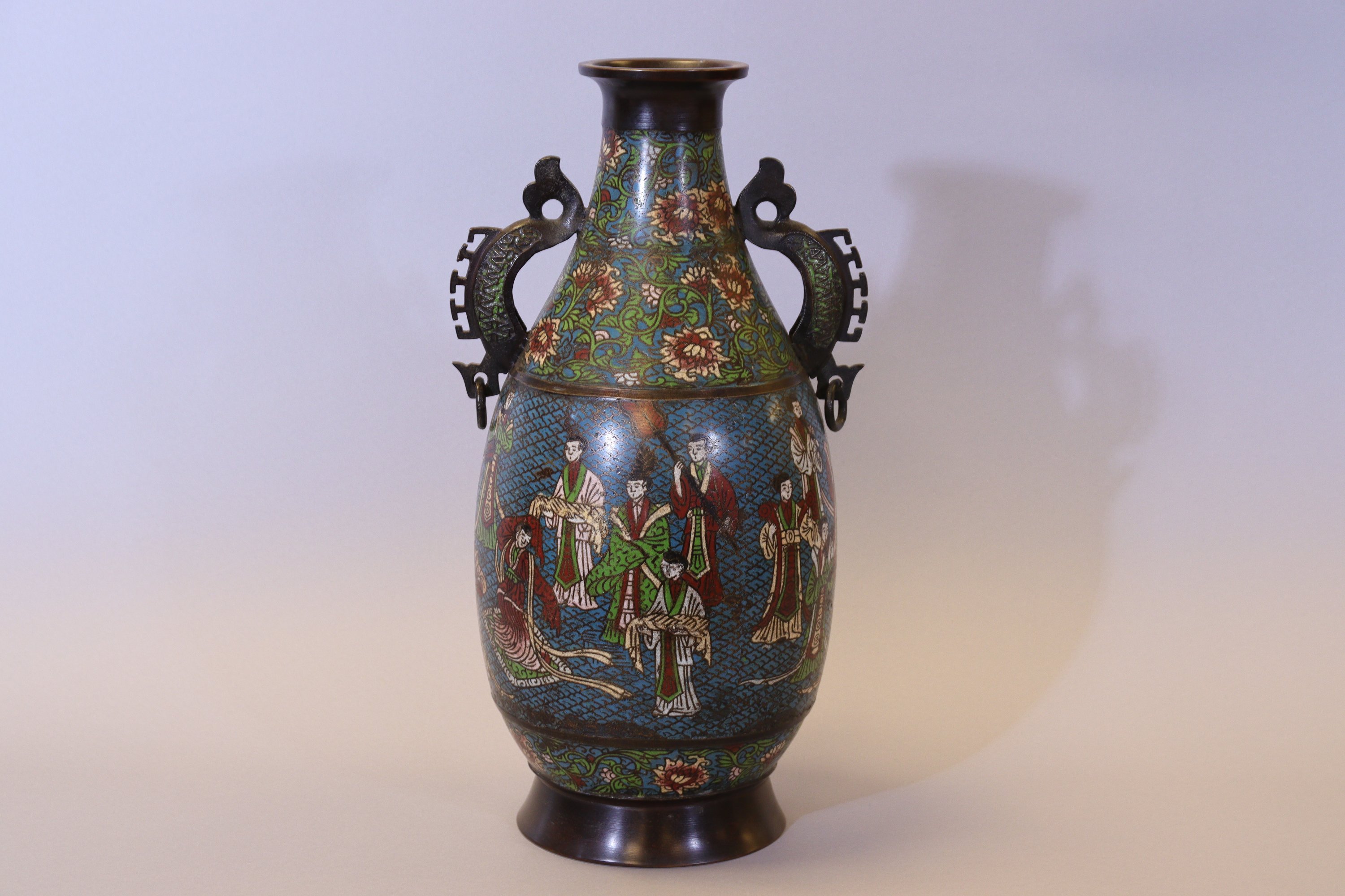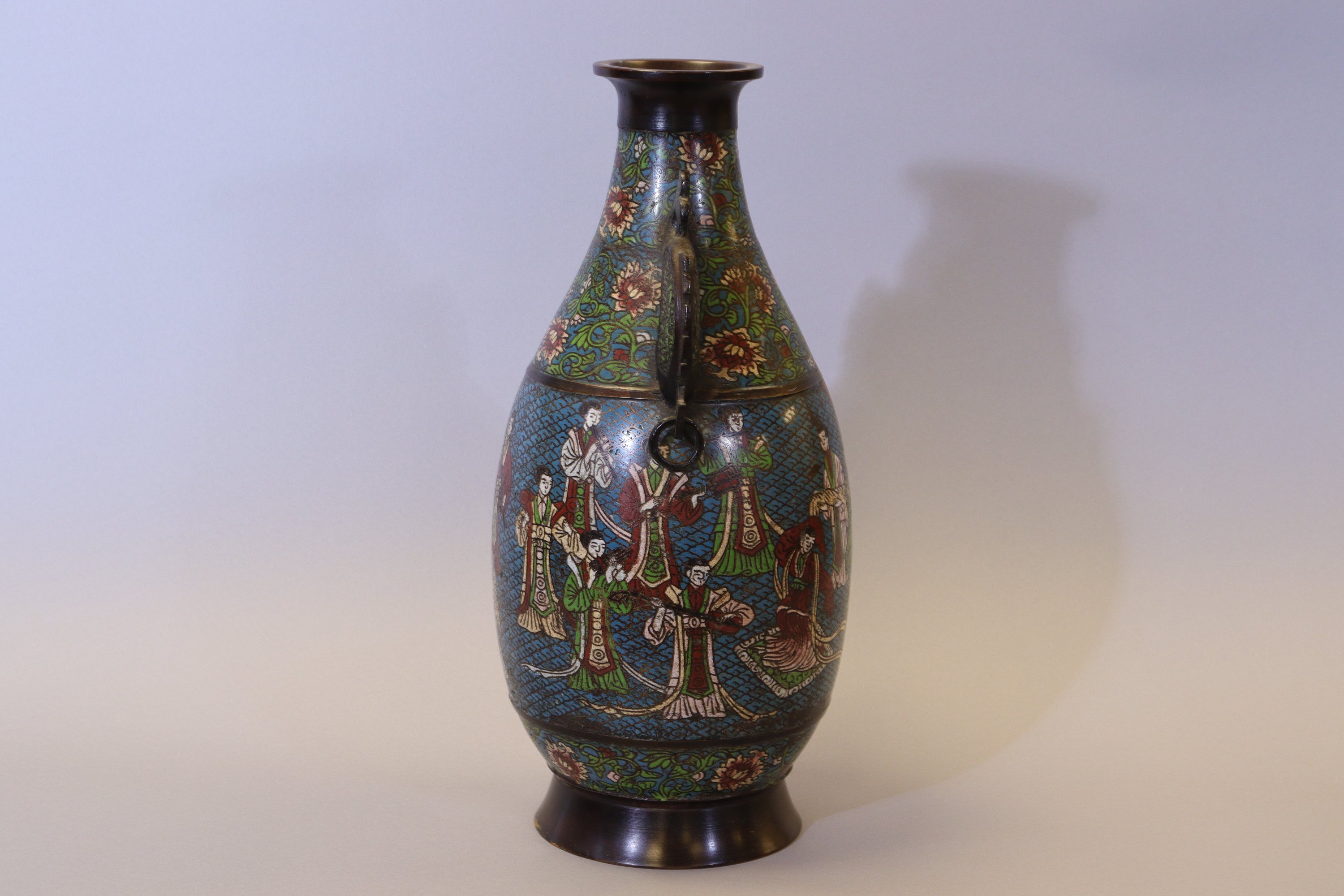 A décor de jeunes musiciennes debout surmontées d'une frise de lotus dans leur feuillage.