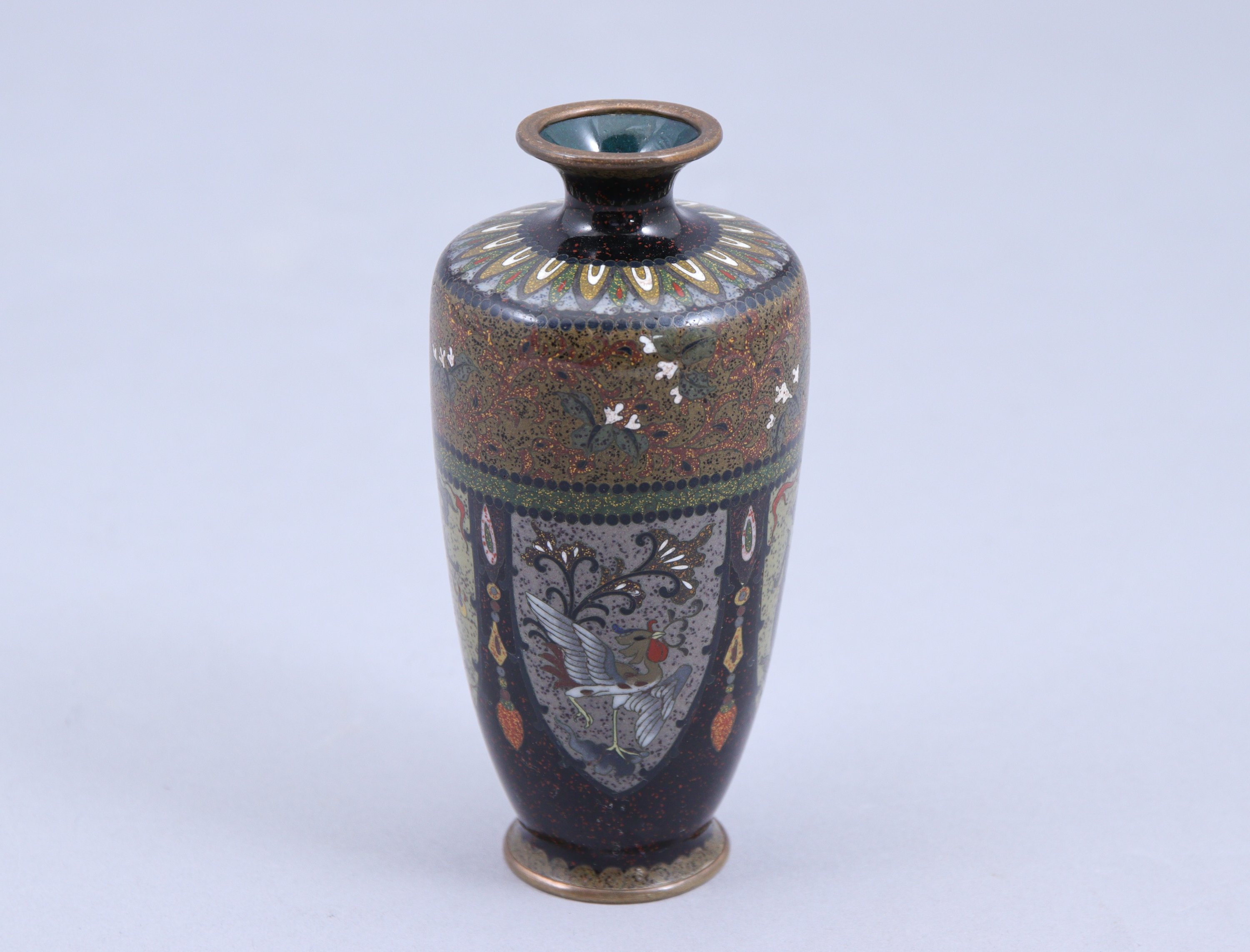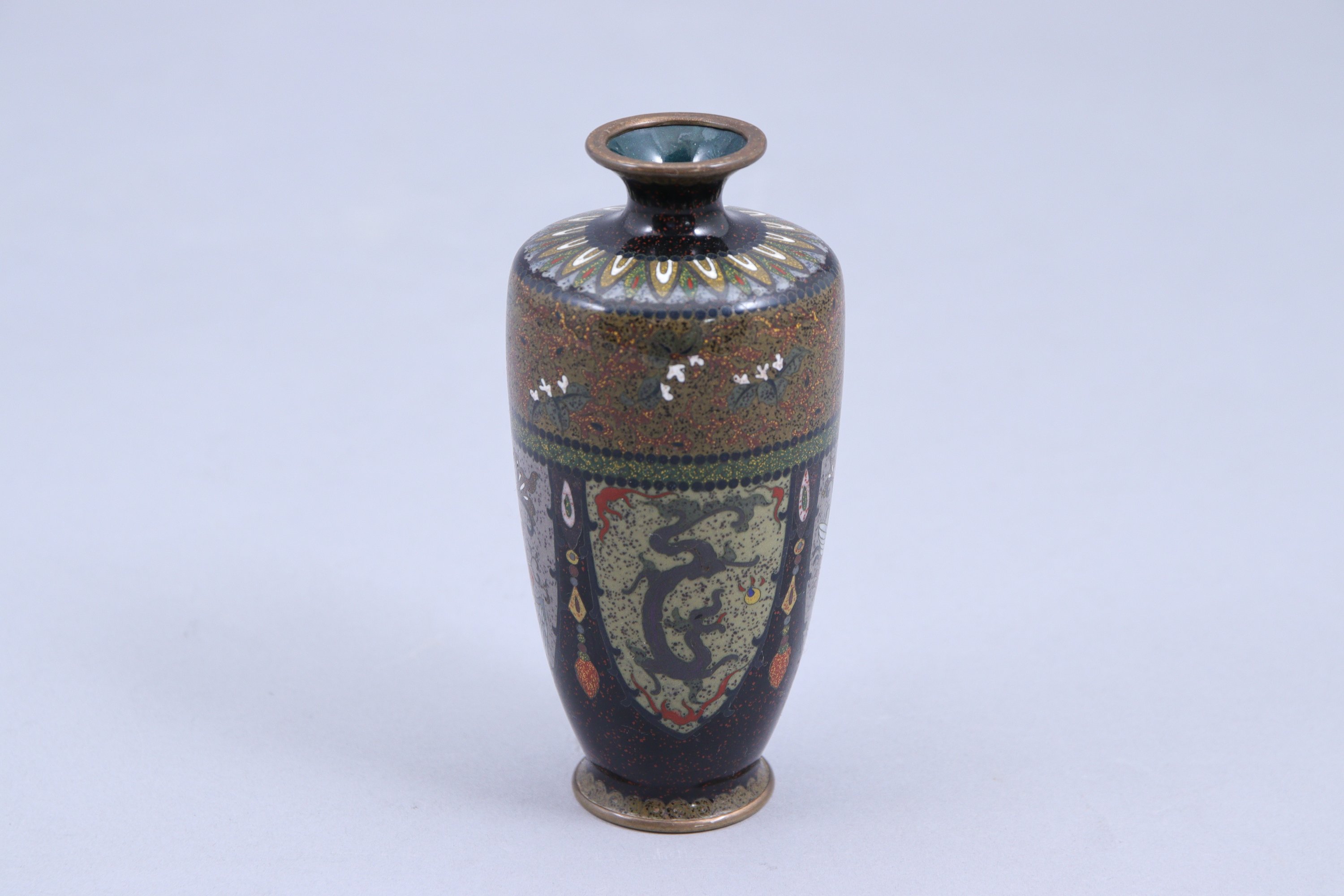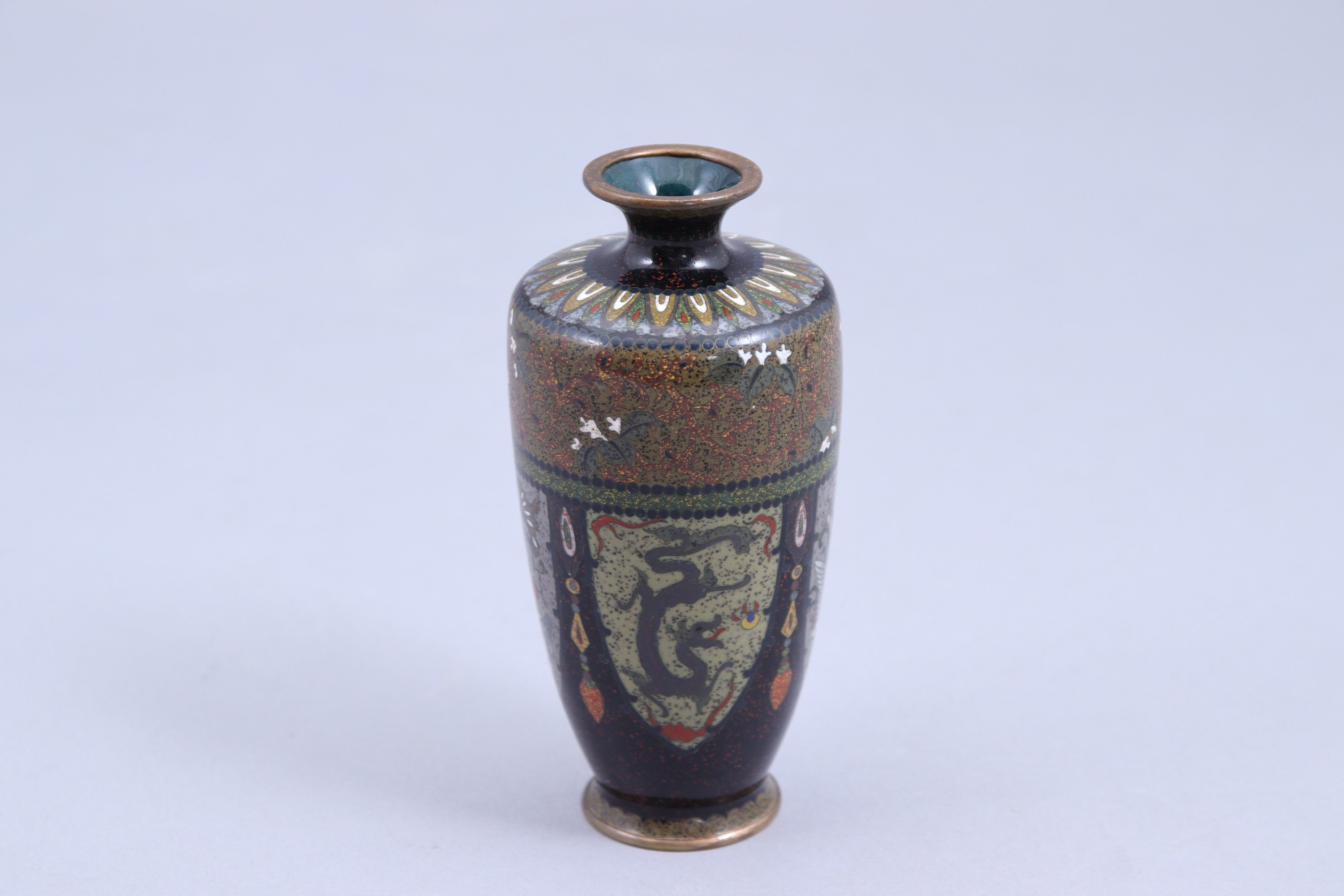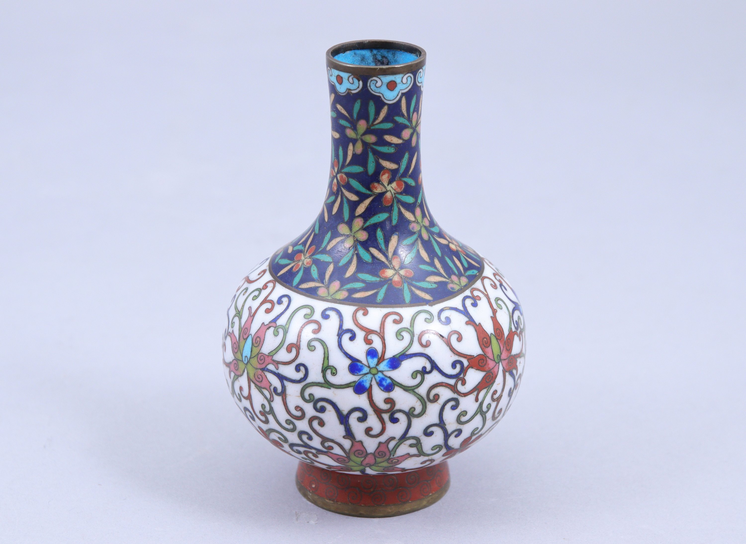 Joint : Chine. Vase balustre en émaux cloisonnés à décor de lotus sur fond blanc. Haut. 13 cm.