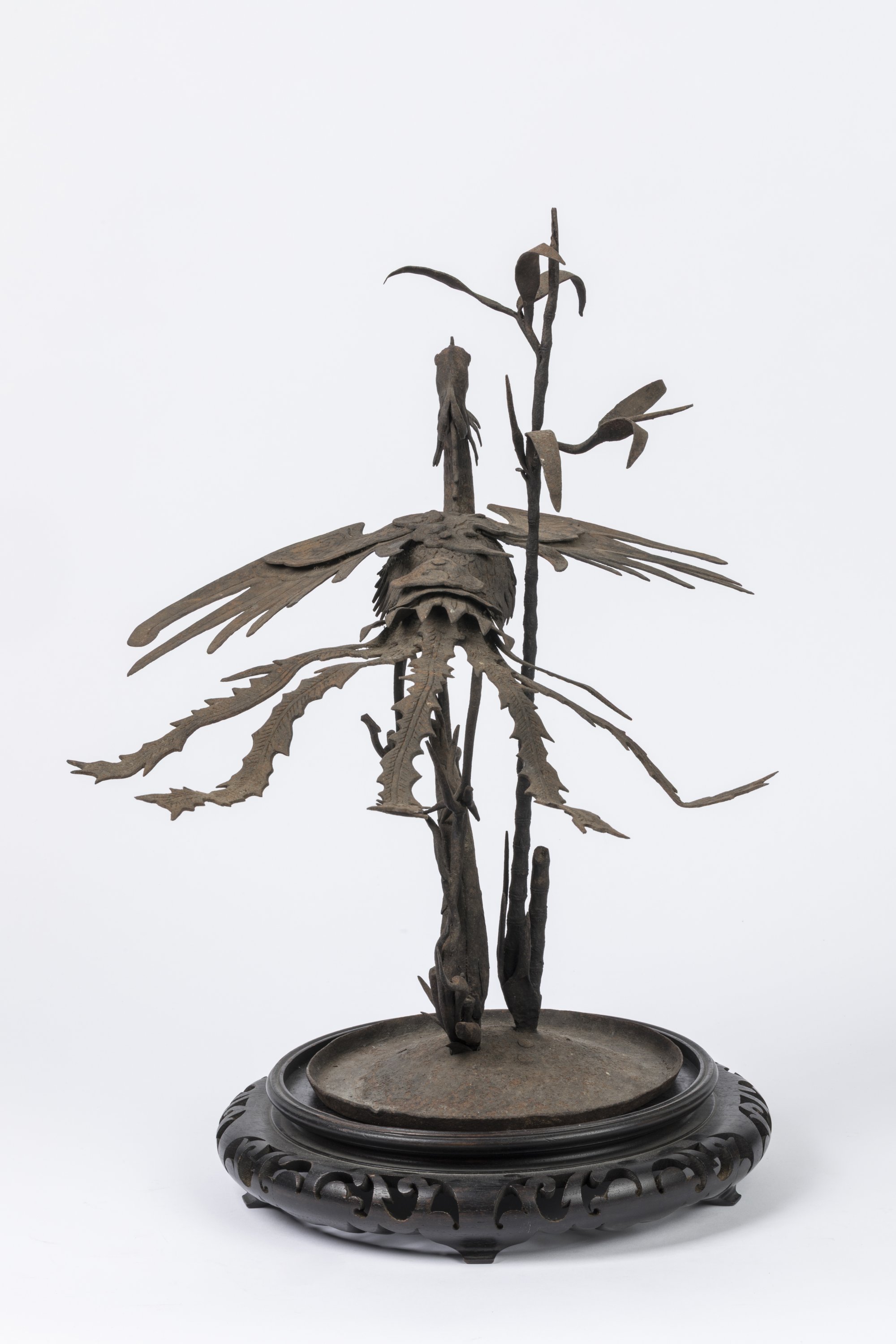 Sur un support en bois moderne laqué noir. Haut. totale 53 cm.
