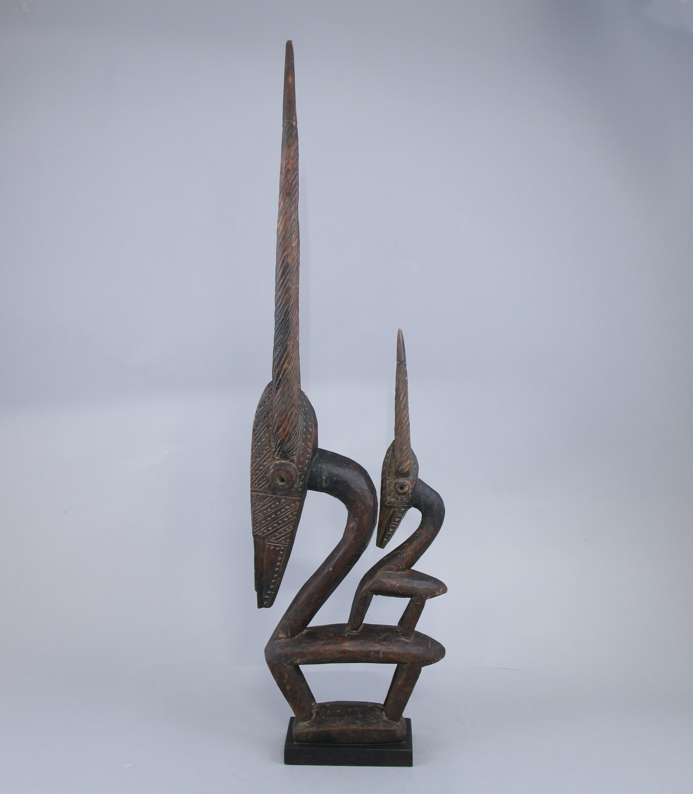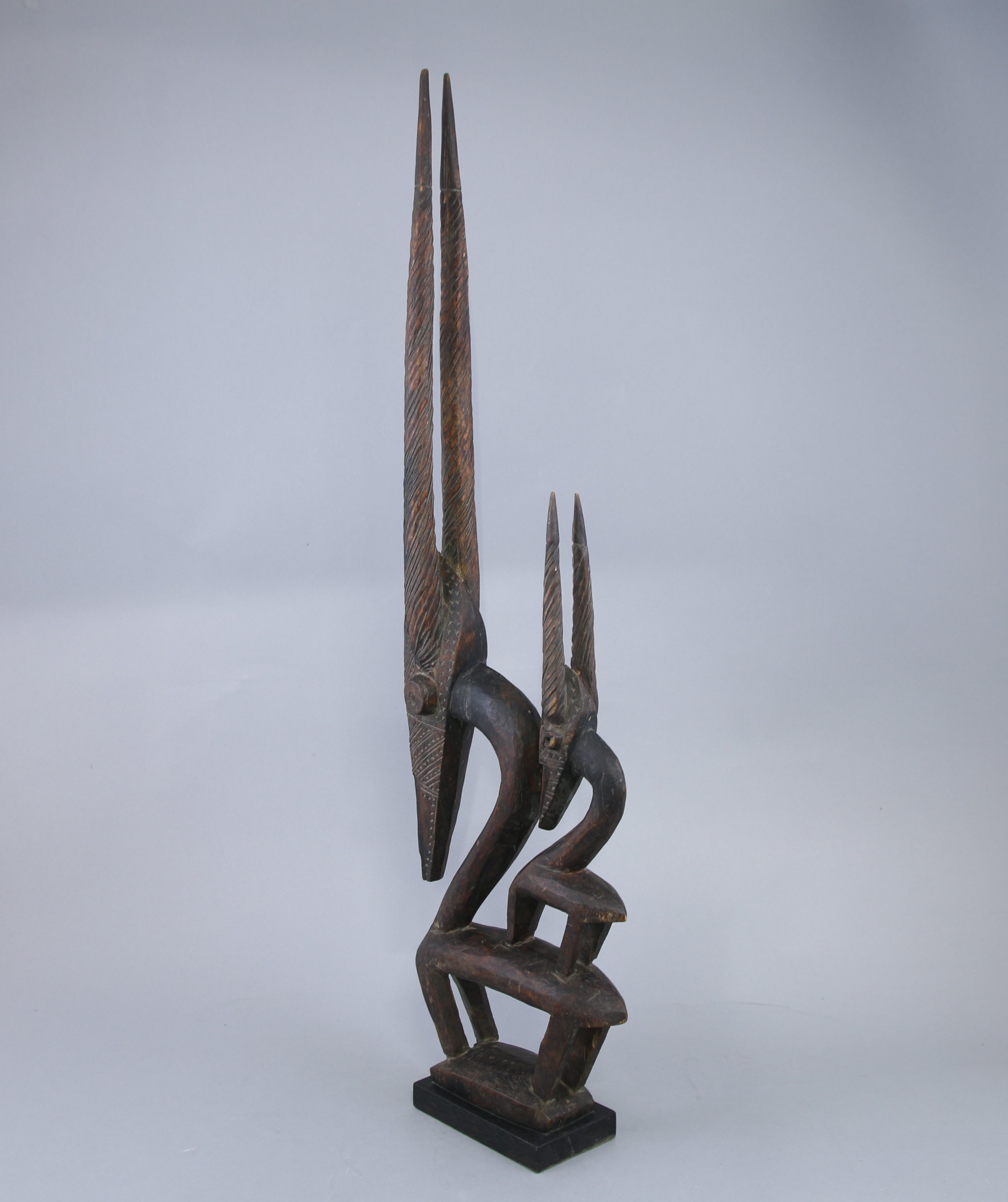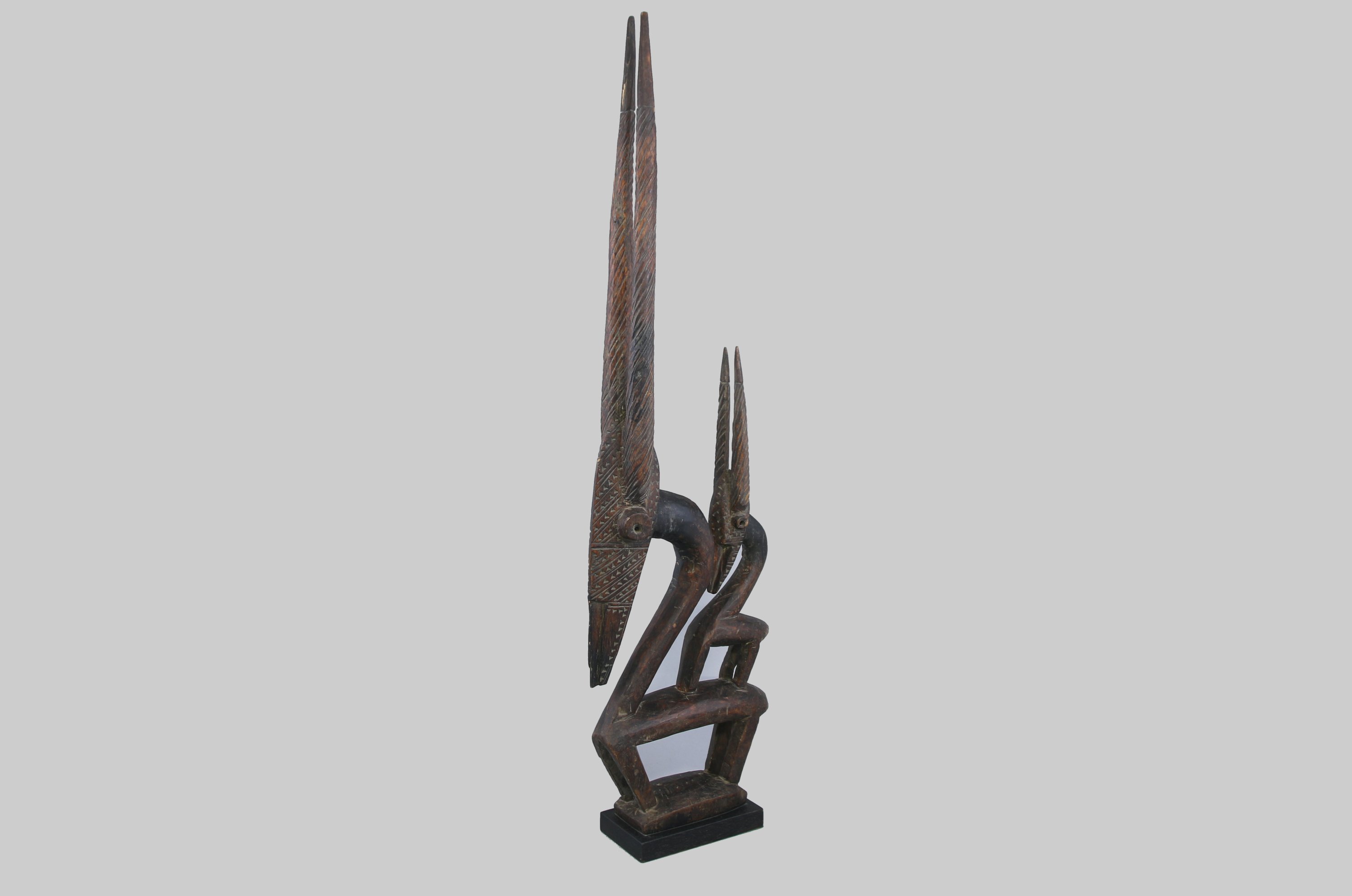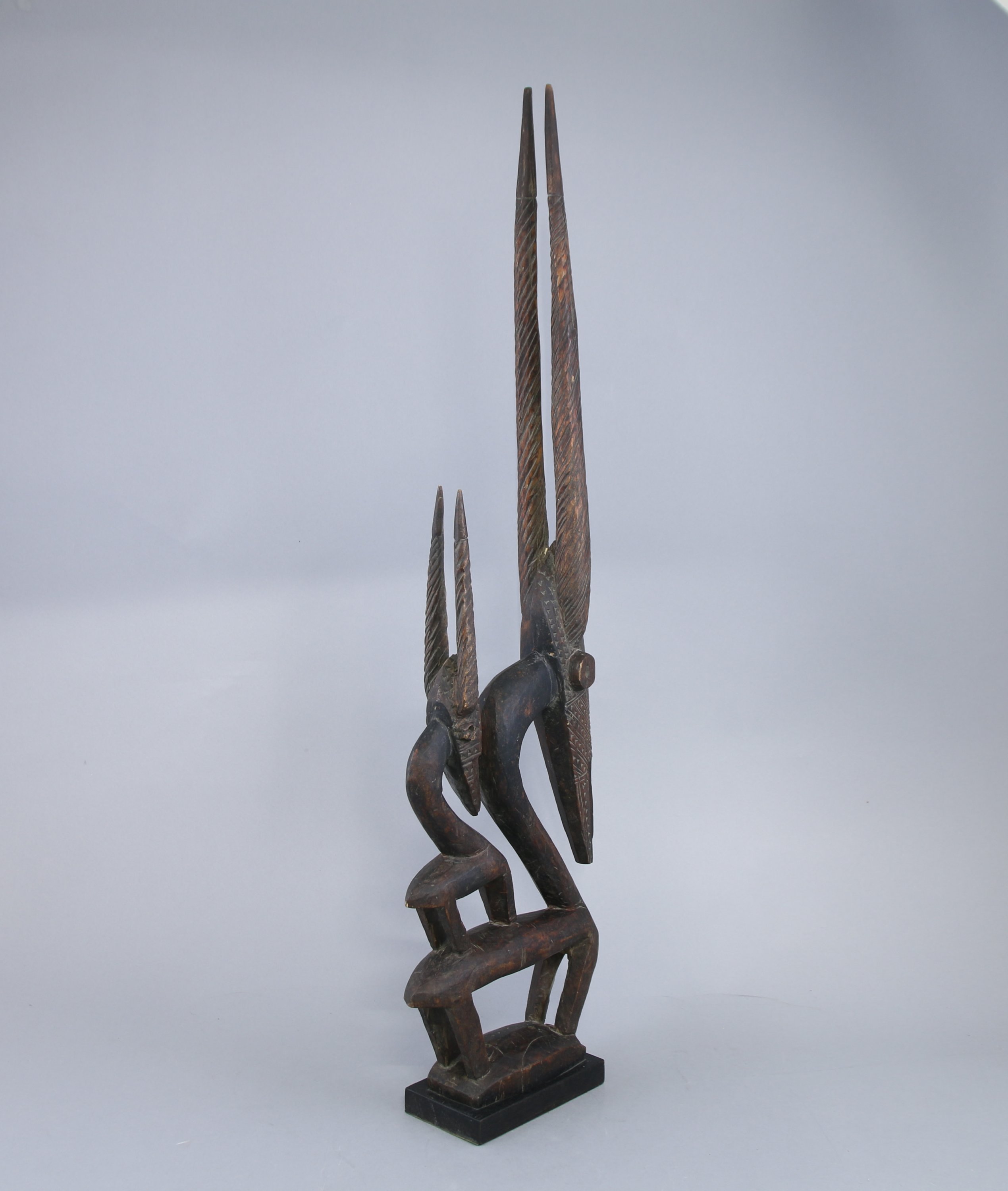 Masque cimier zoomorphe « Tyi Wara » représentant une antilope surmontée de son petit